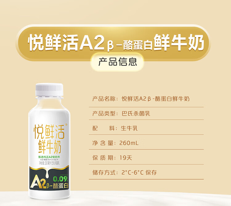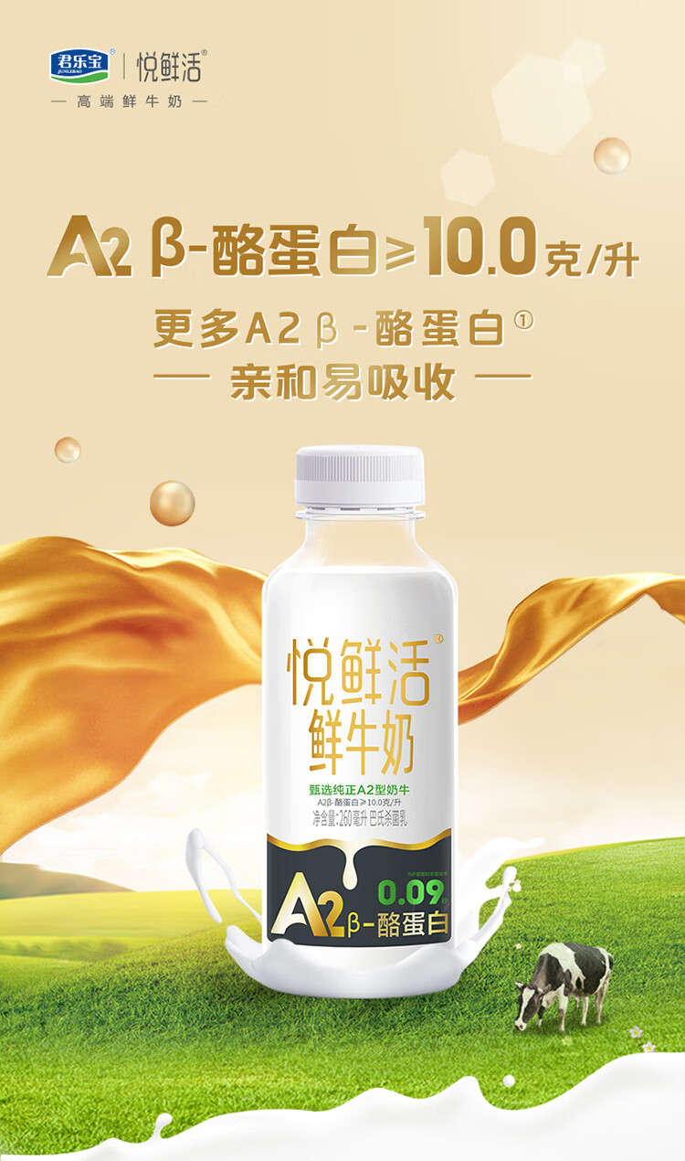 悦鲜活 高钙A2鲜牛奶450ml*4瓶+A2-260ml*4瓶低温奶巴氏杀菌乳分享装