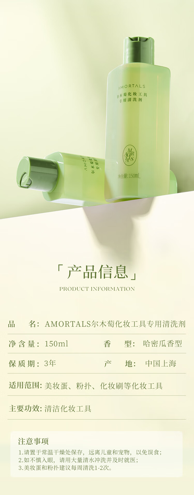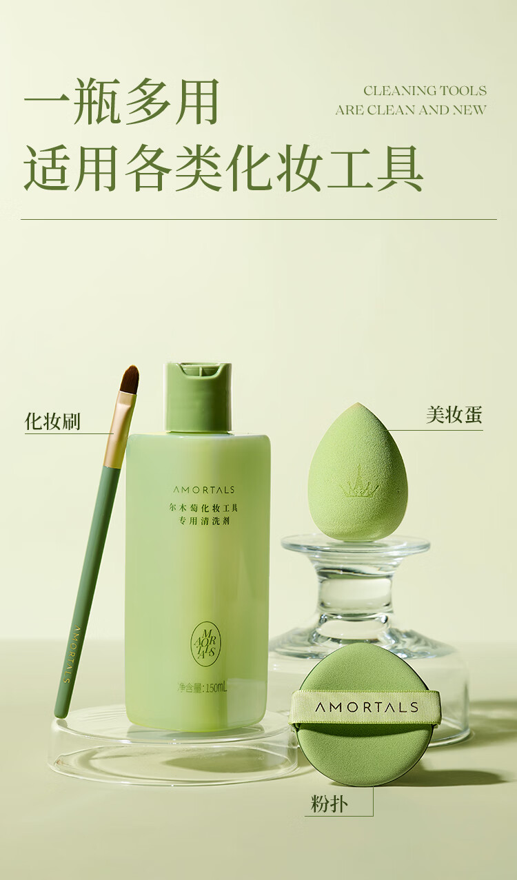 尔木萄(AMORTALS) 粉扑清洗剂150ml海绵彩妆美妆蛋化妆刷粉扑清洗液美妆节日礼物