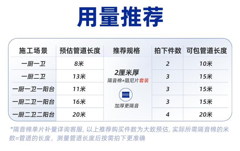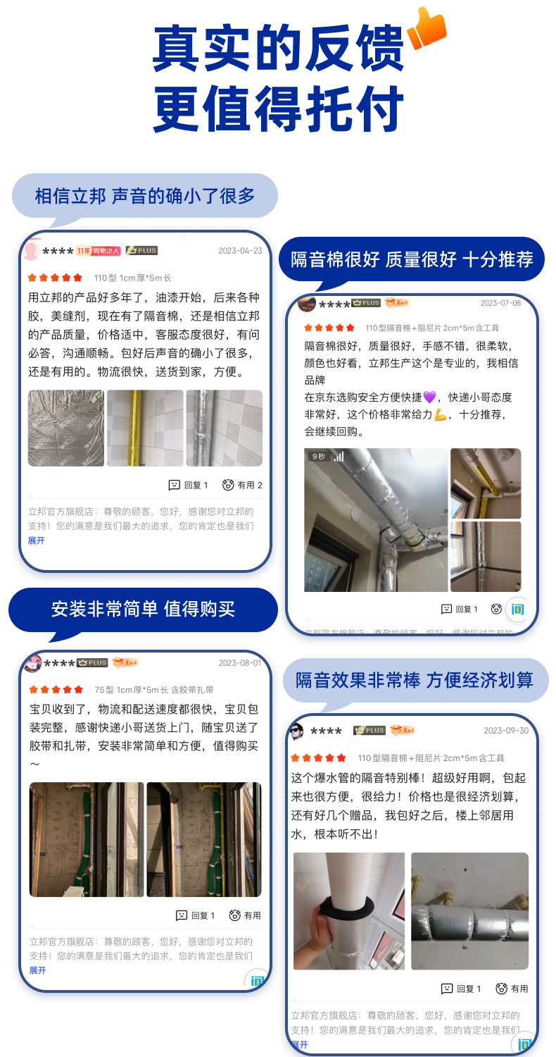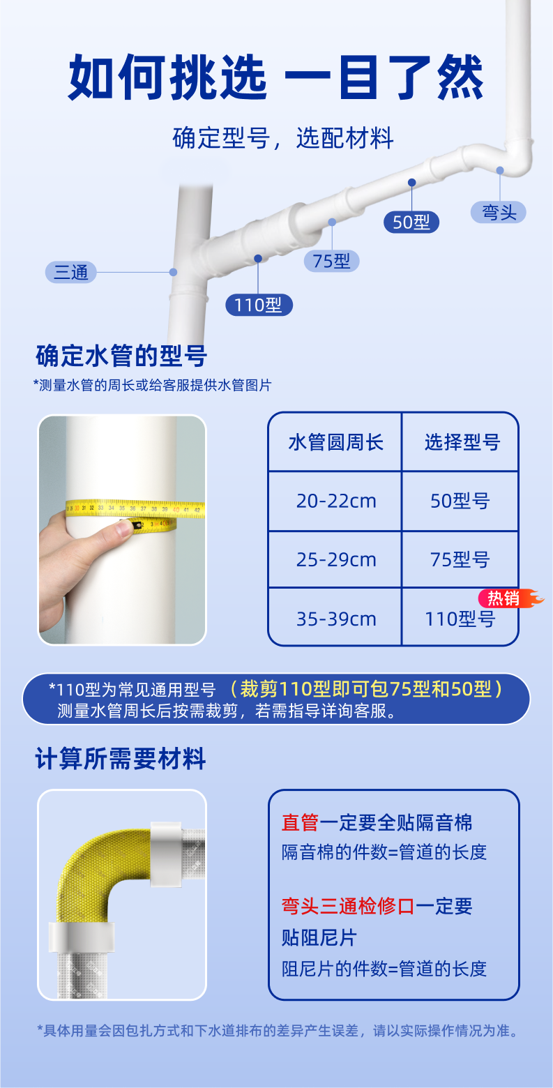 立邦隔音棉阻尼片下水管卫生间管道吸音棉消音110型( 2cm厚*5m)套装
