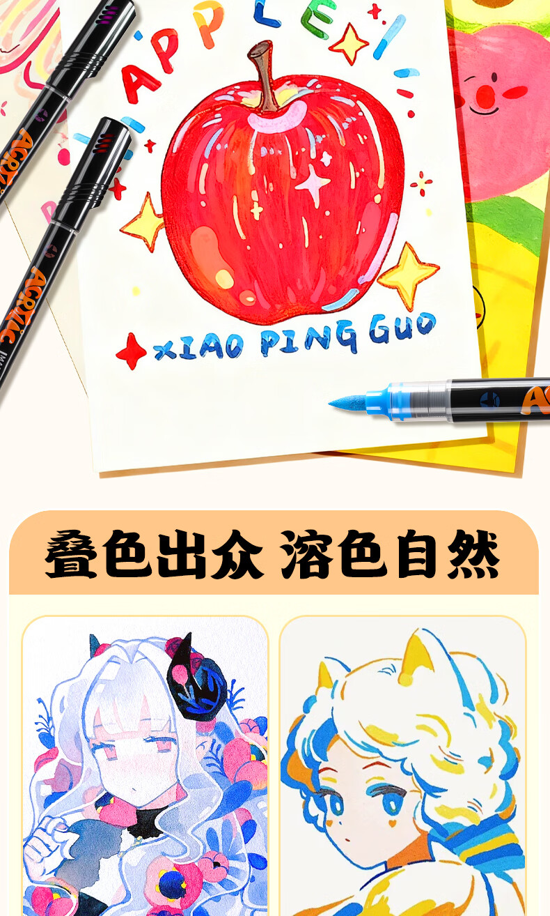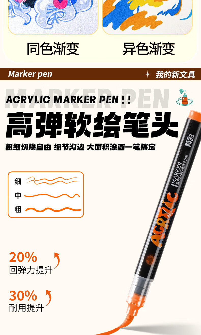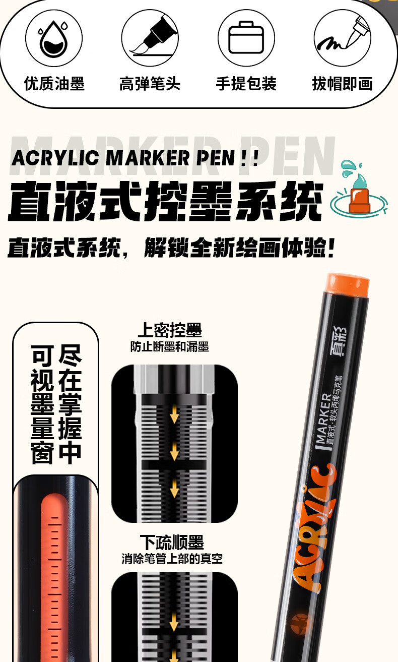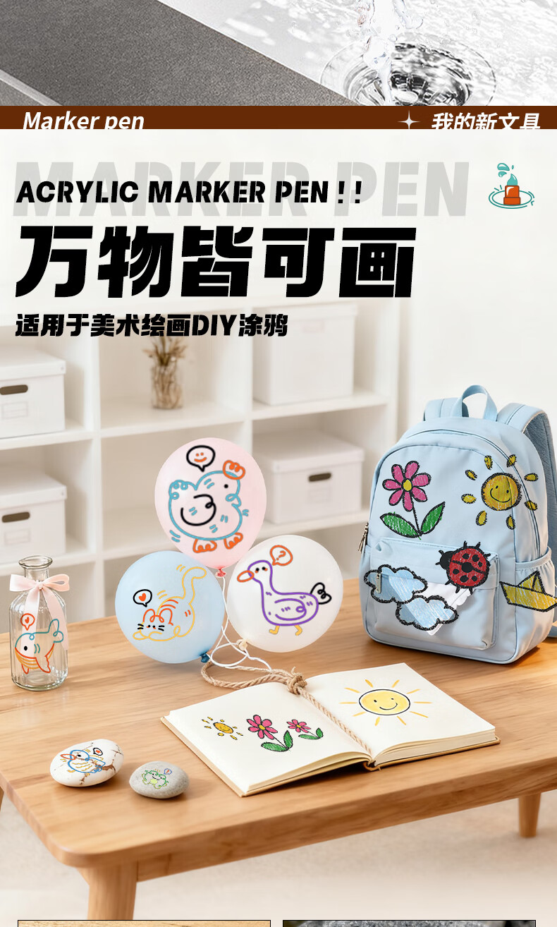 真彩(TRUECOLOR)60色直液式软头丙烯马克笔小学生专用不透色可叠色美术专用儿童无毒可水洗水彩笔幼儿园画画笔6199