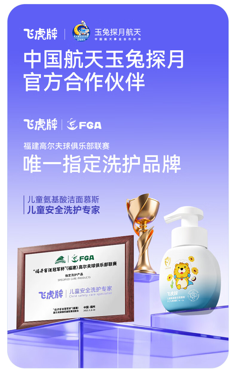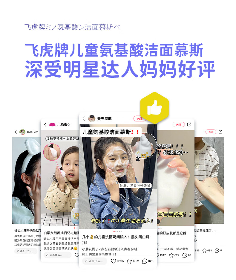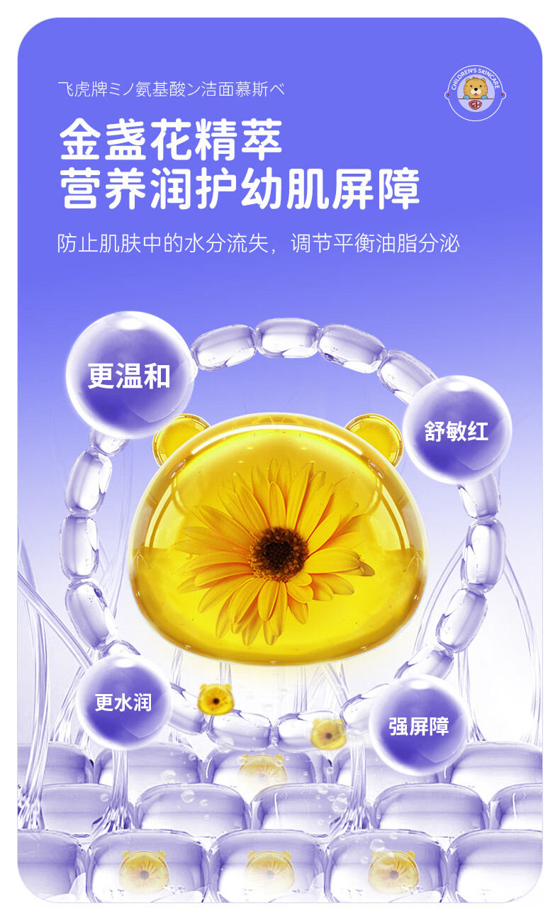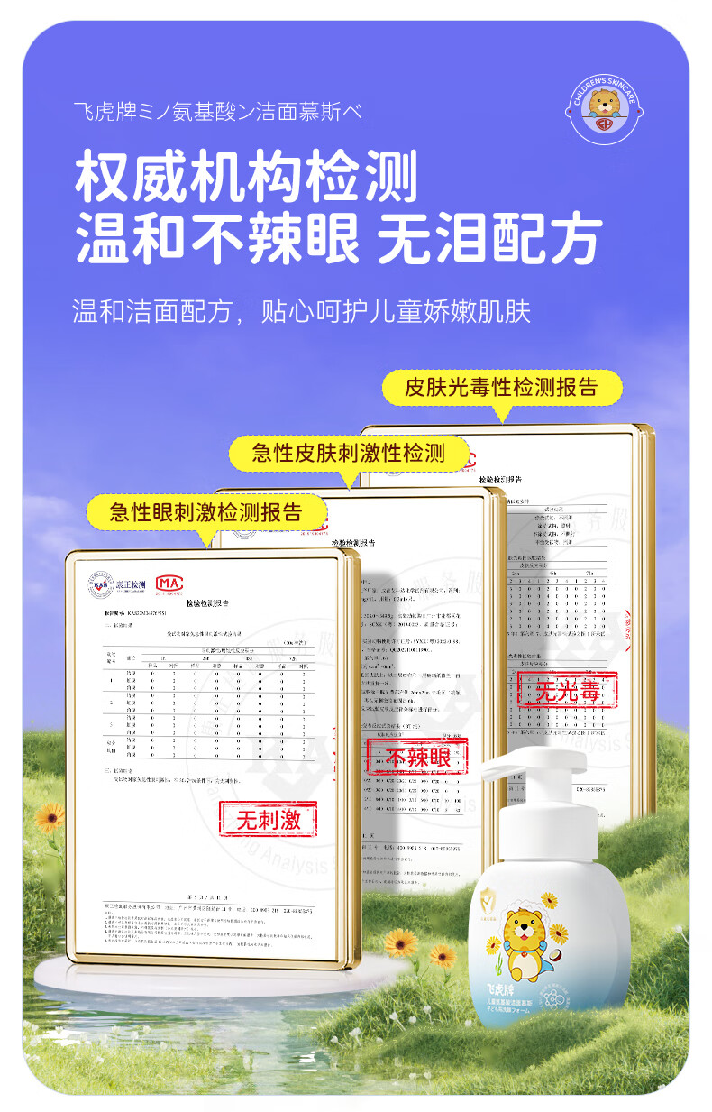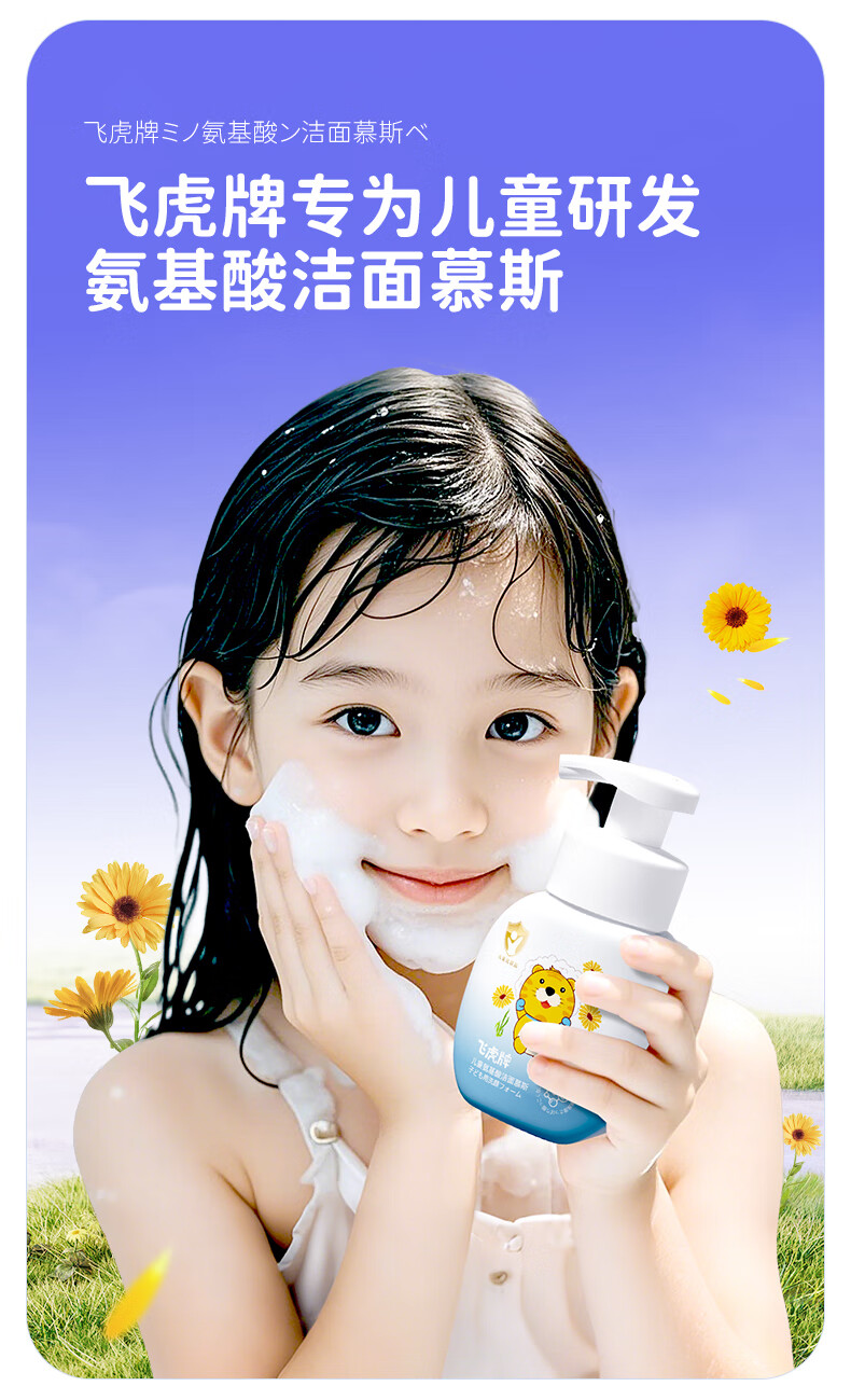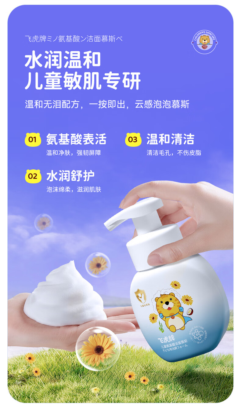 飞虎牌儿童洗面奶氨基酸1-6-18岁洁面泡沫青少年学生男女孩护肤品150ml