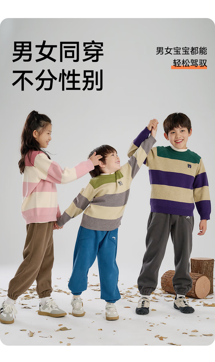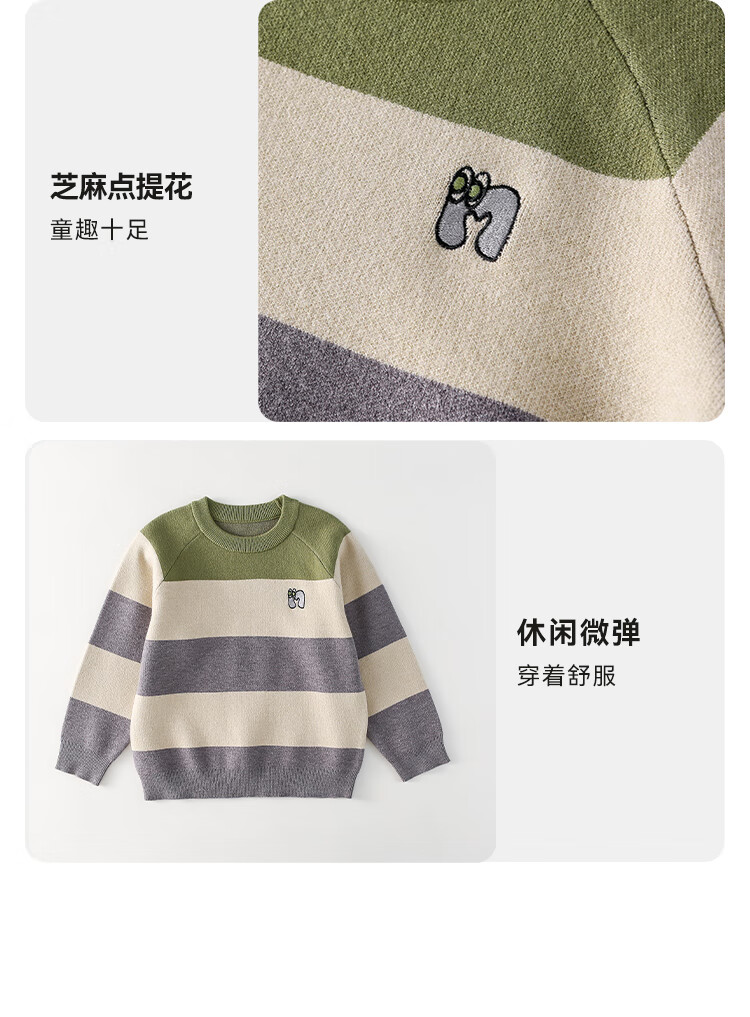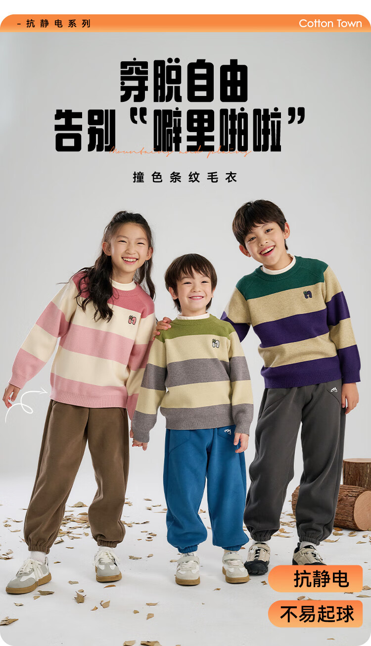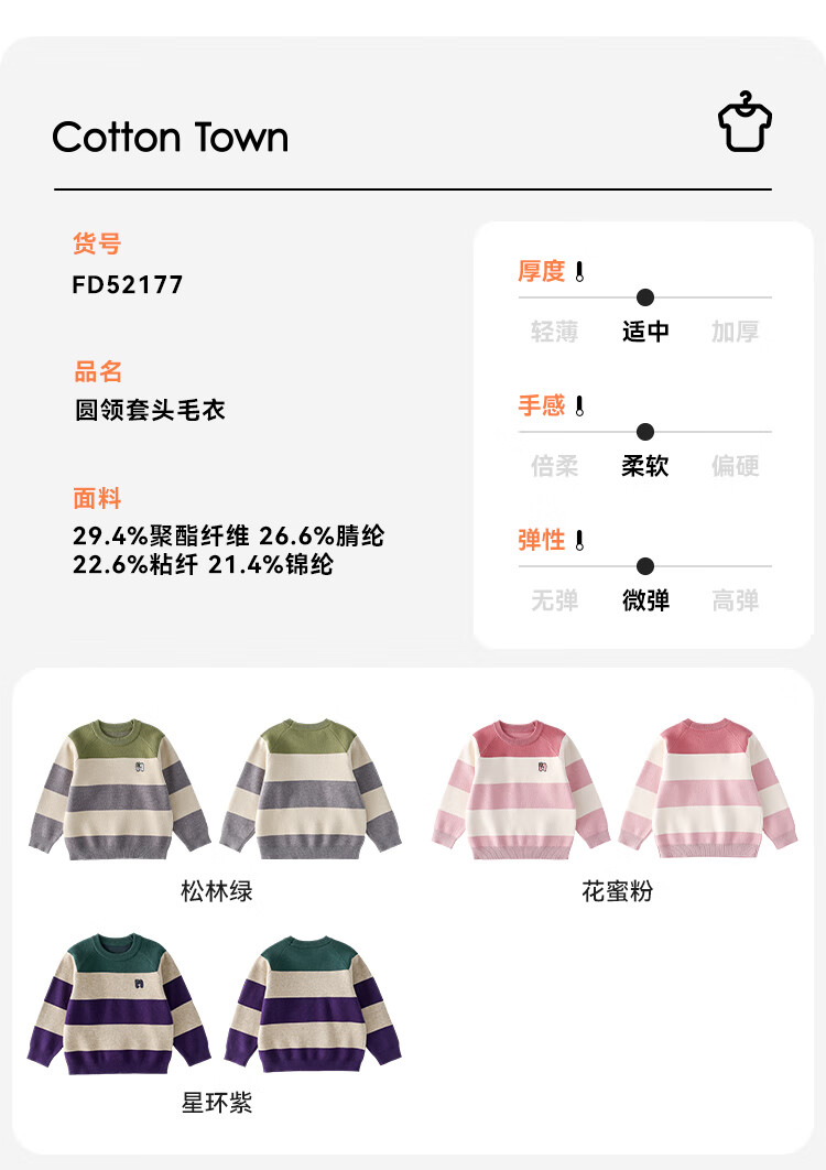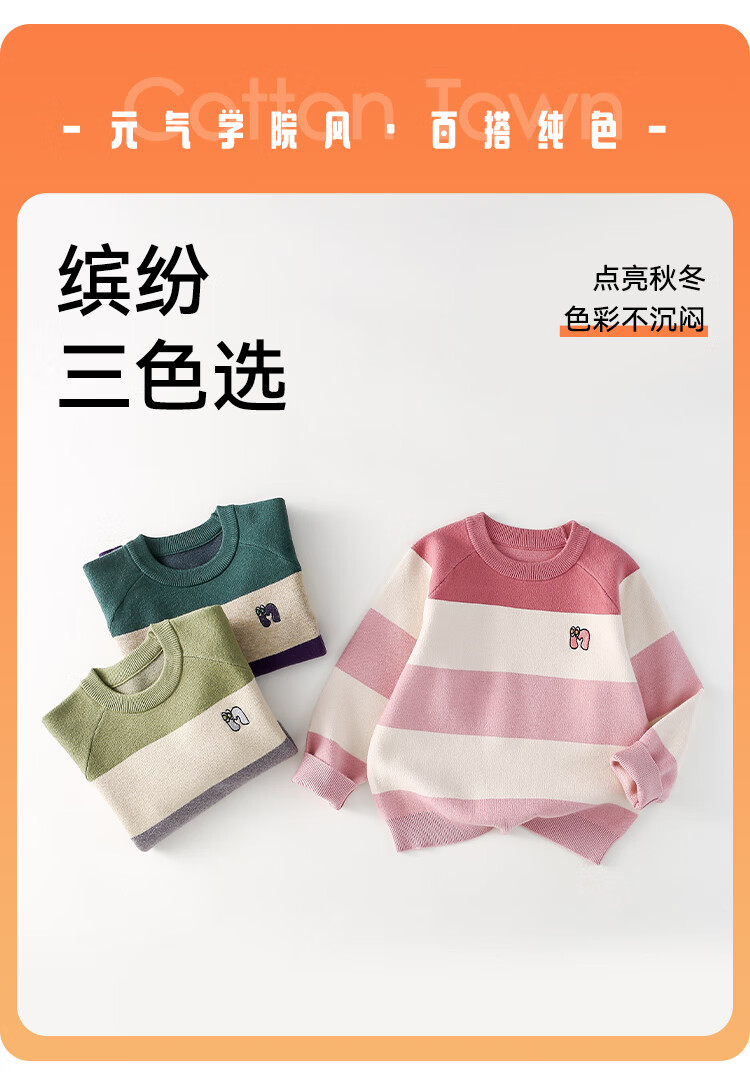 棉花堂(cottontown)【抗静电】棉花堂儿童毛衣针织衫男孩宽条纹内搭儿童秋装女童上衣 星环紫 90 90/52