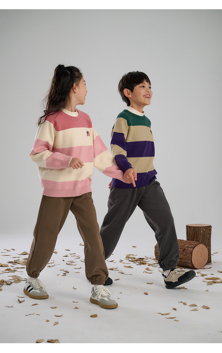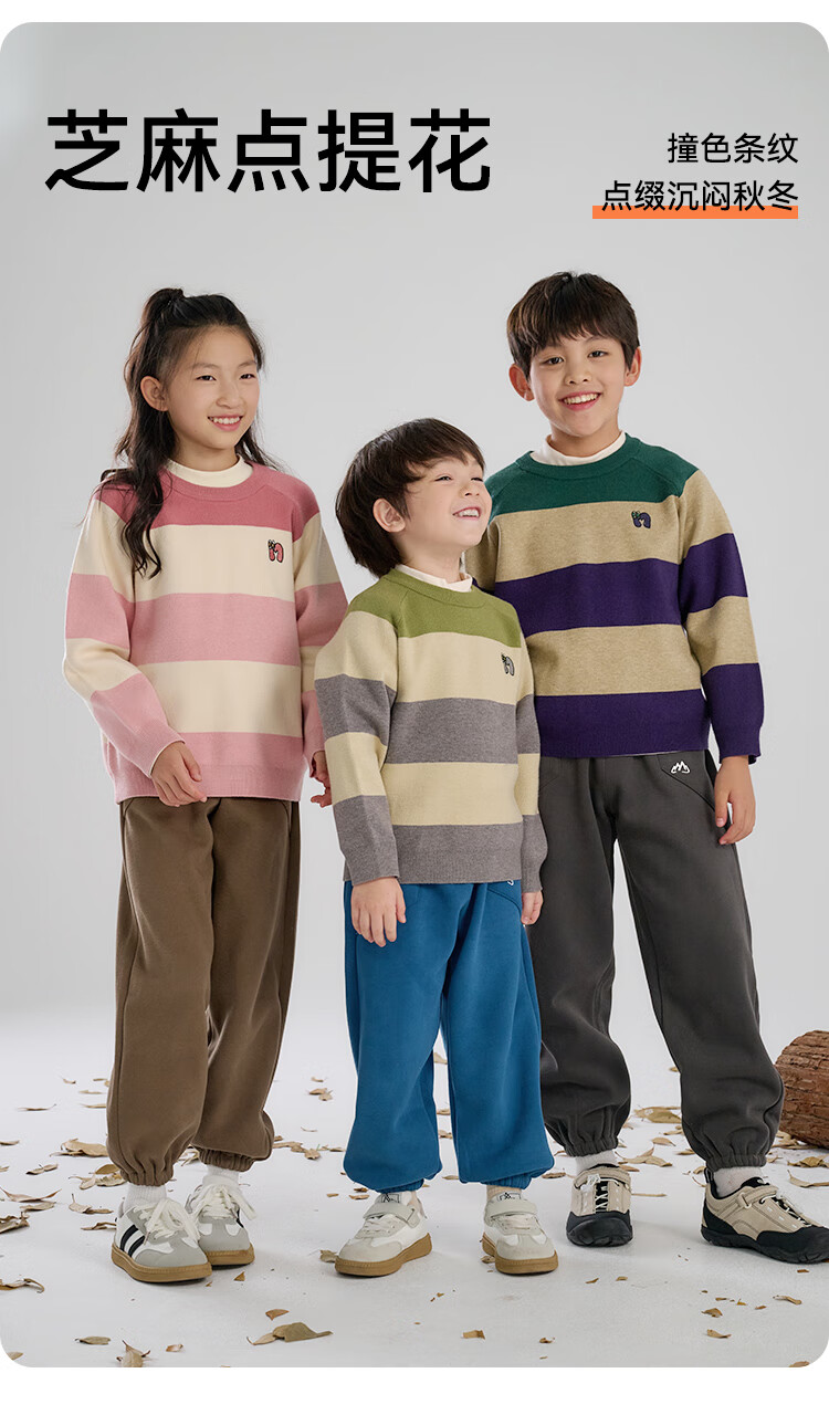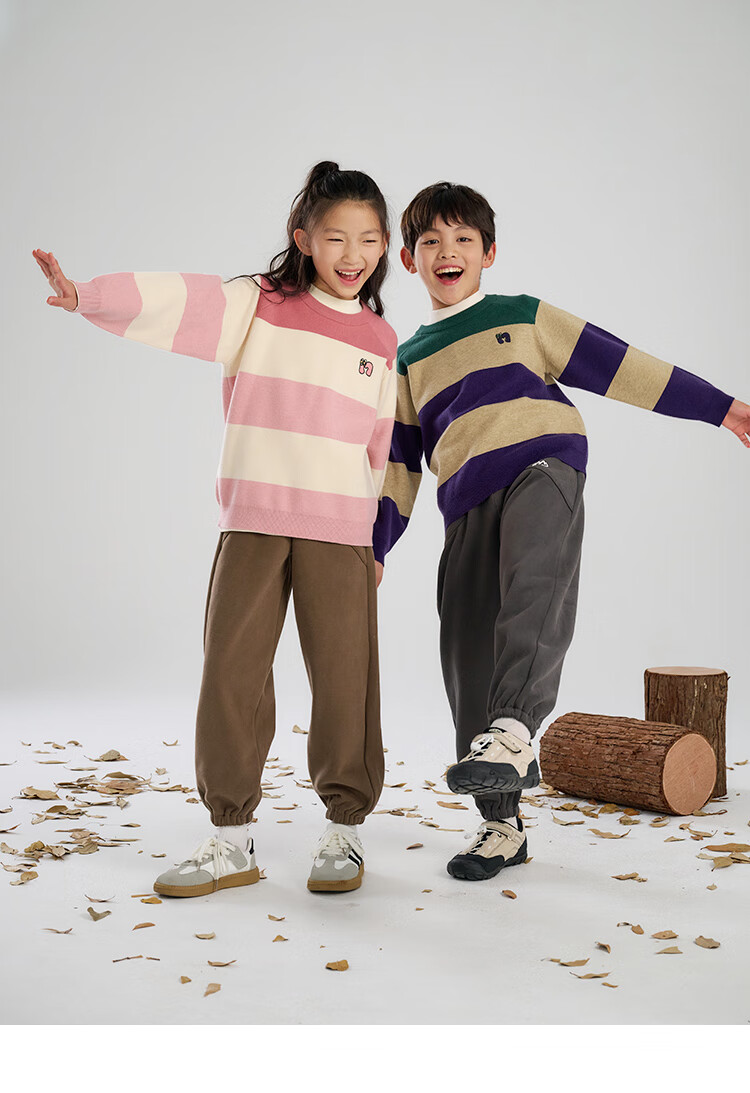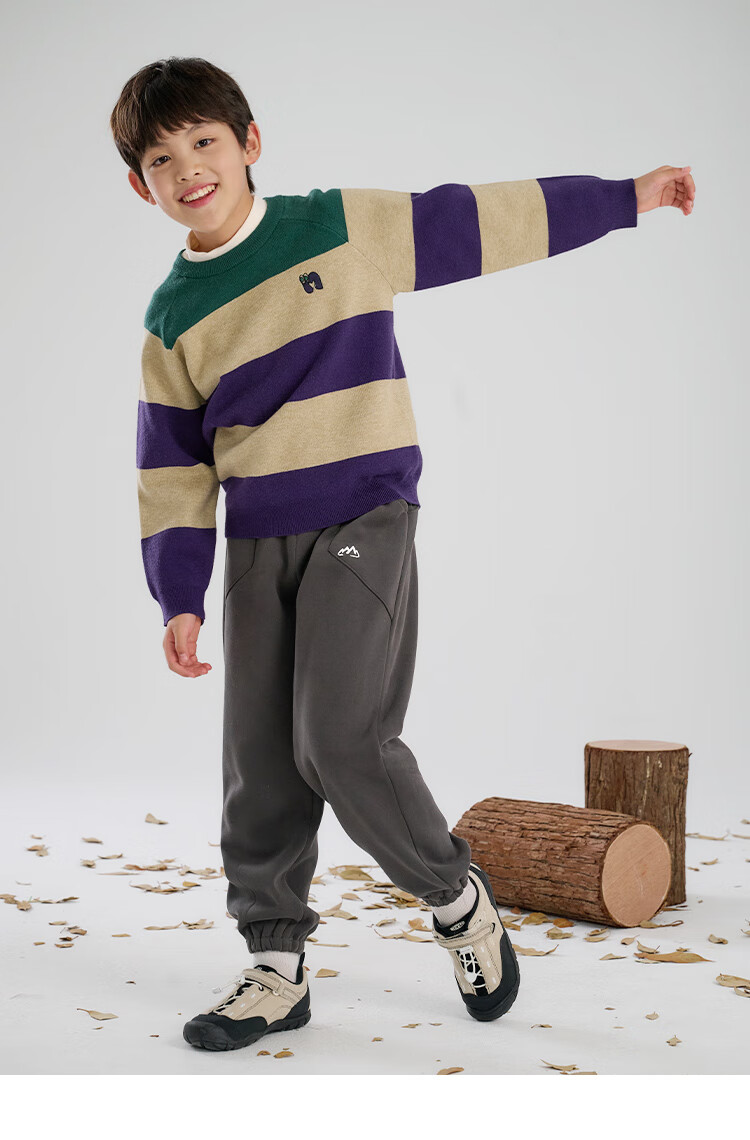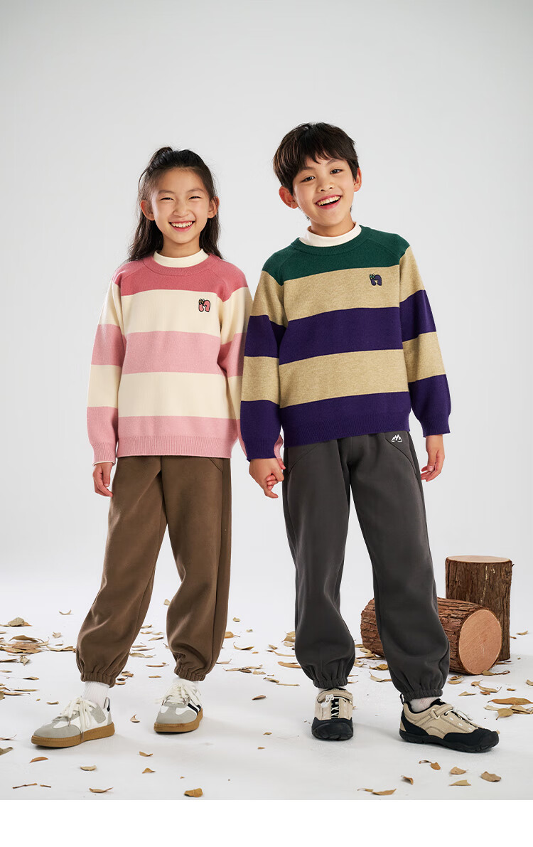 棉花堂(cottontown)【抗静电】棉花堂儿童毛衣针织衫男孩宽条纹内搭儿童秋装女童上衣 星环紫 90 90/52
