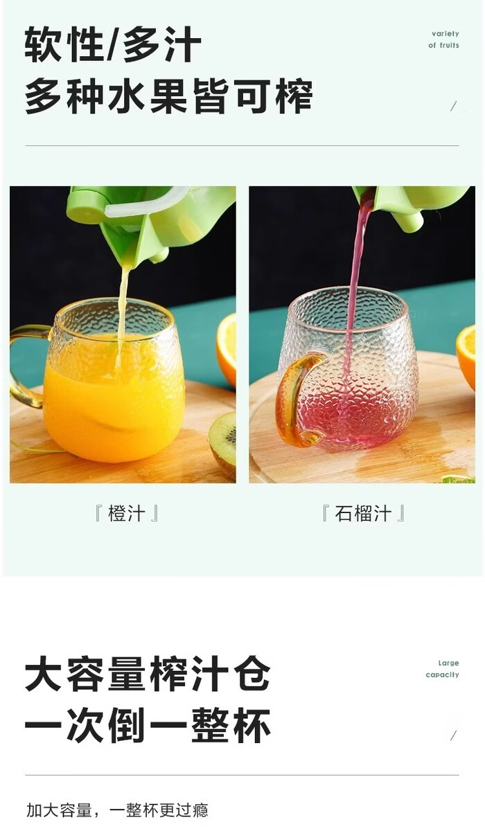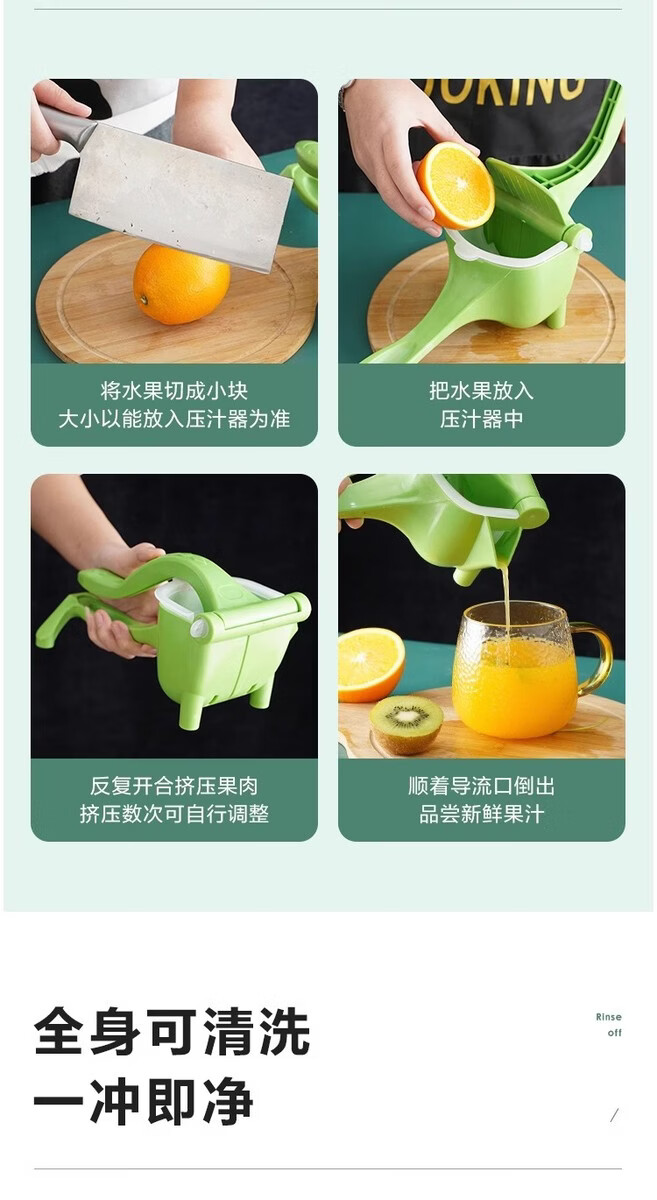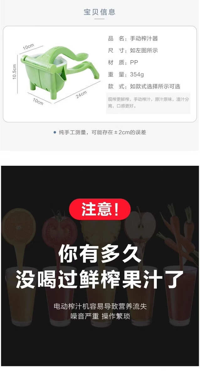 咏幻榨汁机手动榨汁器多功能家用小型便携式渣汁分离果汁水果榨汁器 榨汁机2个特惠装