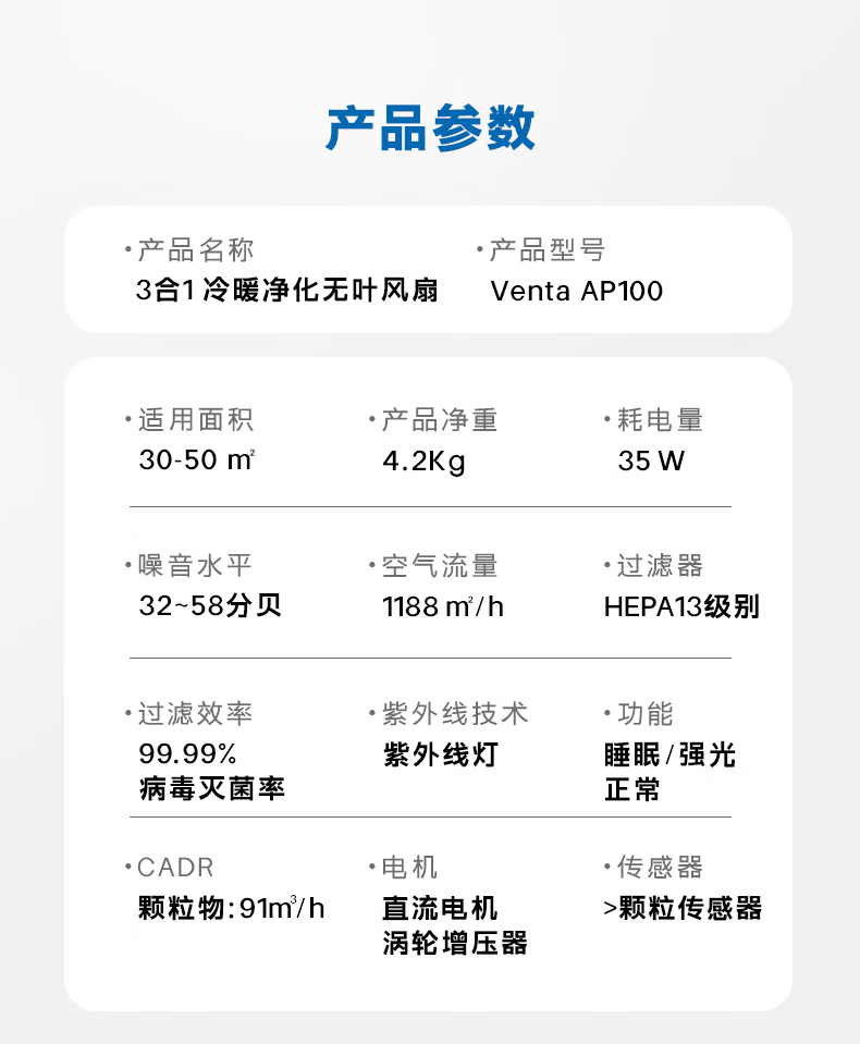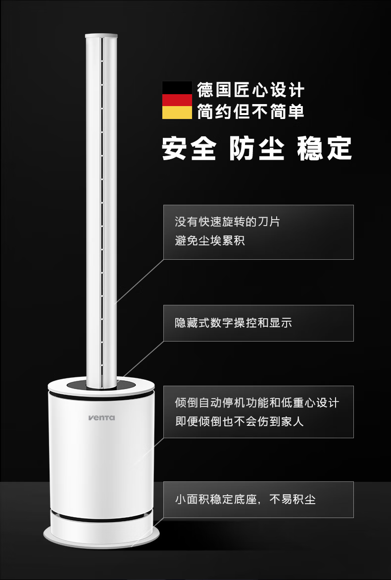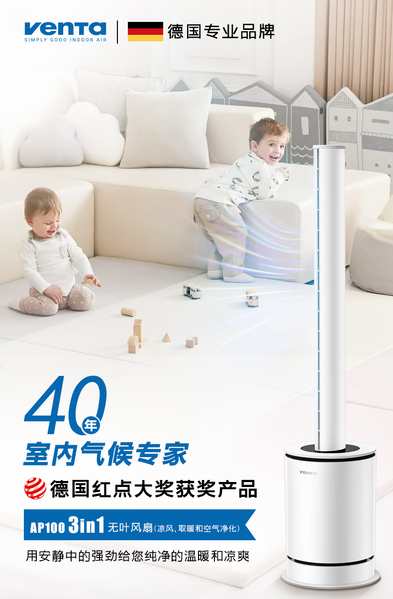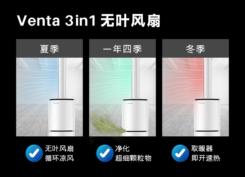 venTa【享3年滤网权益】德国无叶净化扇冷暖风扇取暖器空气净化器静音家用落地电暖器立式文塔德国 3合1冷暖风+空气净化