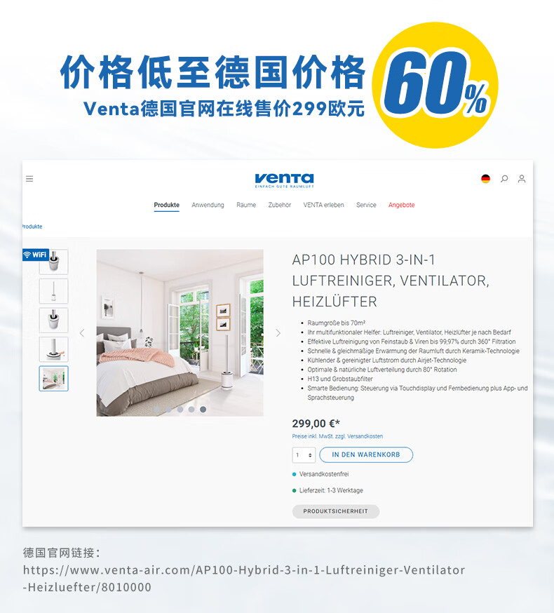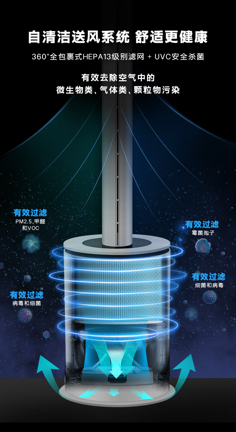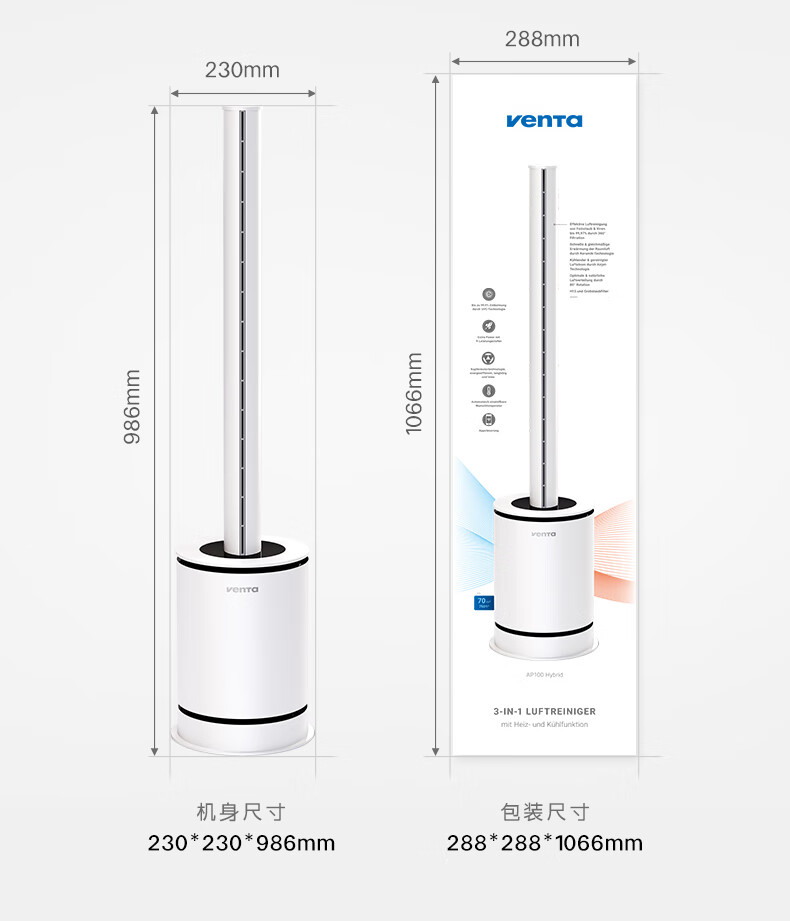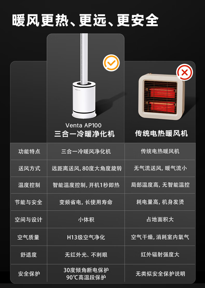 venTa【享3年滤网权益】德国无叶净化扇冷暖风扇取暖器空气净化器静音家用落地电暖器立式文塔德国 3合1冷暖风+空气净化