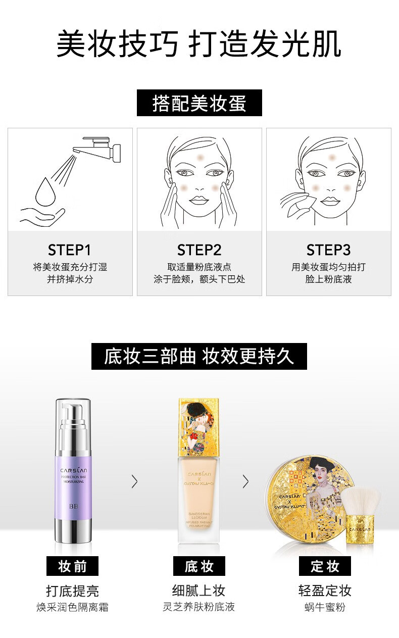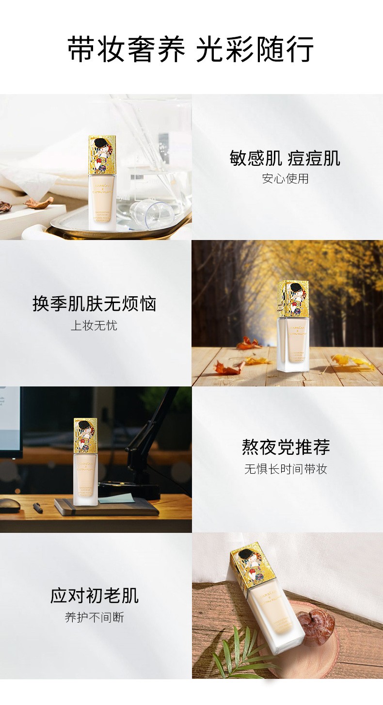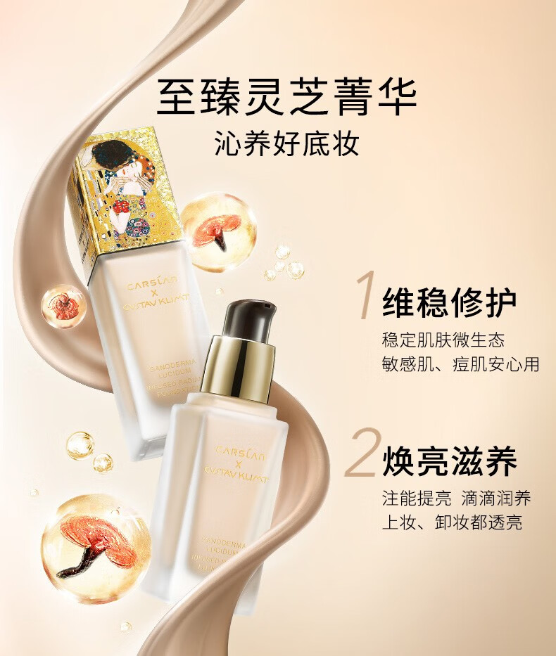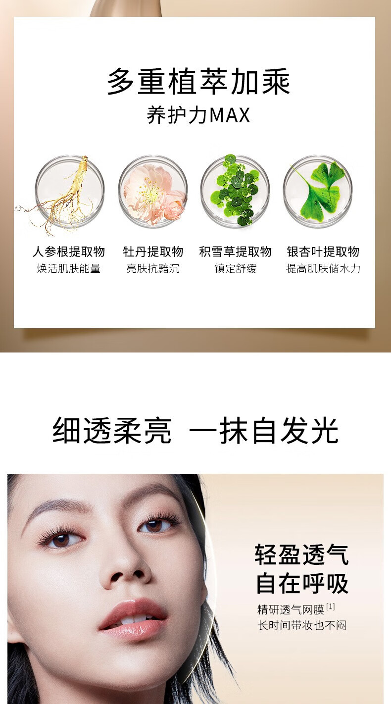 卡姿兰灵芝菁华粉底液细腻服帖轻盈透气遮瑕保湿持久控油 皮奶油水光肌 菁华养肤01粉桃色(哑光版)