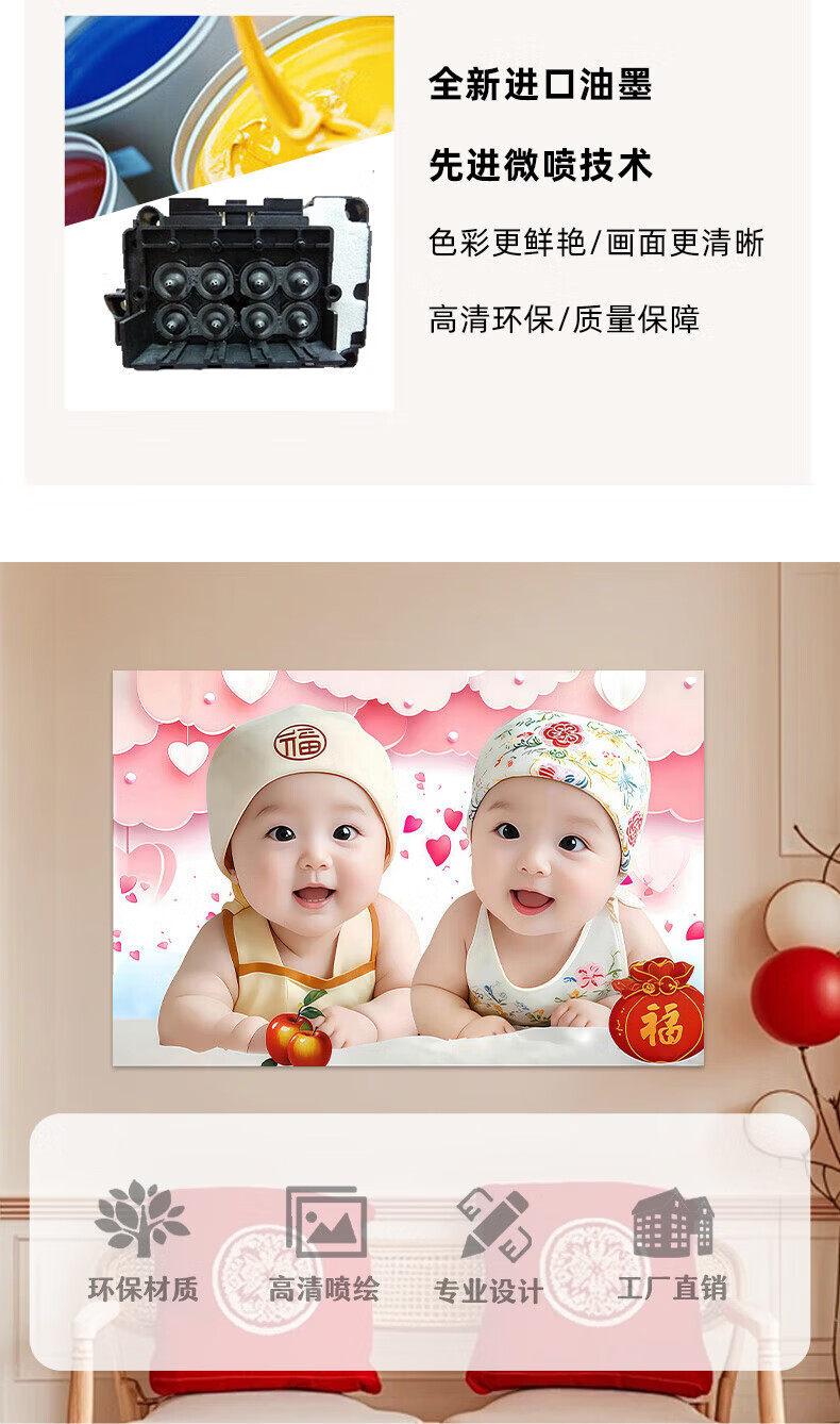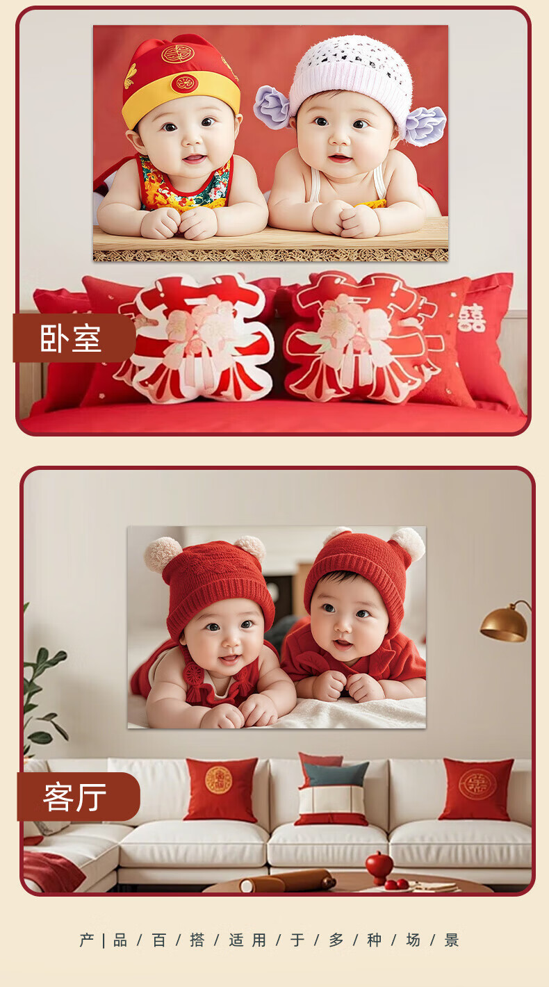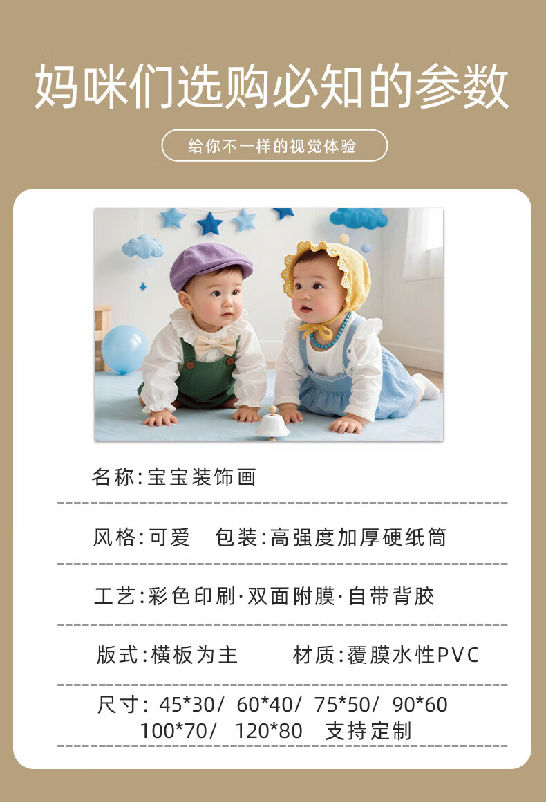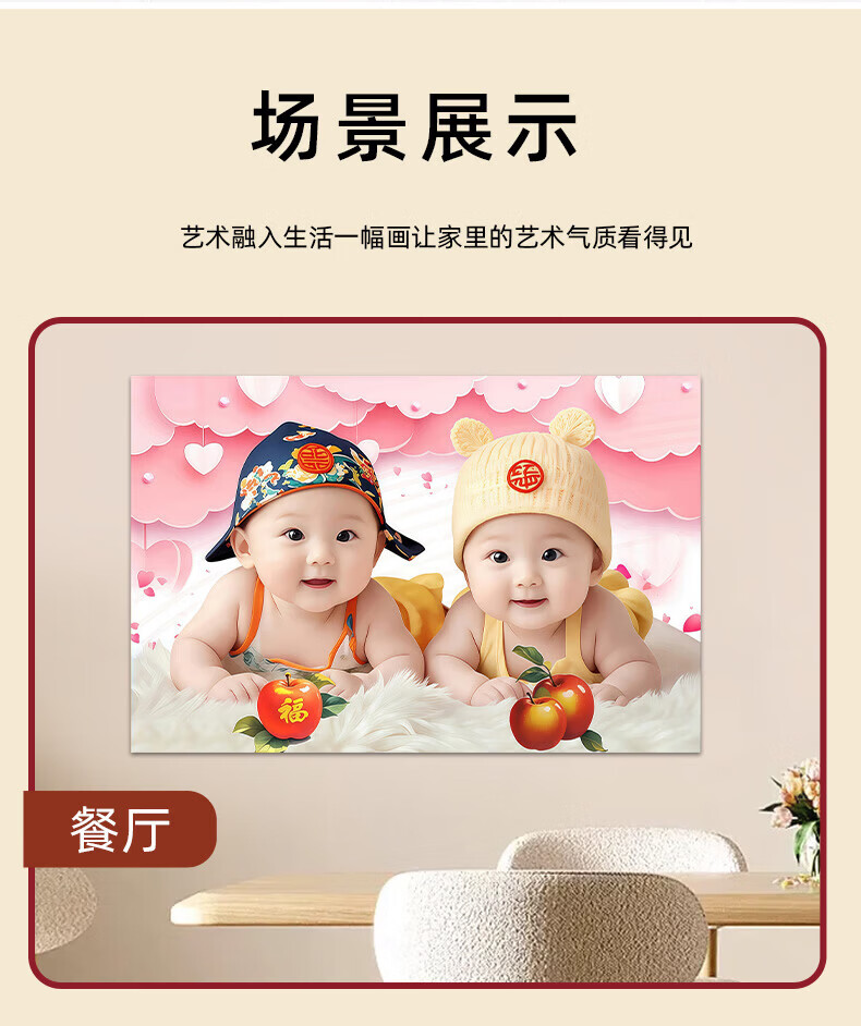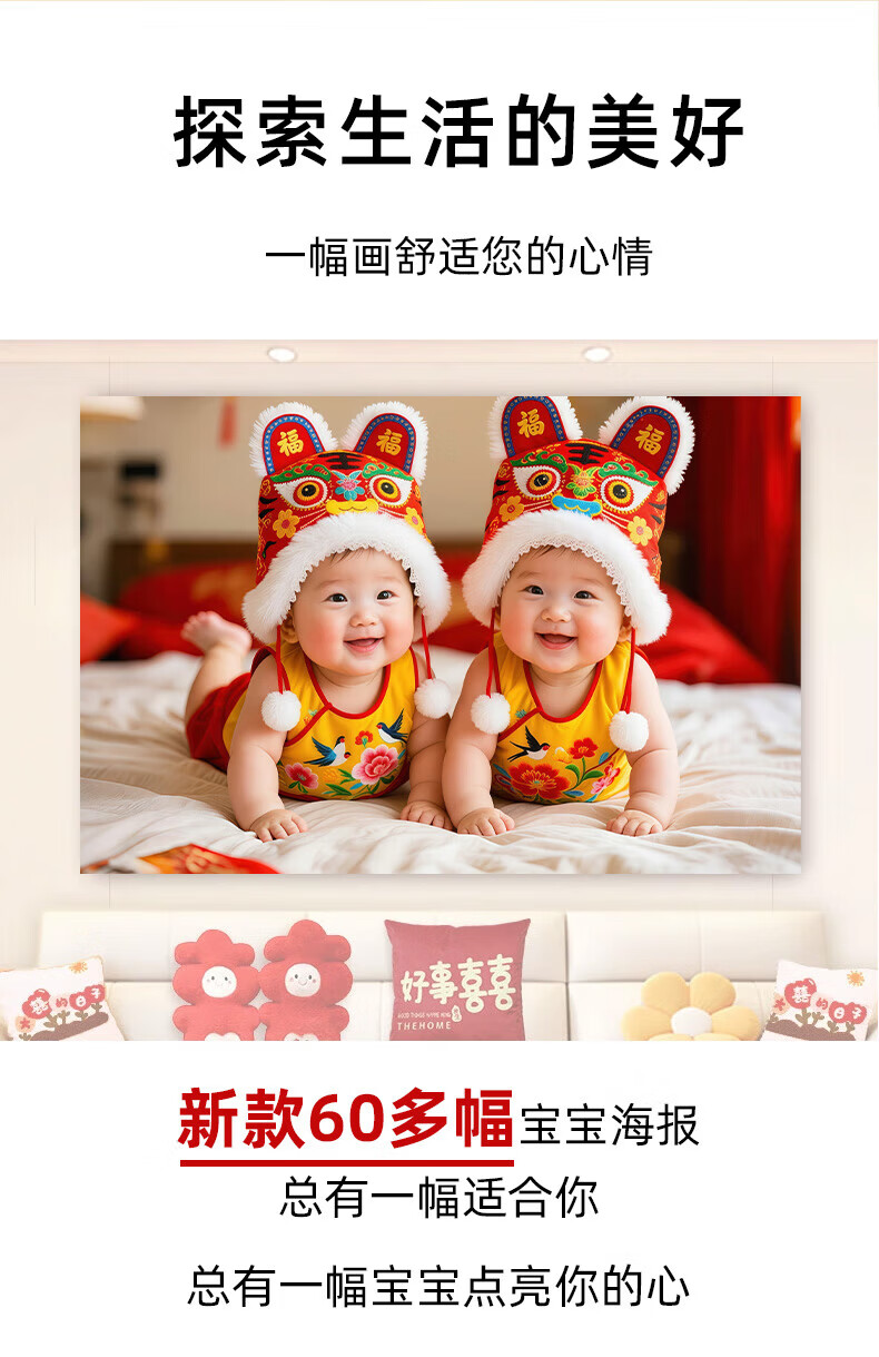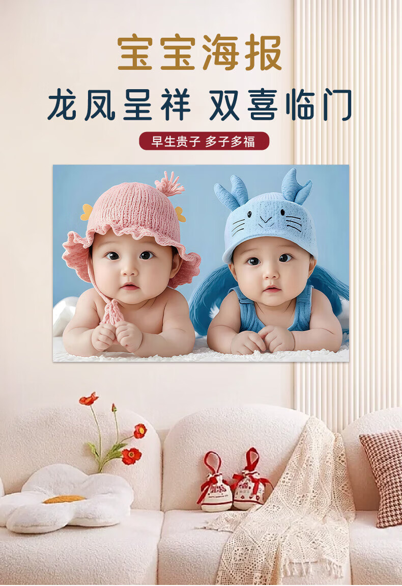 宝宝画报墙贴画送子图求子助备孕卧室年画娃娃床头龙凤胎宝宝海报 宝宝画102 宽120cm-高80cm