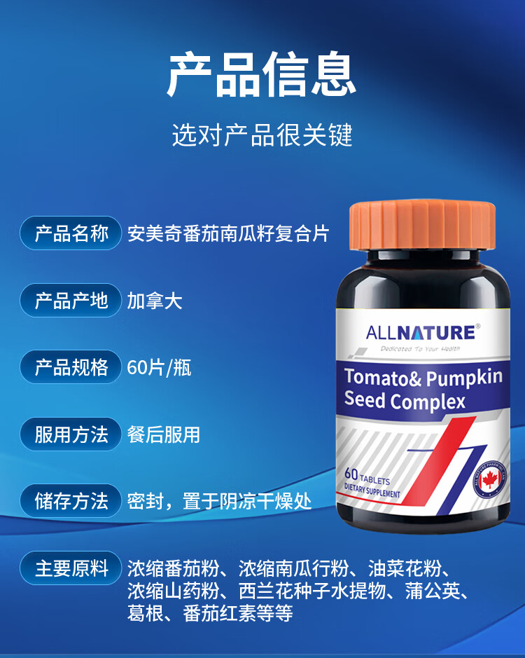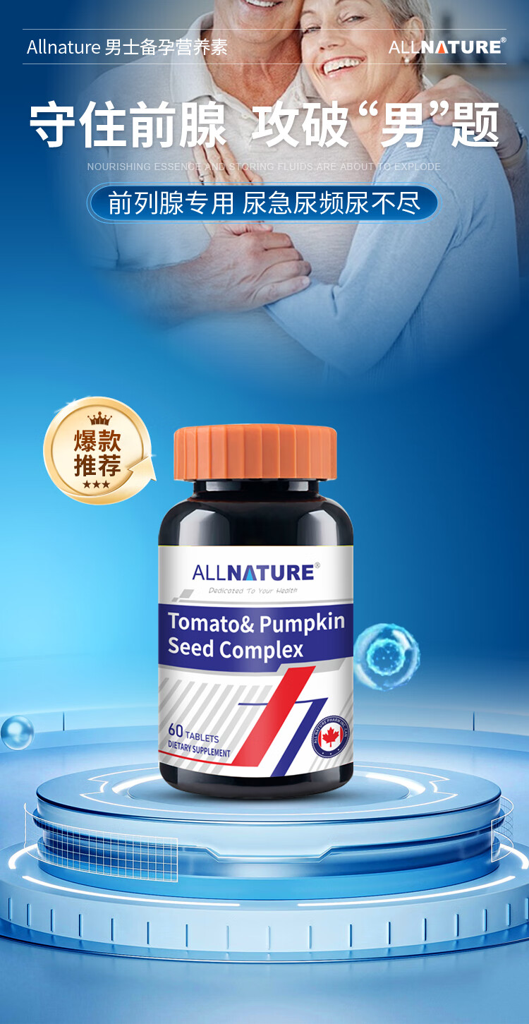 安美奇进口番茄红素男士专用备孕南瓜籽可搭补肾壮阳前列腺生精牡蛎精片 7瓶