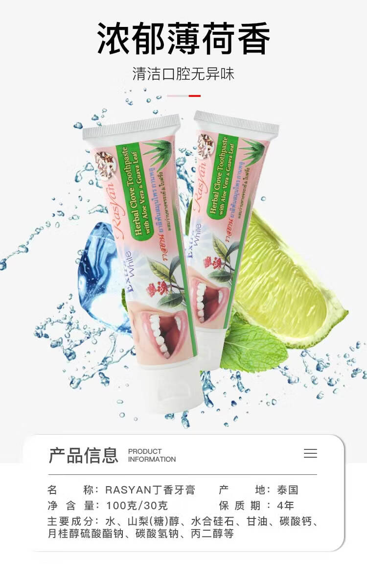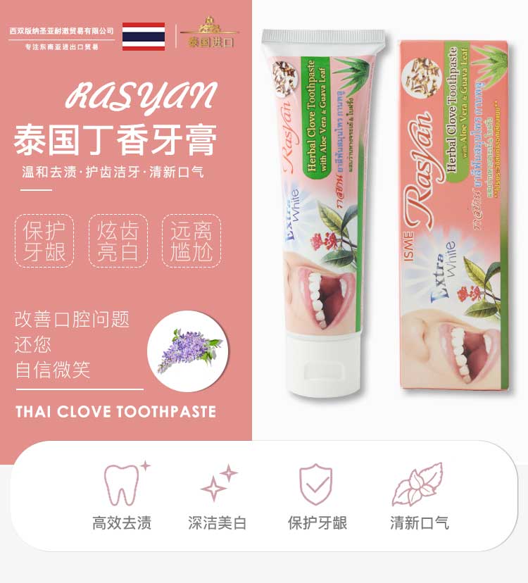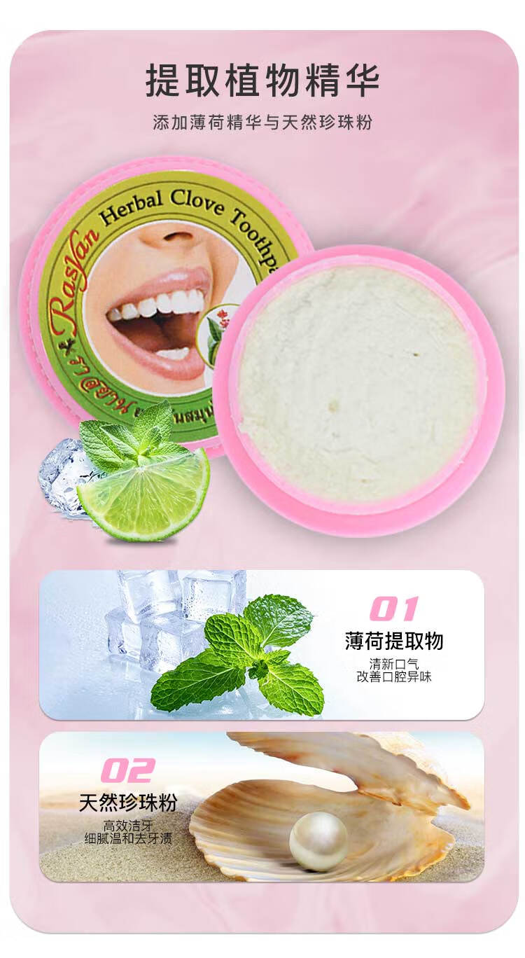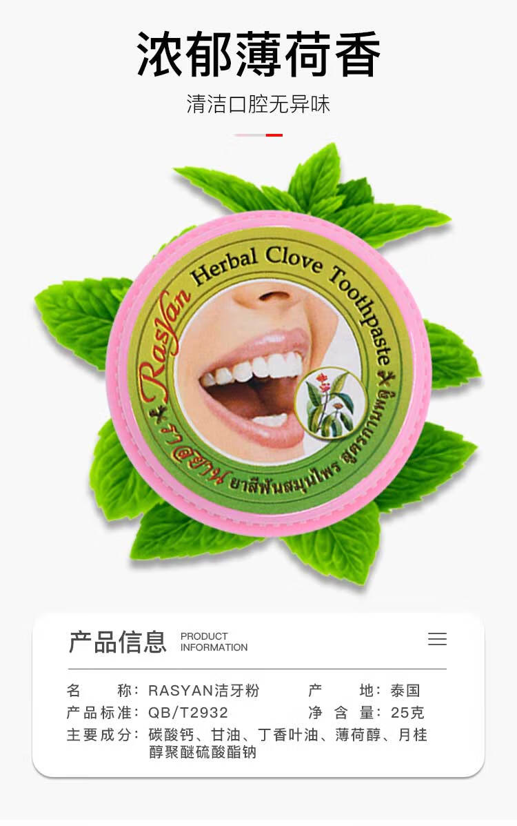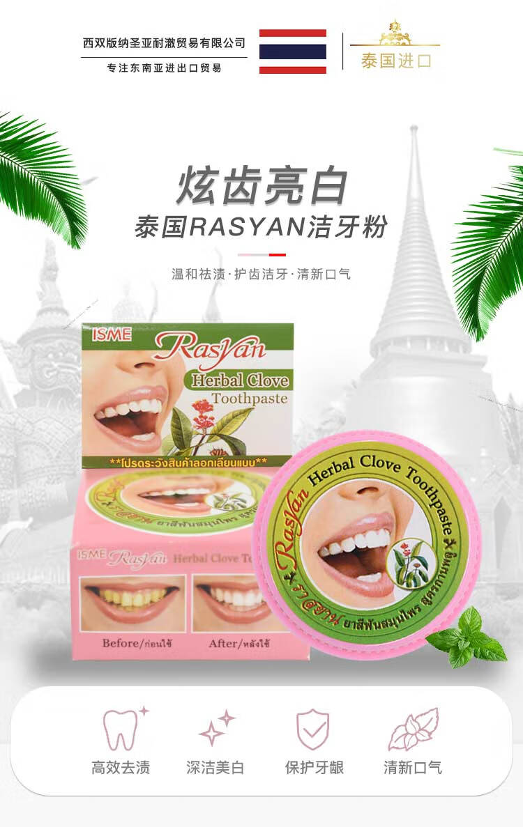 暹然泰国丁香牙粉牙膏rasyan去黄美白清新口气去烟渍茶渍黄黑渍正品 丁香牙粉25g*1盒
