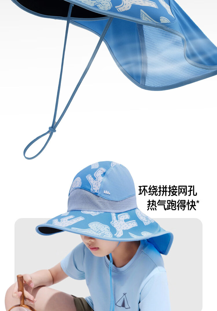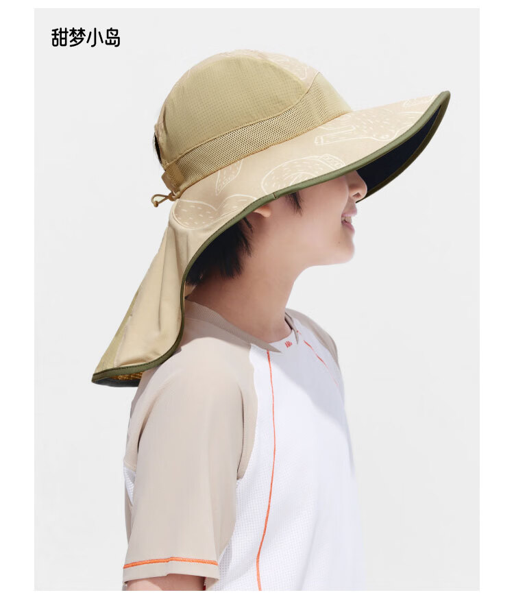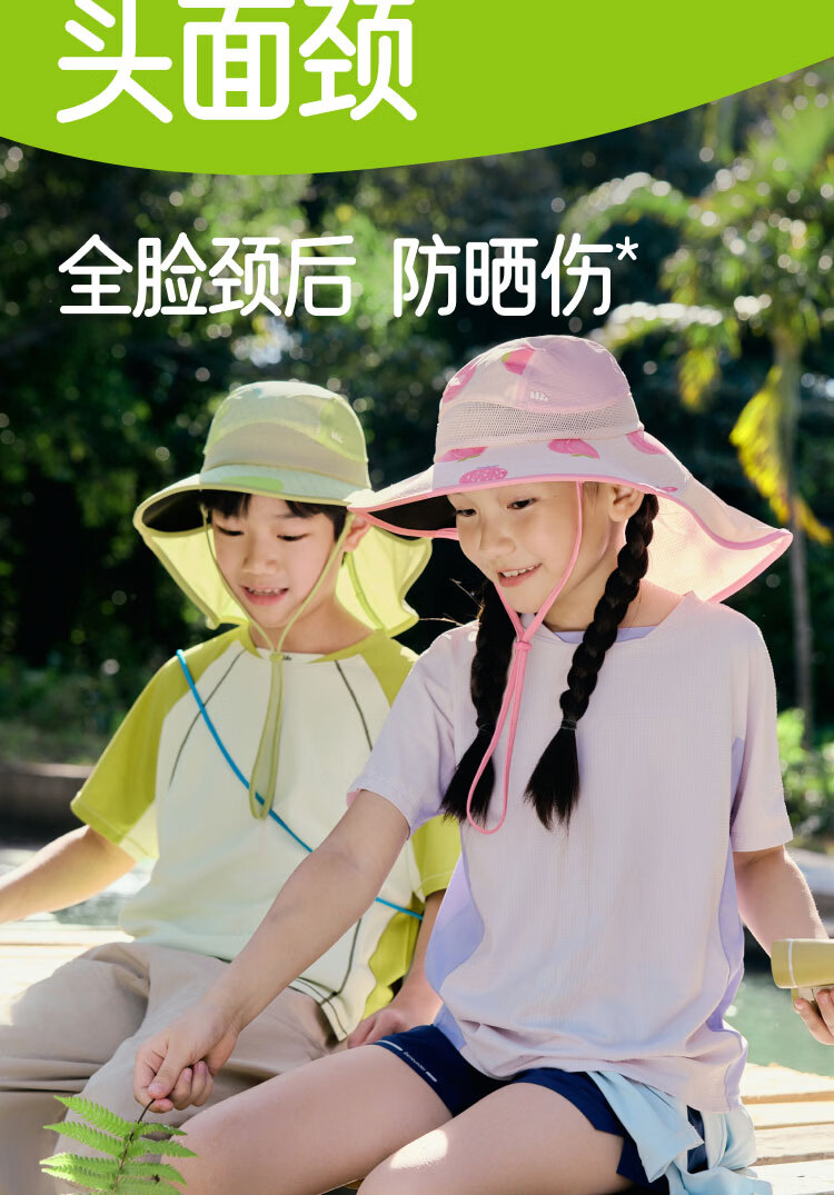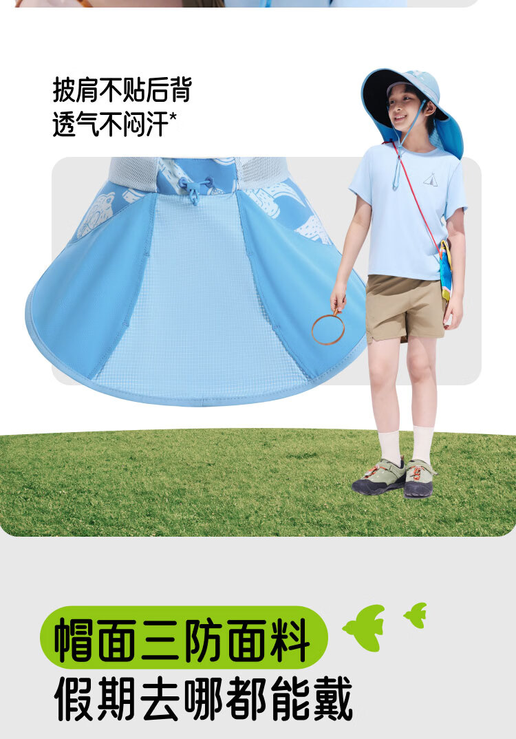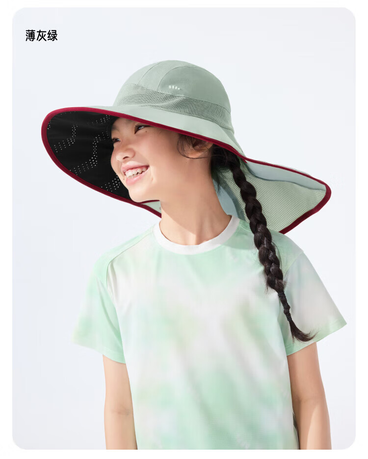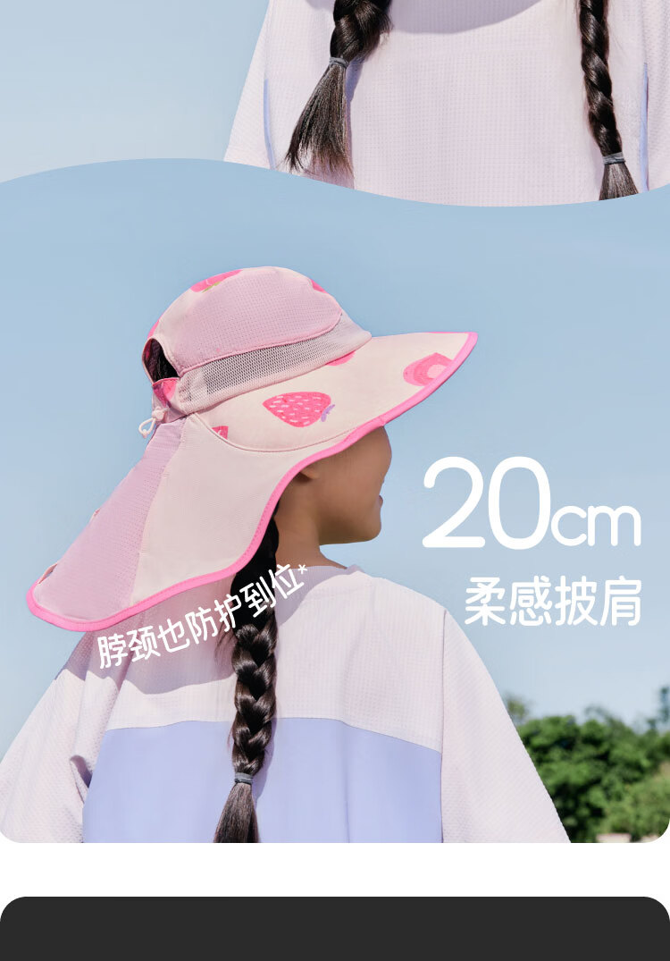 蕉下(beneunder)儿童多功能防晒帽大帽檐透气户外太阳帽带披肩男女孩夏季遮阳帽子 烟灰紫(50-54CM)