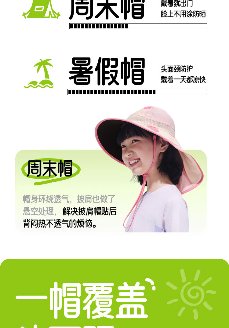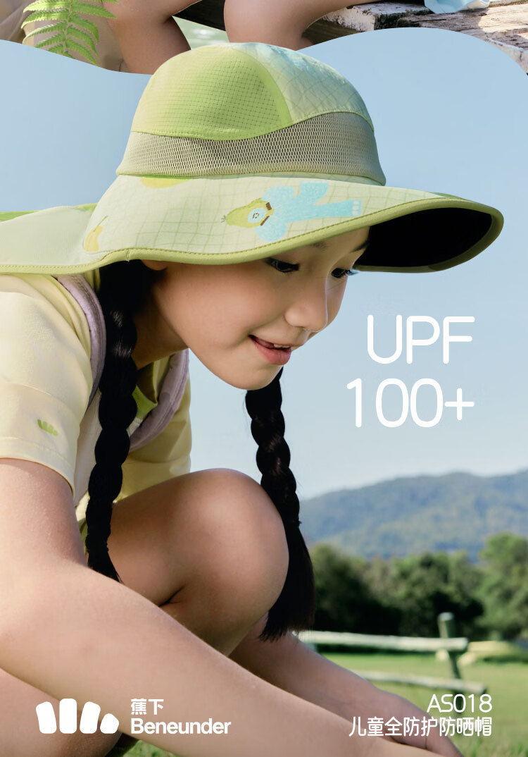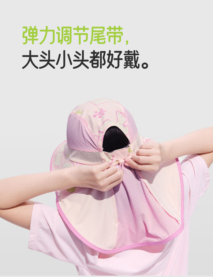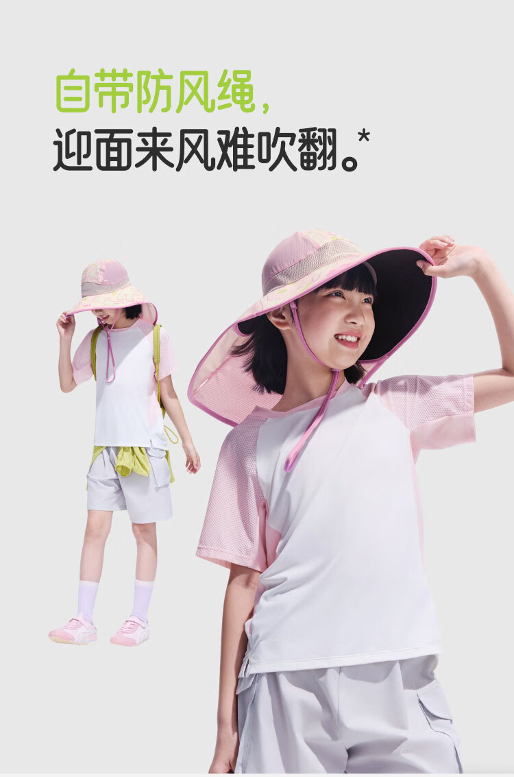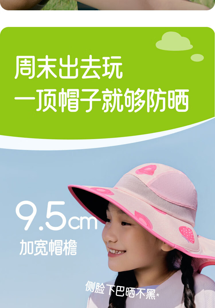 蕉下(beneunder)儿童多功能防晒帽大帽檐透气户外太阳帽带披肩男女孩夏季遮阳帽子 烟灰紫(50-54CM)