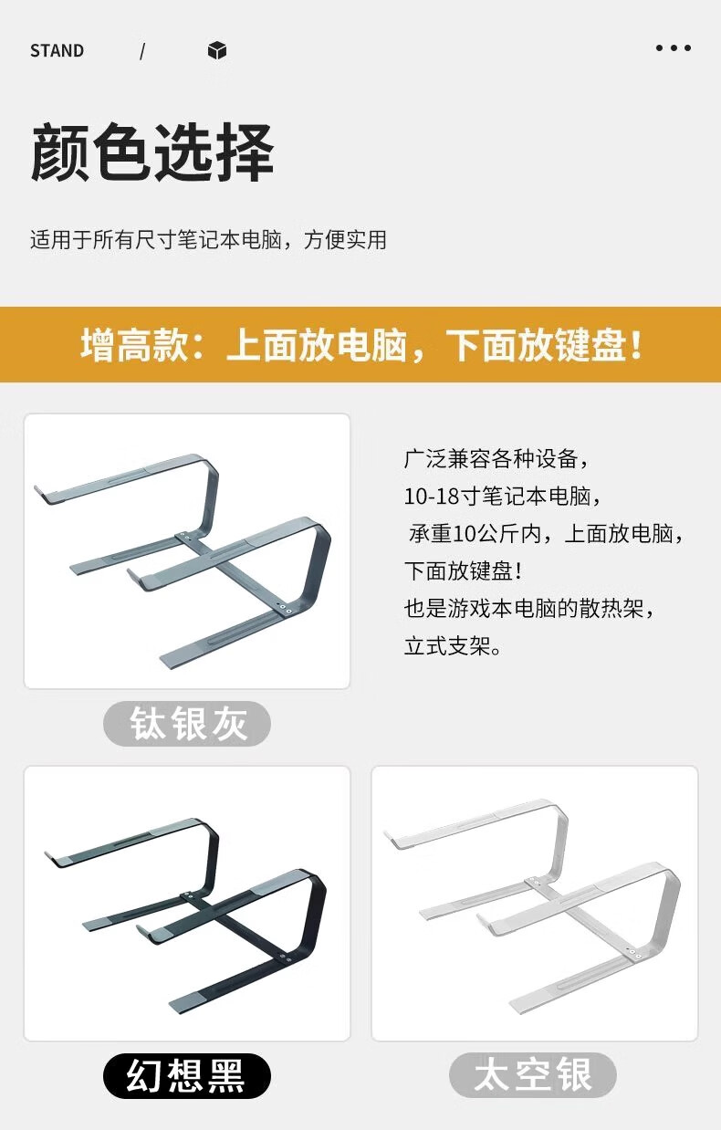 CAIBEIKE适用于rog魔霸7笔记本电脑支架悬空增高架散热底座平板支撑架子枪神8/9plus外星人华硕天选5pro 星耀黑【架空式平放】可承重20KG