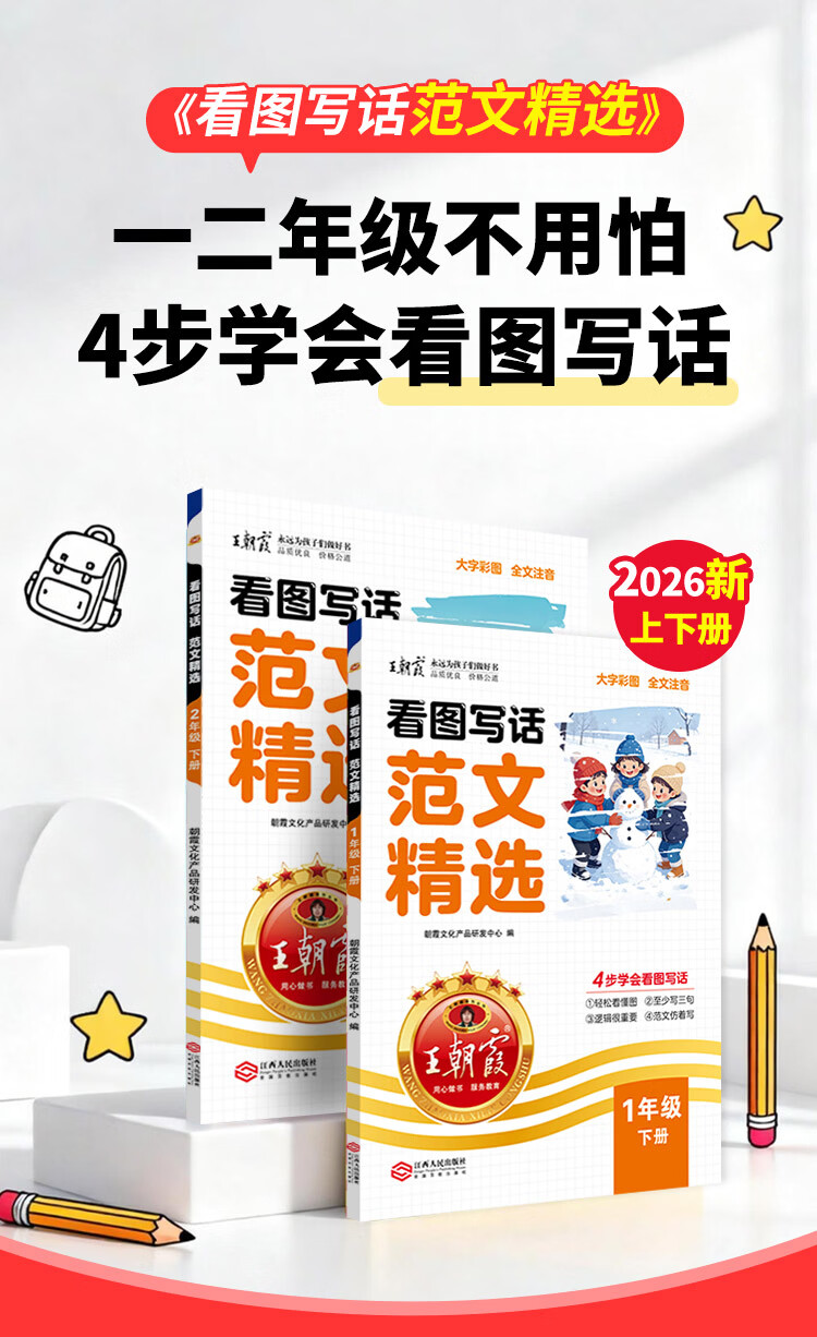 王朝霞2026春下册看图写话范文精选一二年级每日一练写作方法技巧入门范文大全语文素材积累看图写话每日作文训练语文读写训练通用版 【上下册2本】看图写话范文精选 二年级
