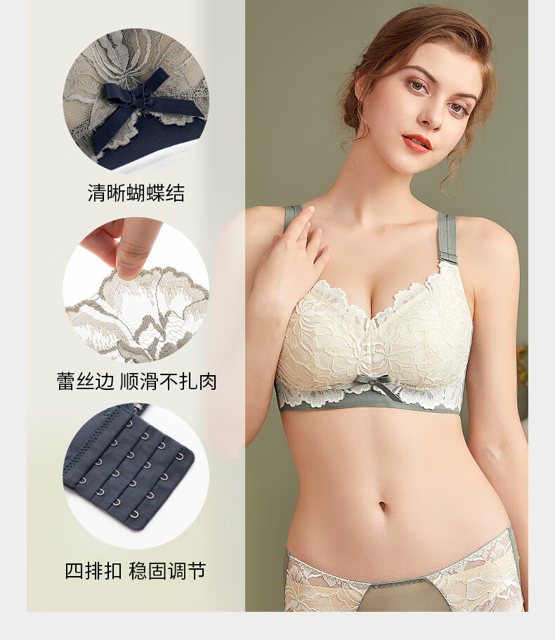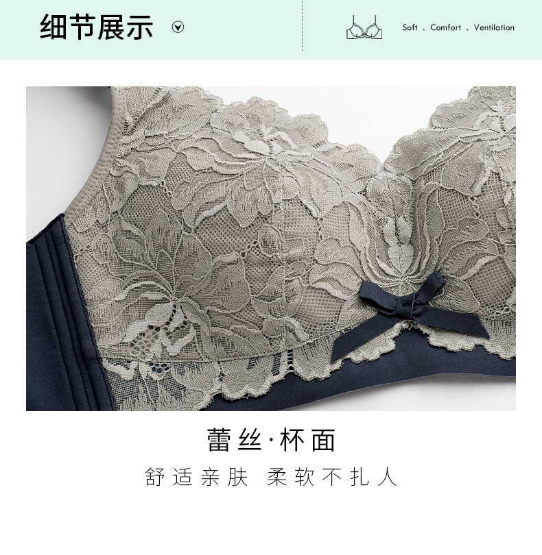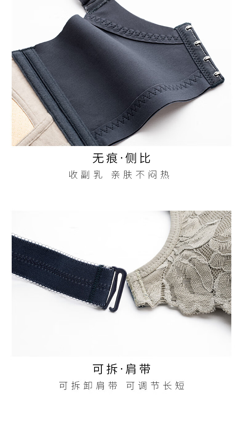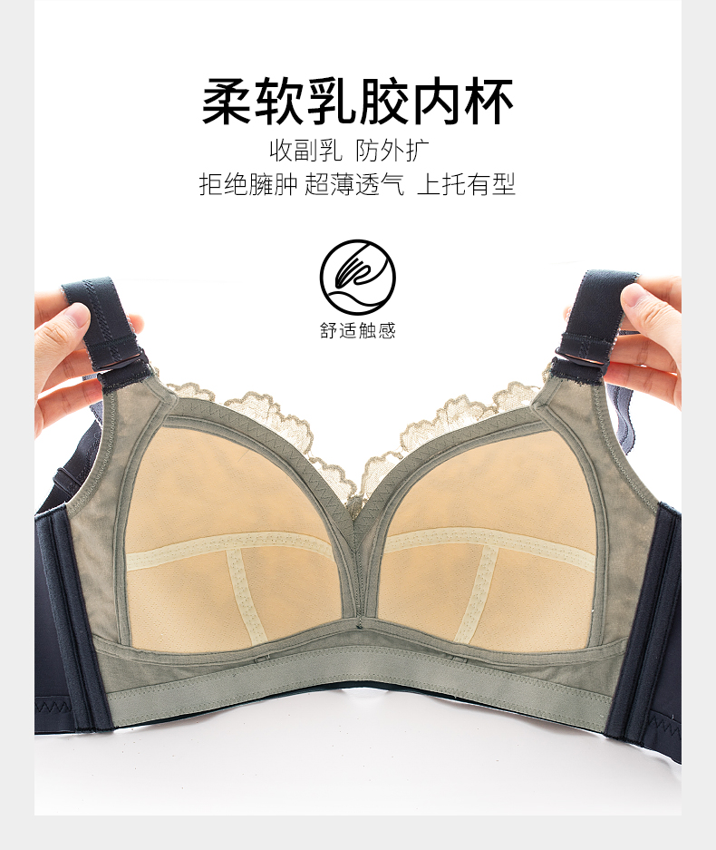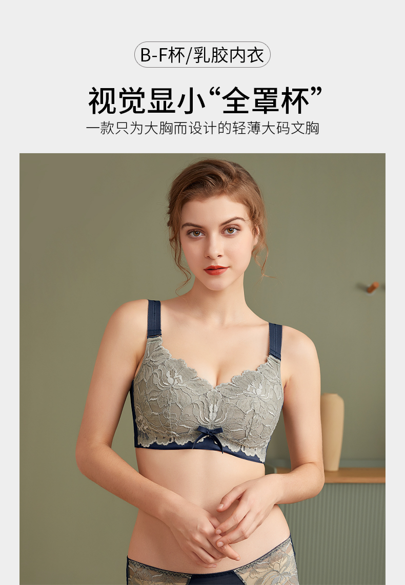 千奈美新款无钢圈内衣女大胸显小薄款乳胶调整型聚拢文胸 棕茶色 85F