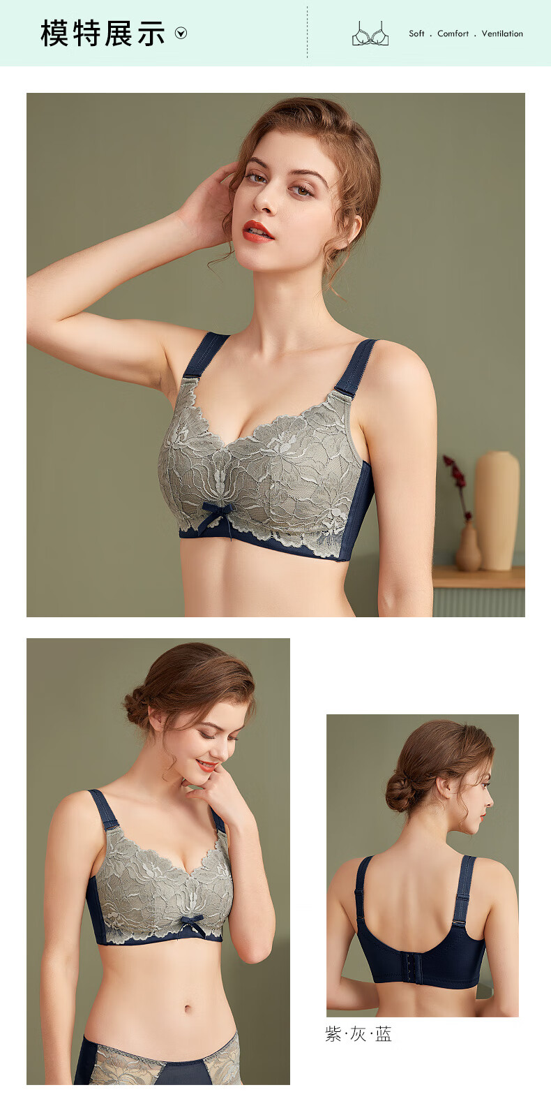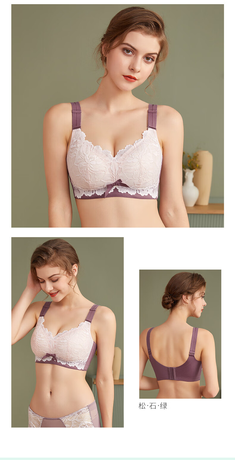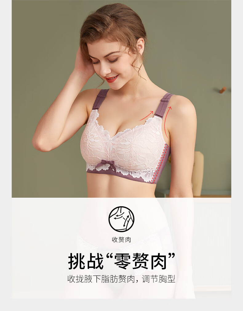 中老年妈妈前扣文胸薄款无钢圈内衣女聚拢防下垂收副乳背心式胸罩 【紫灰】一件装 95B 【42码】建议120-133斤