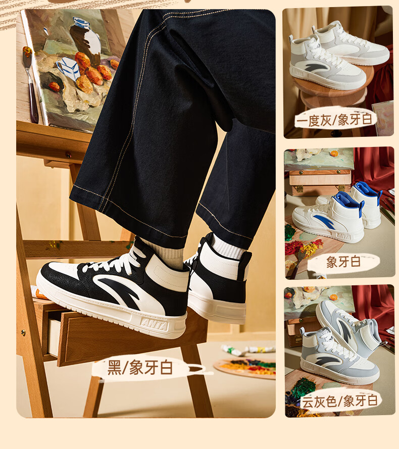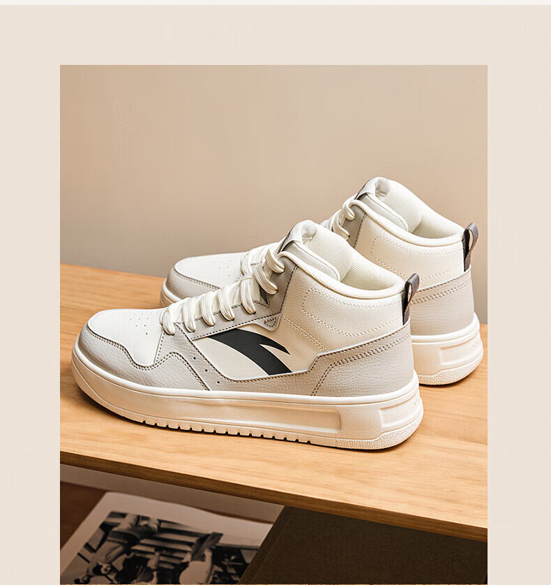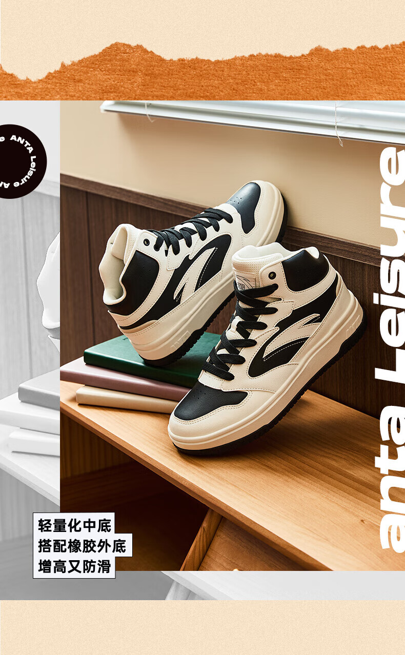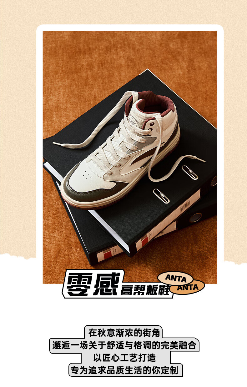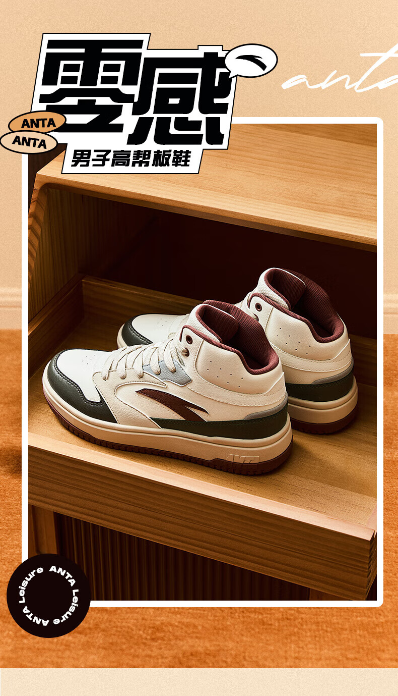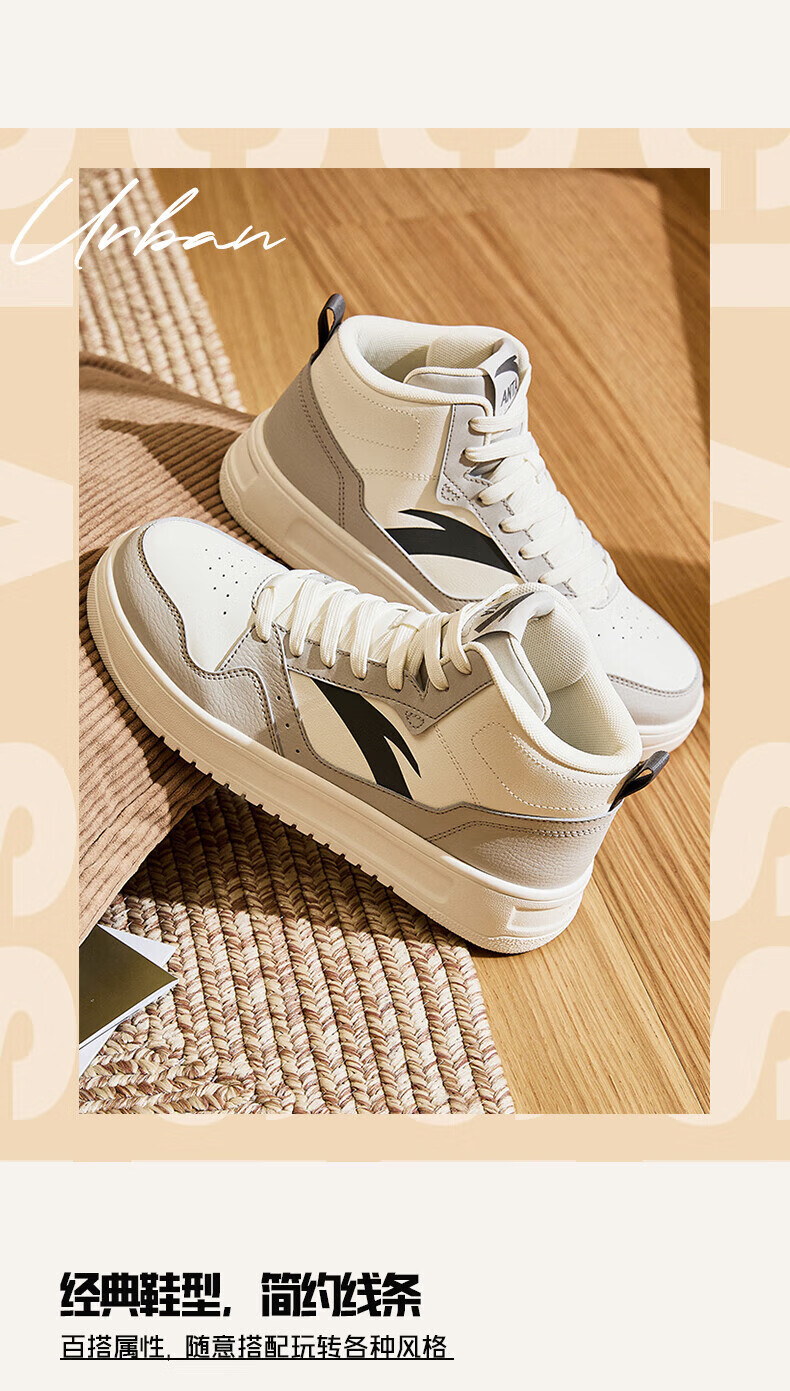 安踏轻松高帮板鞋男百搭耐磨防滑护踝高帮男鞋休闲潮流运动休闲鞋板鞋 【元年】象牙白/雀茶棕/烟熏红-6 41