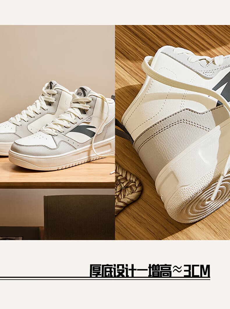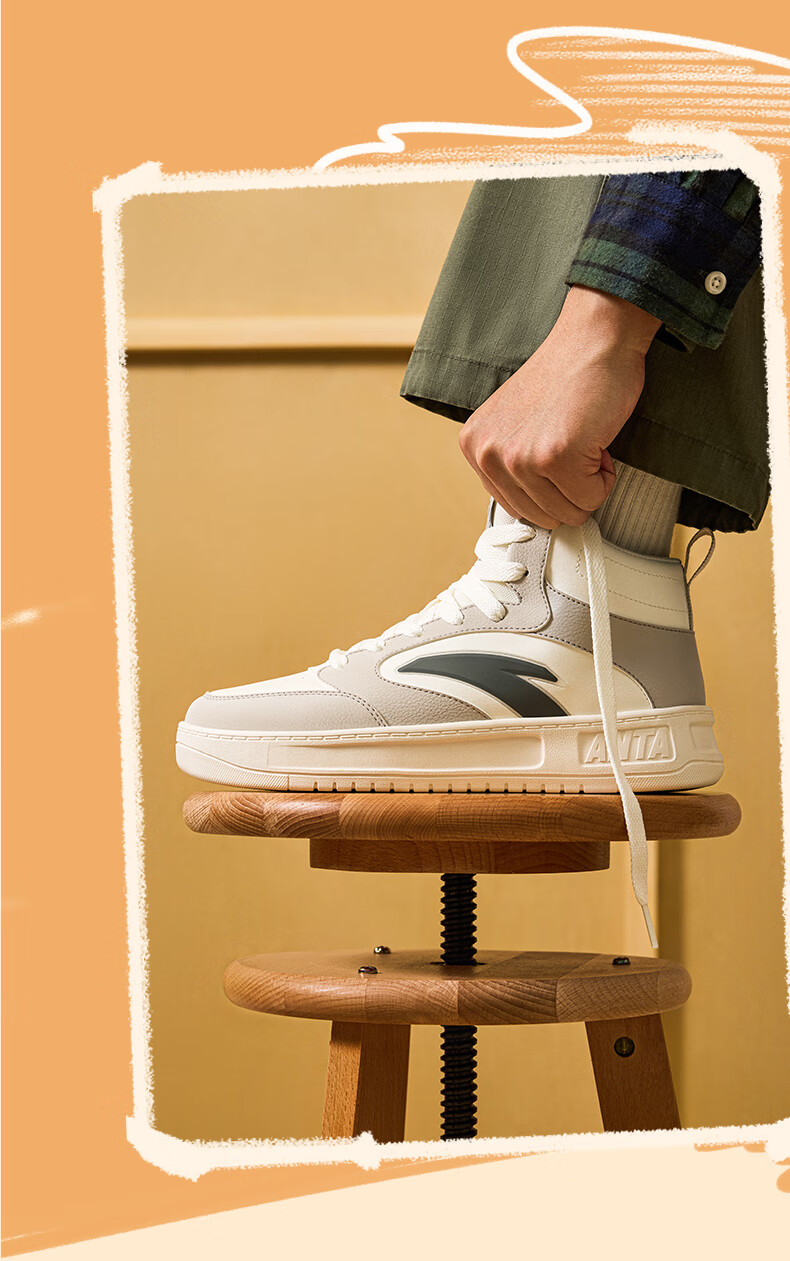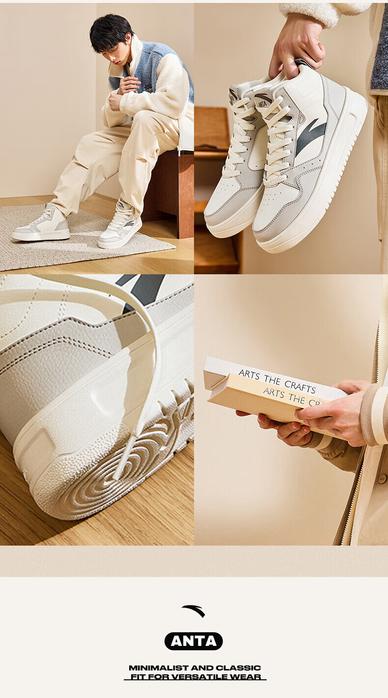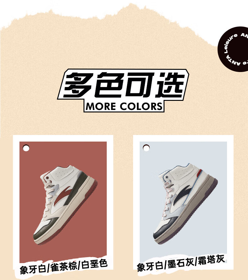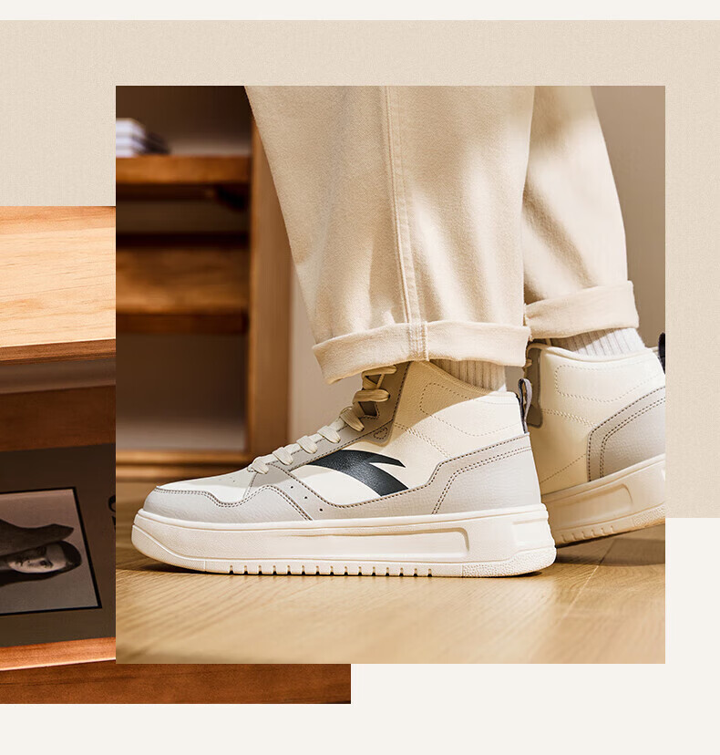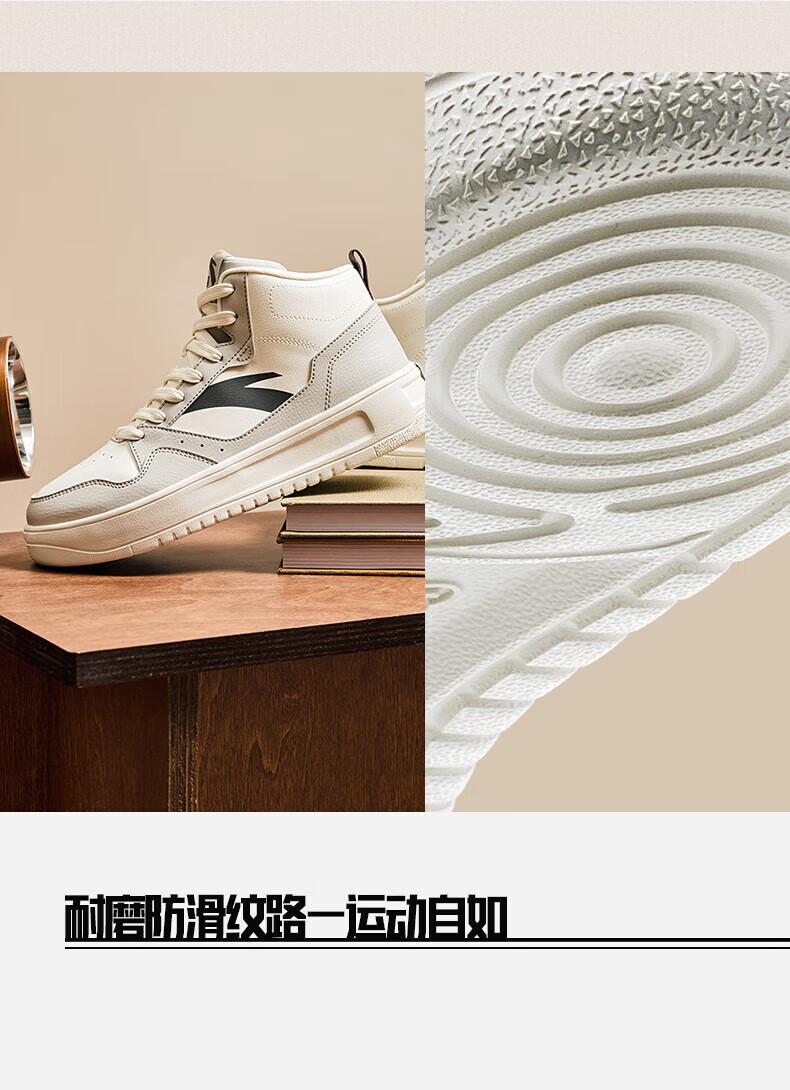 安踏轻松高帮板鞋男百搭耐磨防滑护踝高帮男鞋休闲潮流运动休闲鞋板鞋 【元年】象牙白/雀茶棕/烟熏红-6 41