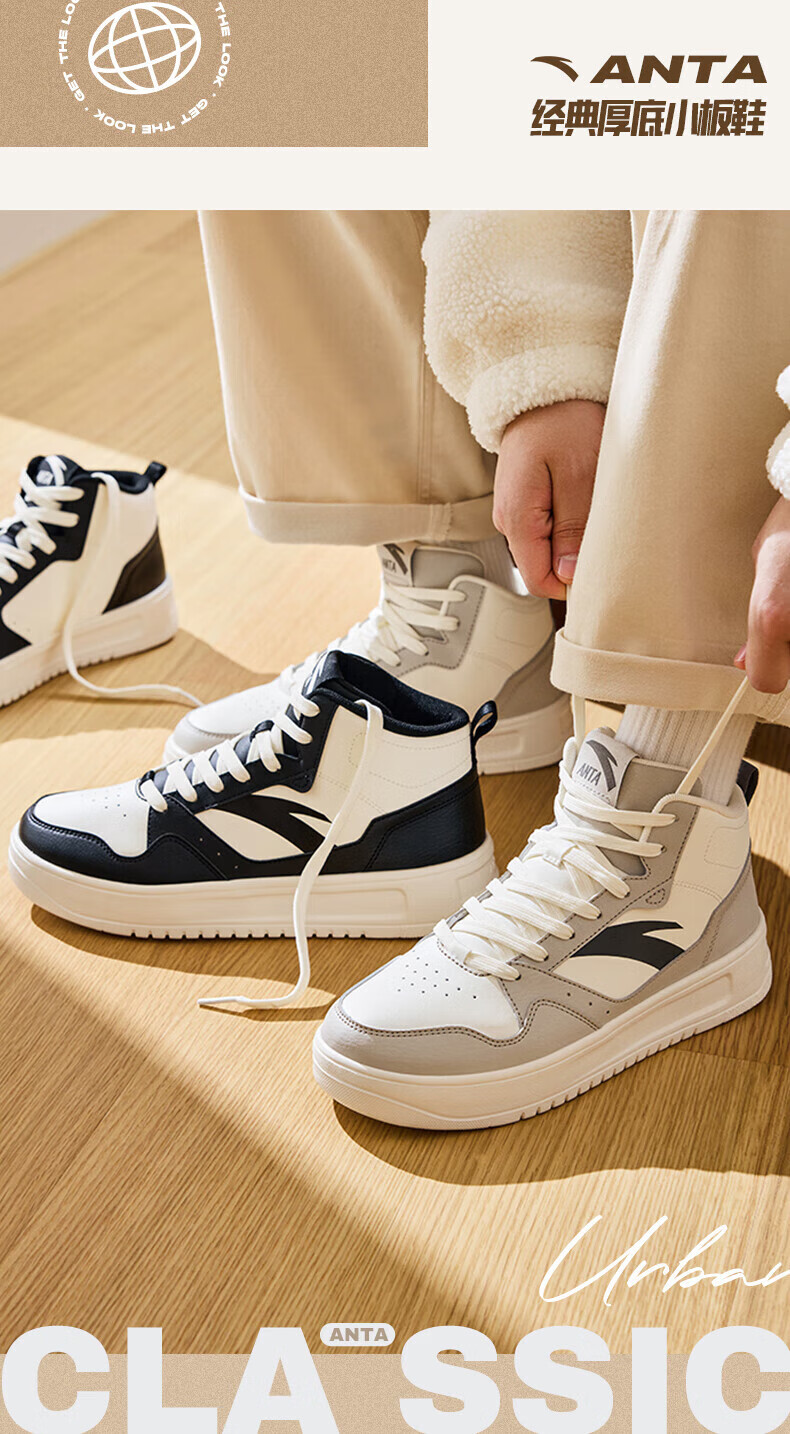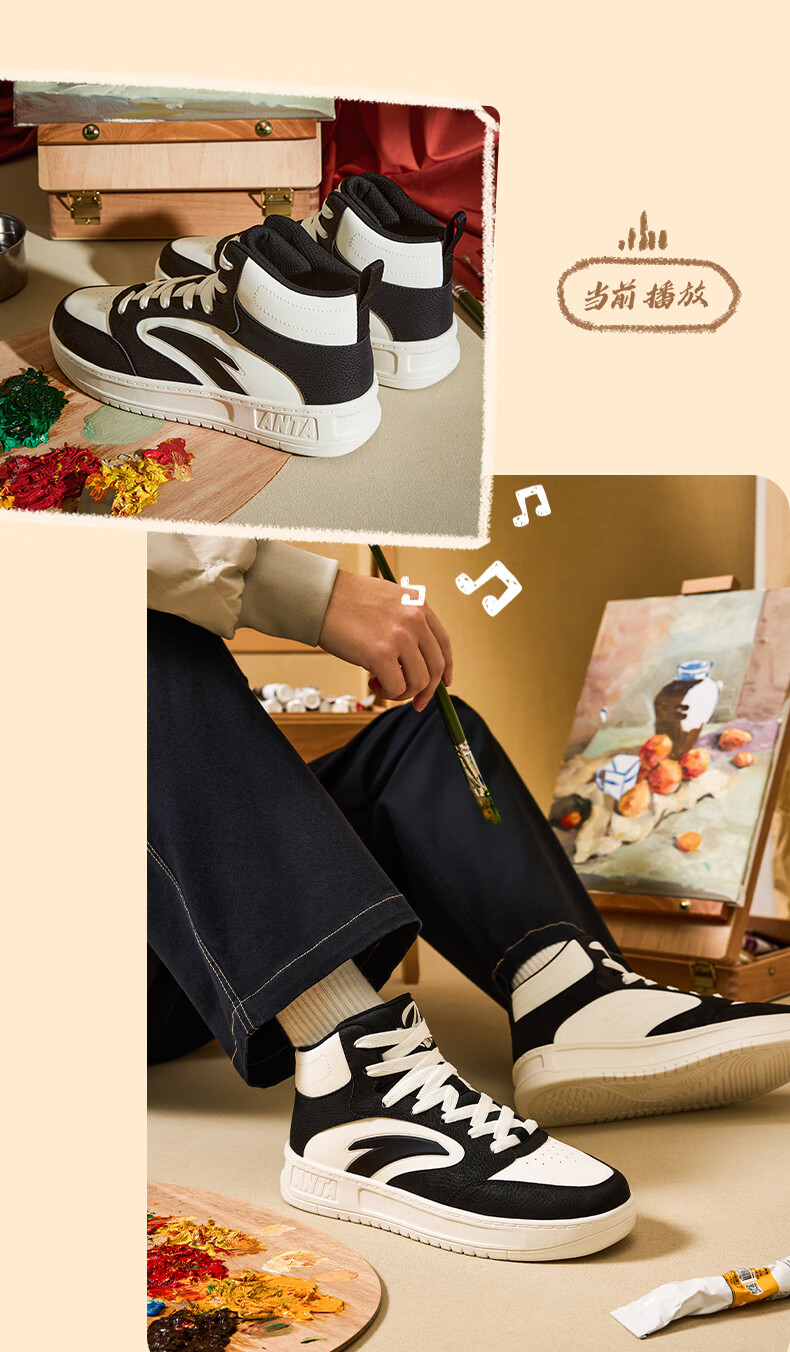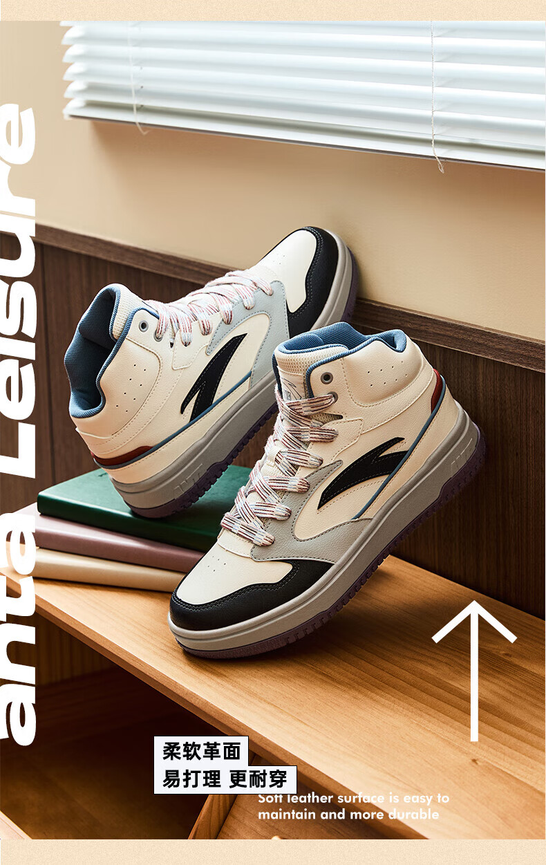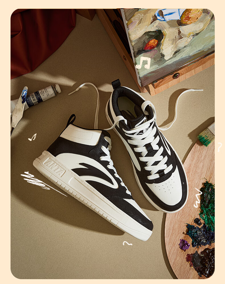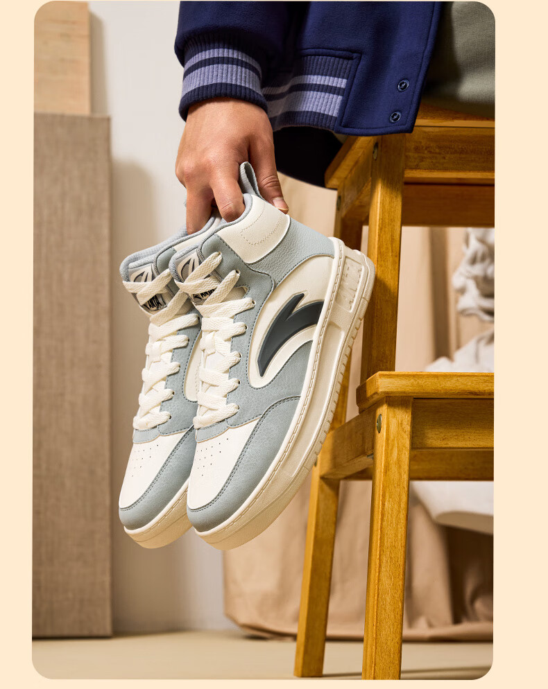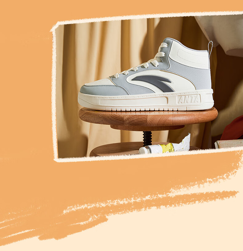 安踏轻松高帮板鞋男百搭耐磨防滑护踝高帮男鞋休闲潮流运动休闲鞋板鞋 【元年】象牙白/雀茶棕/烟熏红-6 41