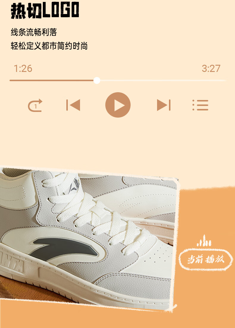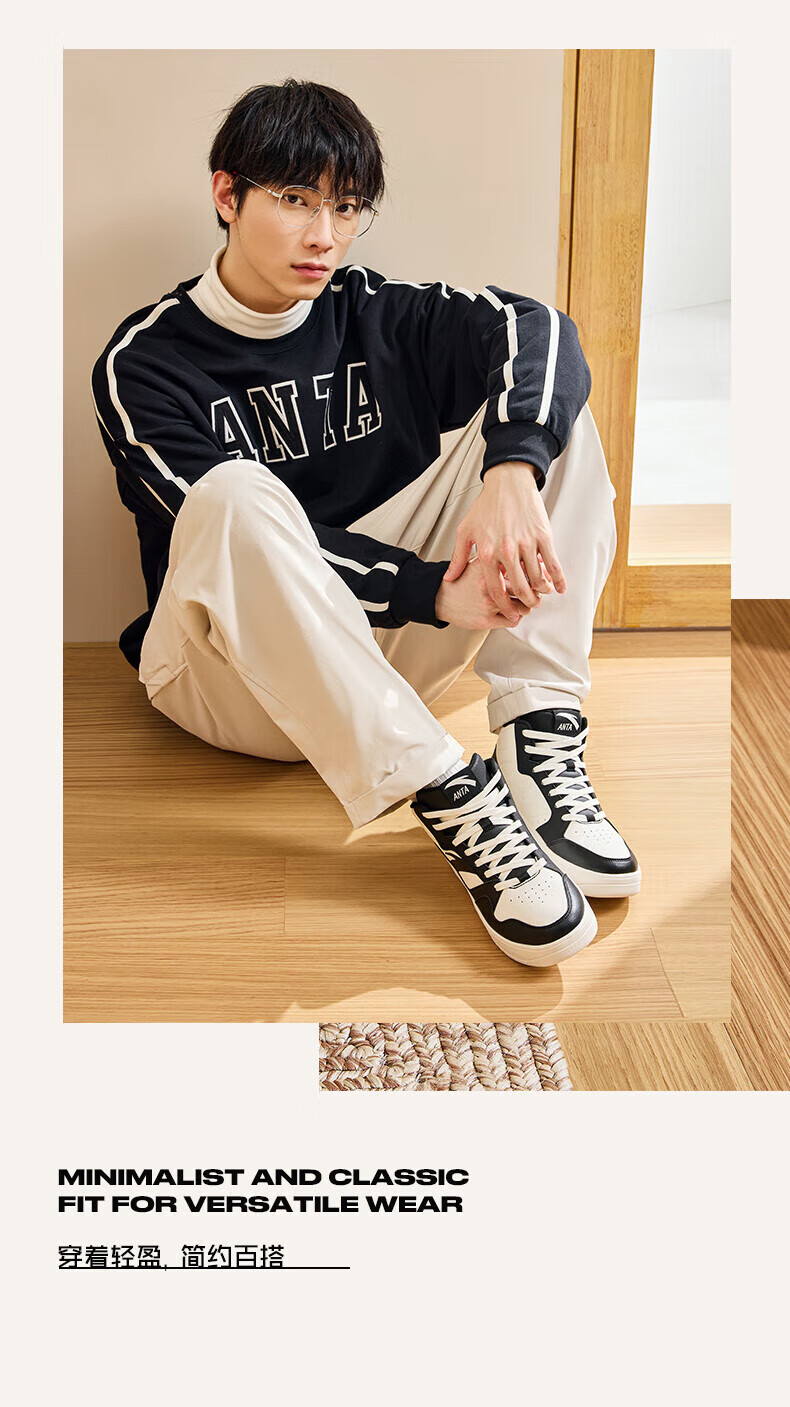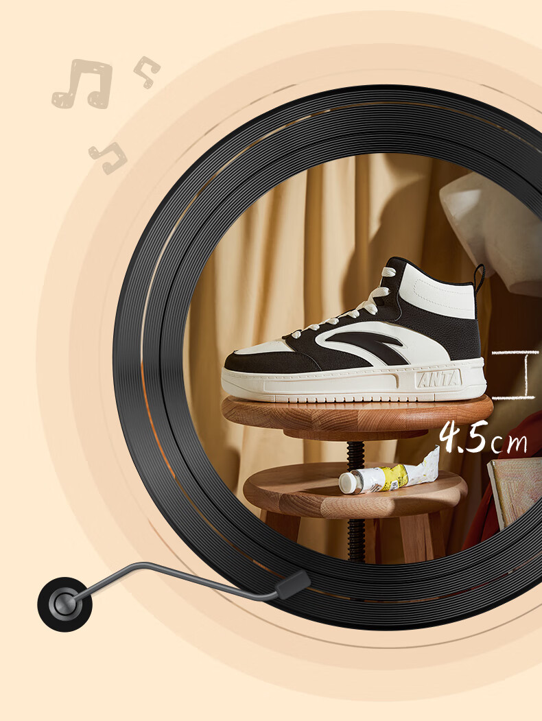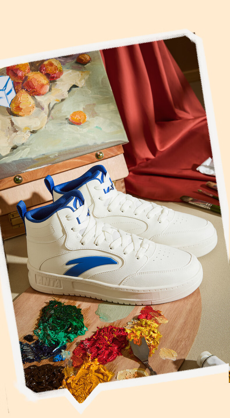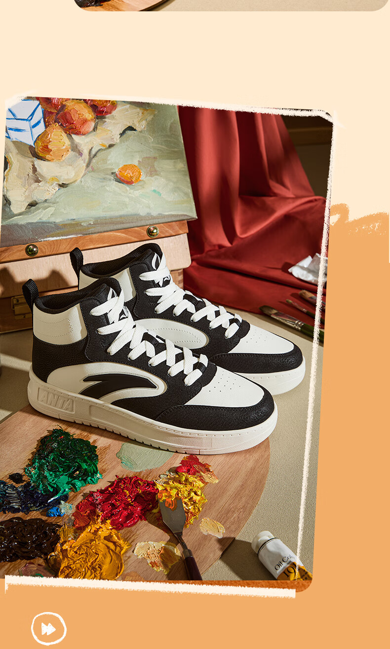 安踏轻松高帮板鞋男百搭耐磨防滑护踝高帮男鞋休闲潮流运动休闲鞋板鞋 【元年】象牙白/雀茶棕/烟熏红-6 41