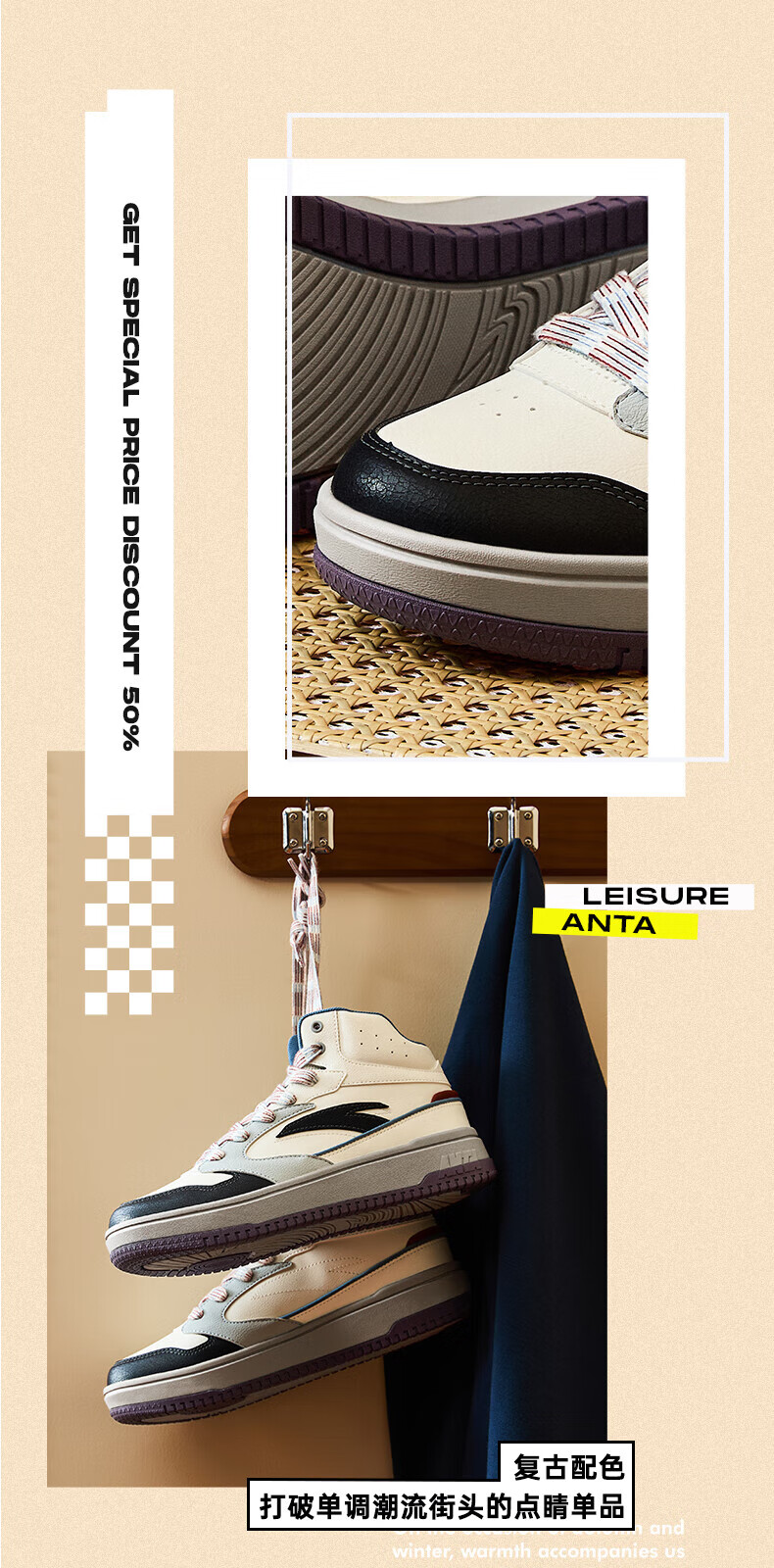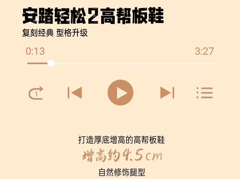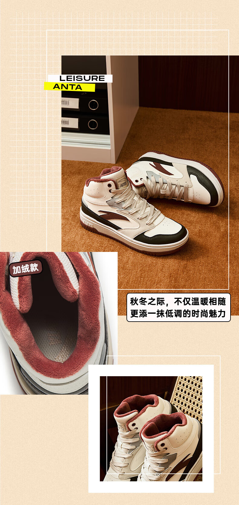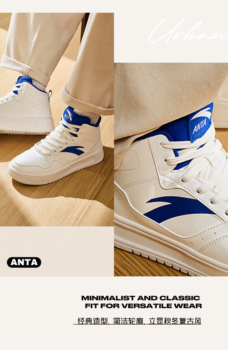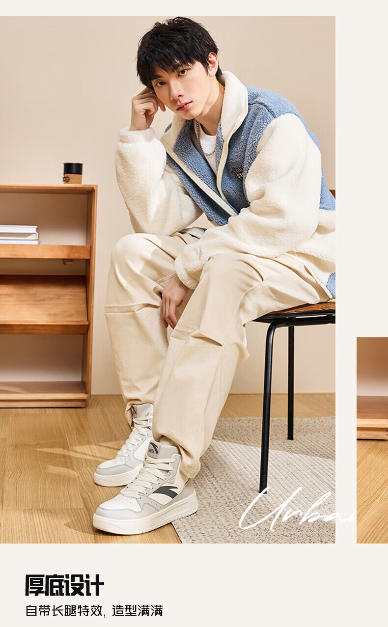 安踏轻松高帮板鞋男百搭耐磨防滑护踝高帮男鞋休闲潮流运动休闲鞋板鞋 【元年】象牙白/雀茶棕/烟熏红-6 41