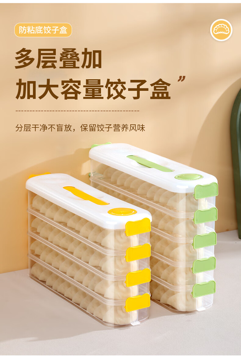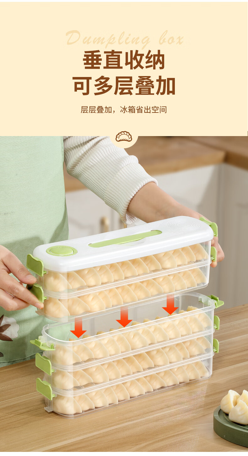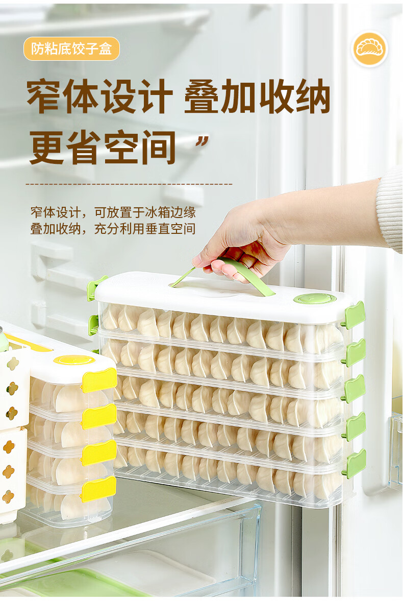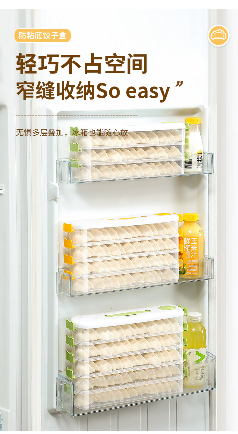 百易特夹缝饺子冷冻收纳盒冰箱侧门专用保鲜食品级分装整理省空间收纳盒 果绿色【窄缝收纳/自由叠加】4层