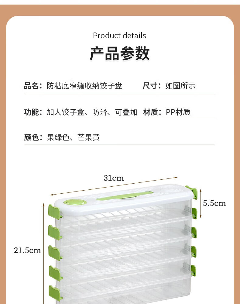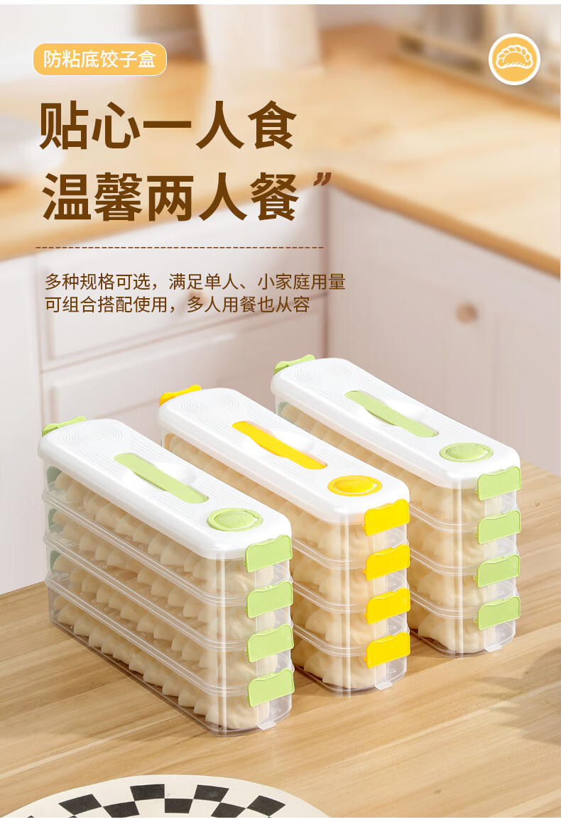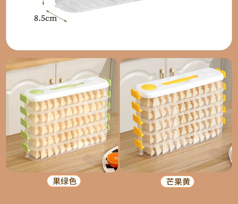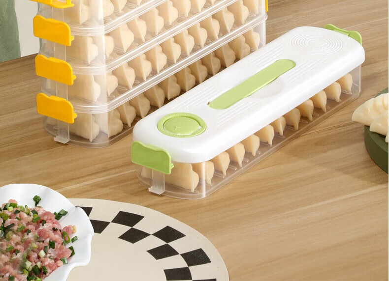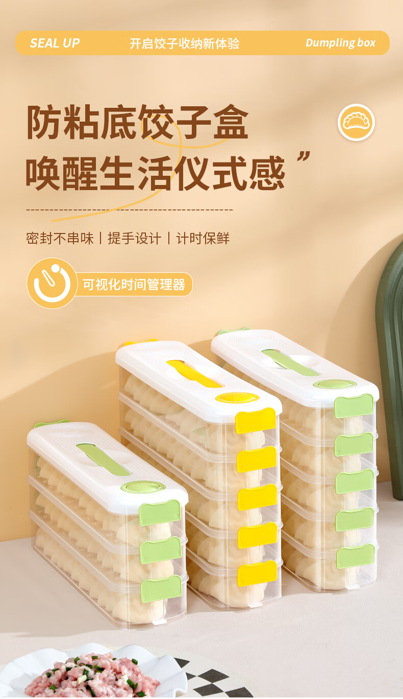 百易特夹缝饺子冷冻收纳盒冰箱侧门专用保鲜食品级分装整理省空间收纳盒 果绿色【窄缝收纳/自由叠加】4层