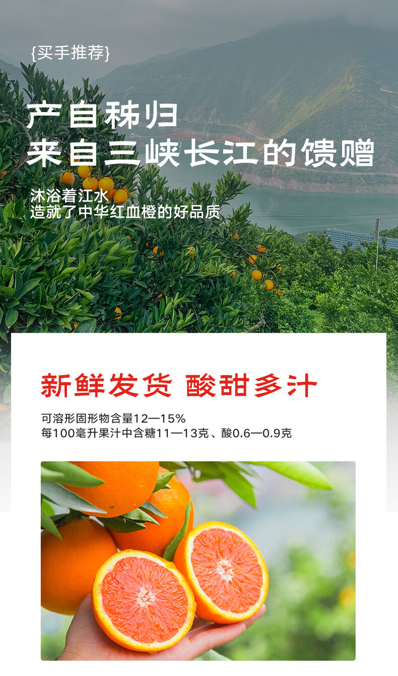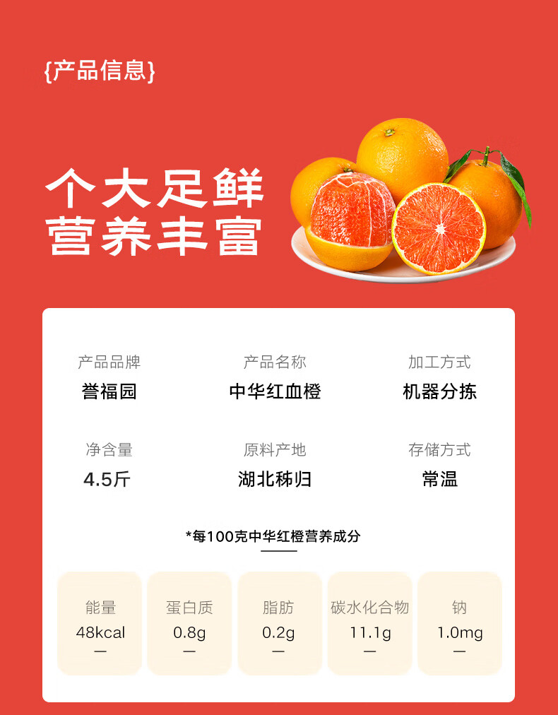 京鲜生 湖北中华红血橙 净重4.5斤 单果200g+新鲜水果源头直发包邮