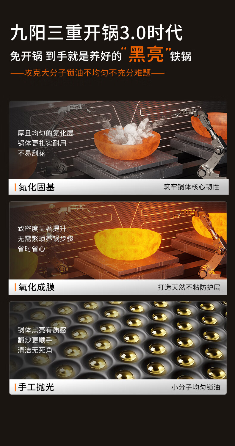 九阳(Joyoung)炒锅铁锅0涂层免开锅煎锅极铁精铁燃气灶爆炒不易粘锅炒菜锅32cm