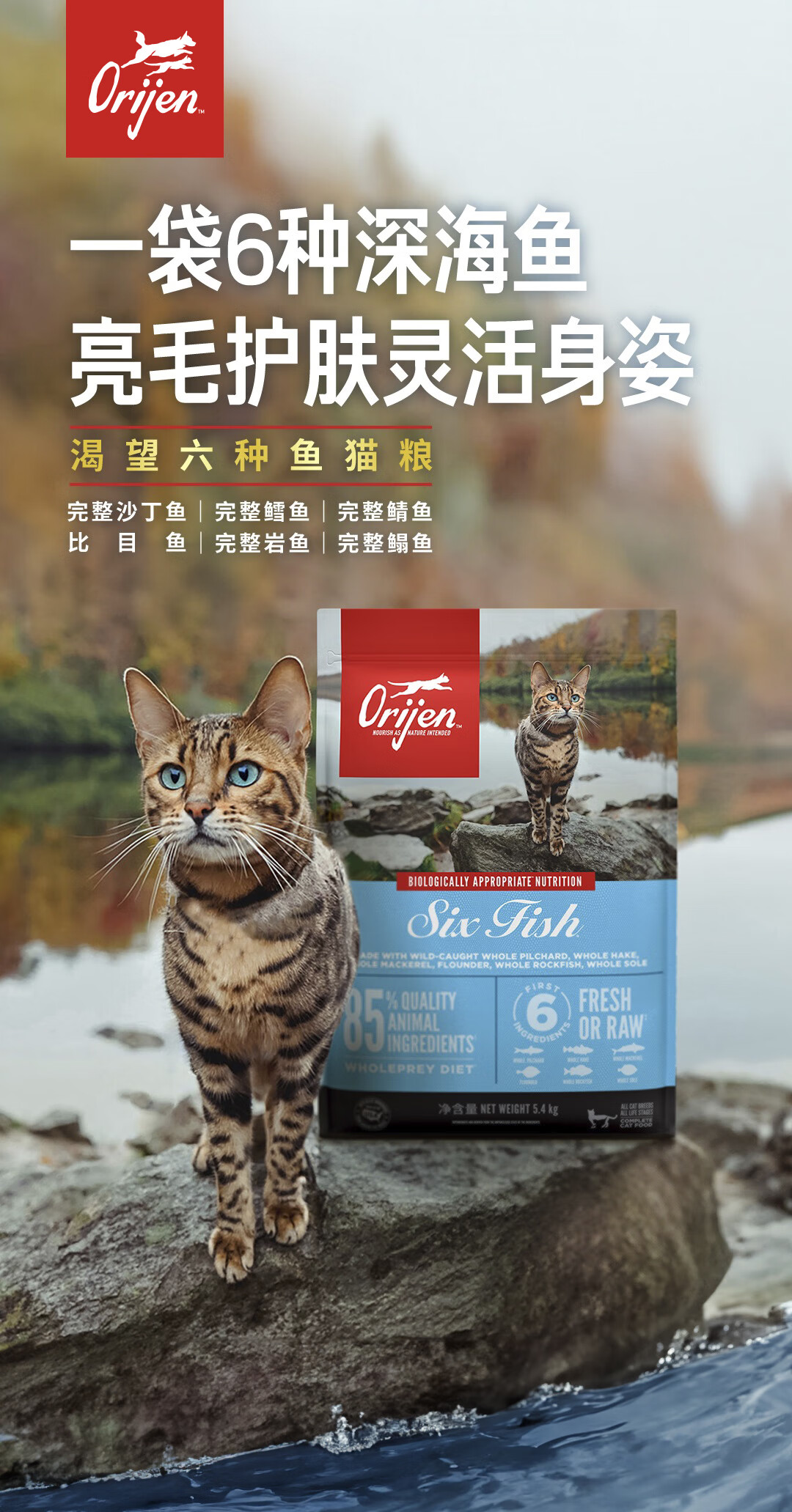 Orijen渴望猫粮 成猫幼猫粮 六种鱼肉无谷全价通用进口1.8kg效期26/11