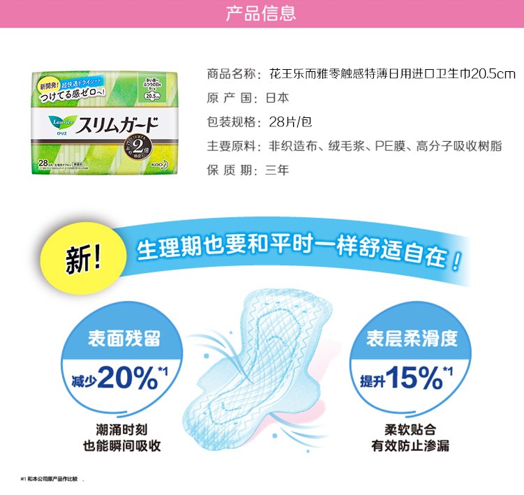 乐而雅花王进口零触感特薄透气日用卫生巾20.5cm28片姨妈巾京东自营囤货