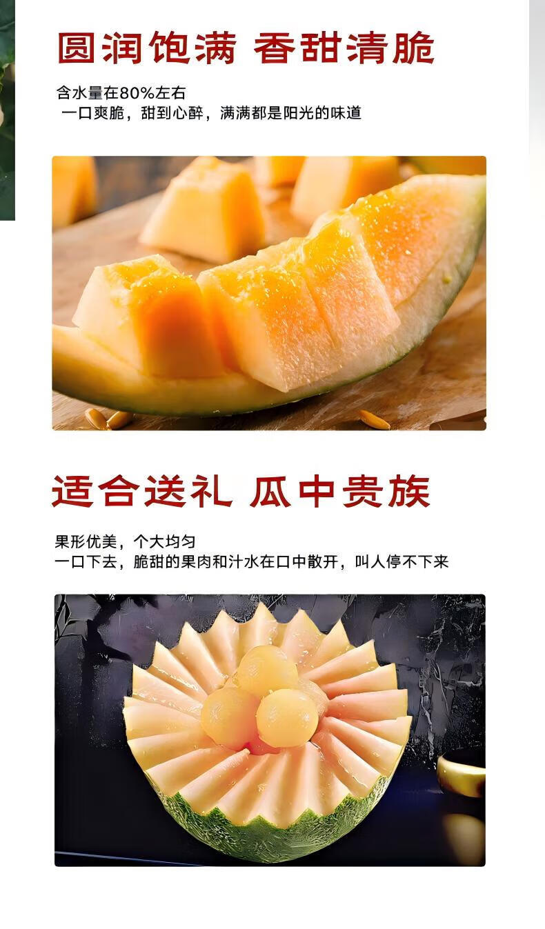 京鲜生 海南哈密瓜西州蜜/西周蜜 2粒5-7斤 单果2.5斤生鲜水果年货礼盒