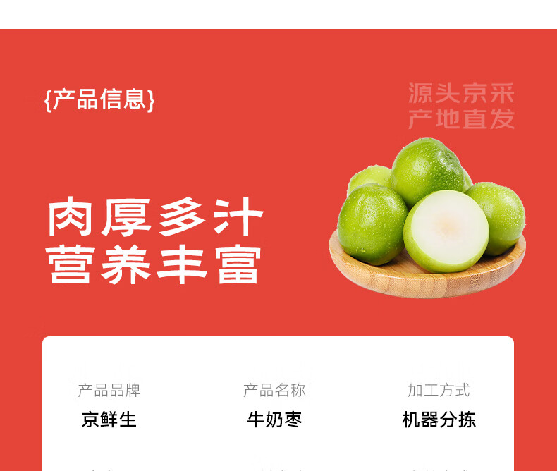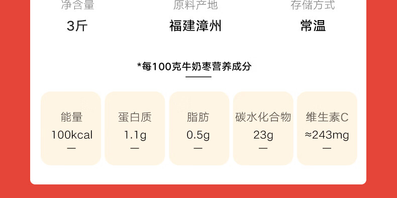 京鲜生 福建牛奶枣 3斤装 单果50g起 时令生鲜水果 源头直发 包邮