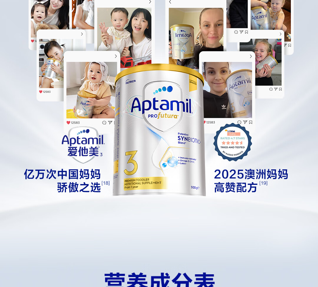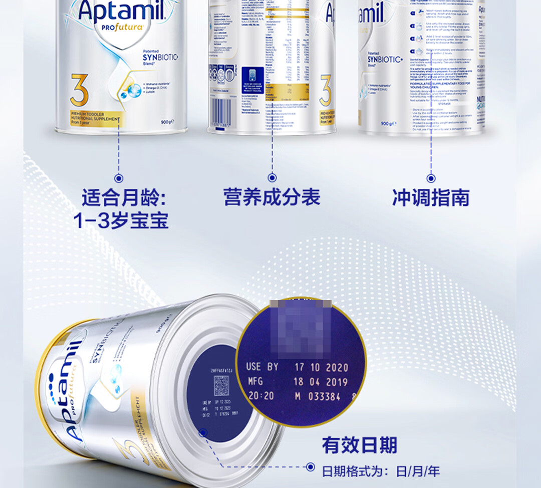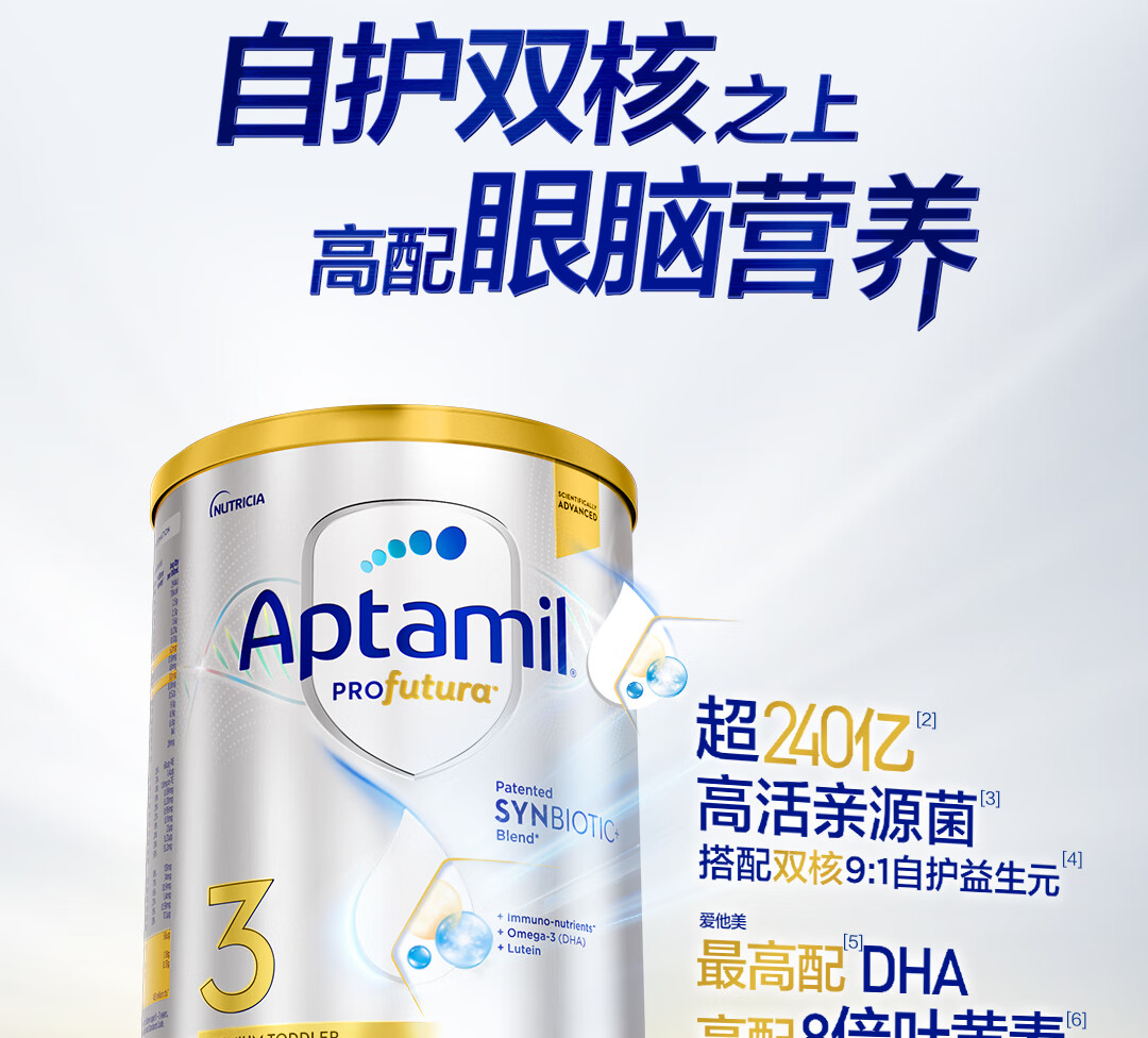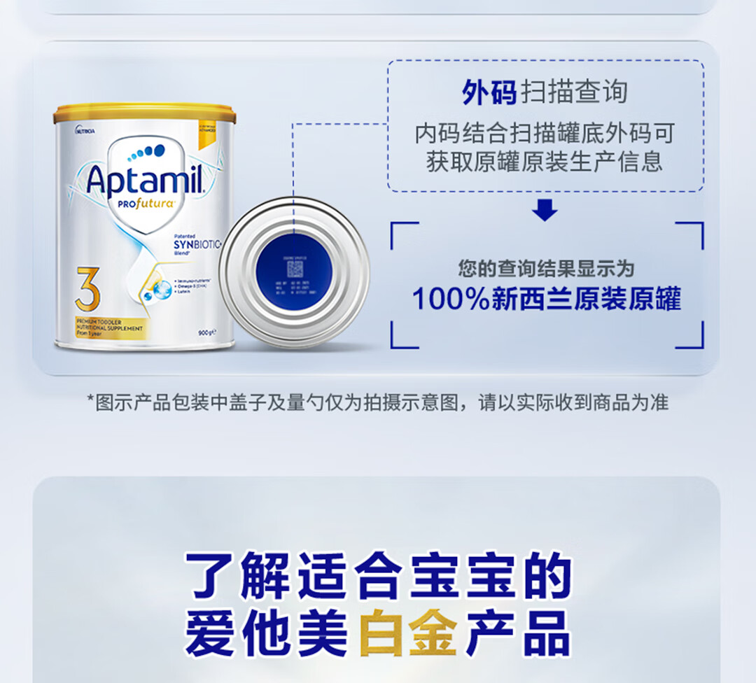 爱他美(Aptamil)澳洲白金版含DHA叶黄素营养新西兰进口婴幼儿配方牛奶粉官方授权 3段【新客无忧退】 效期至27年7月 900g