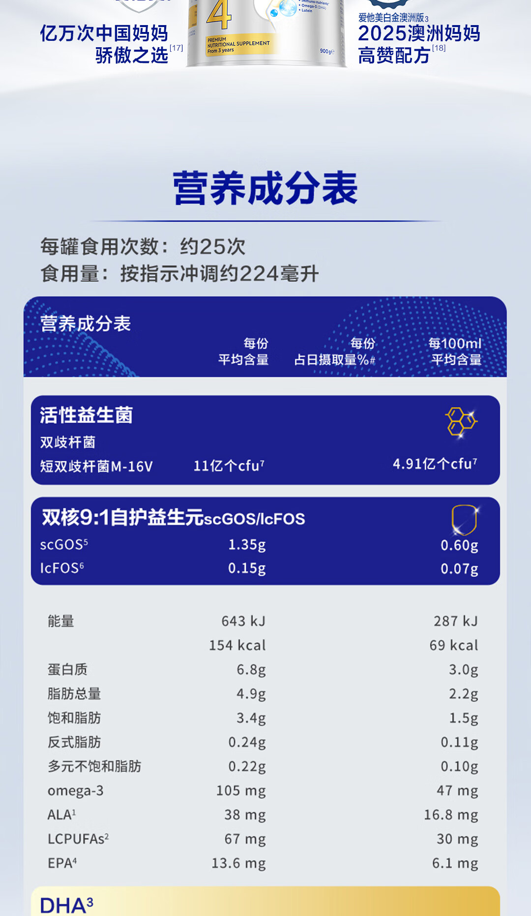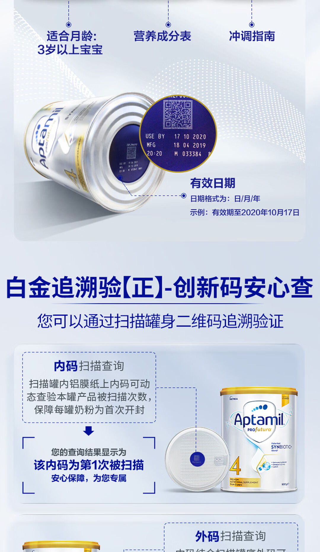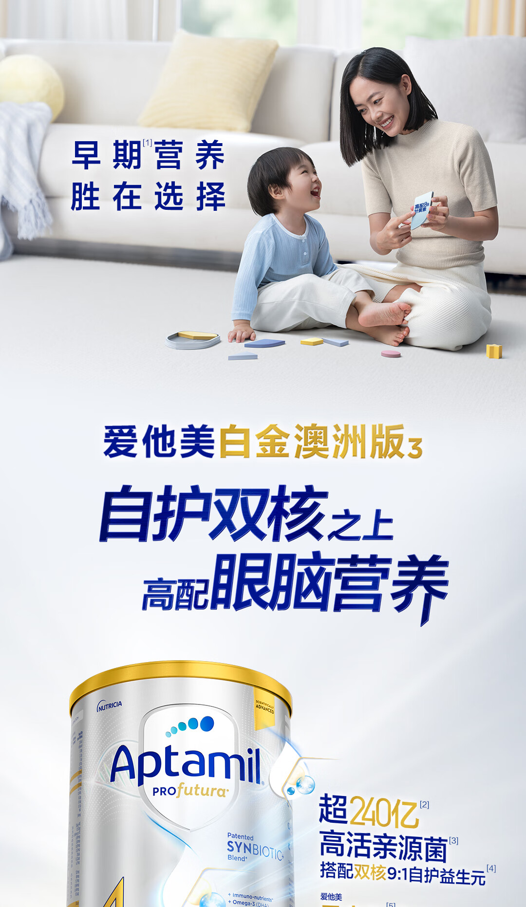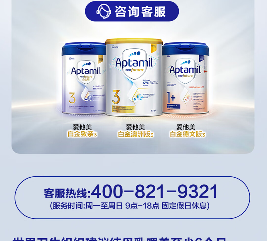 爱他美(Aptamil)澳洲白金版含DHA叶黄素营养新西兰进口婴幼儿配方牛奶粉官方授权 3段【新客无忧退】 效期至27年7月 900g