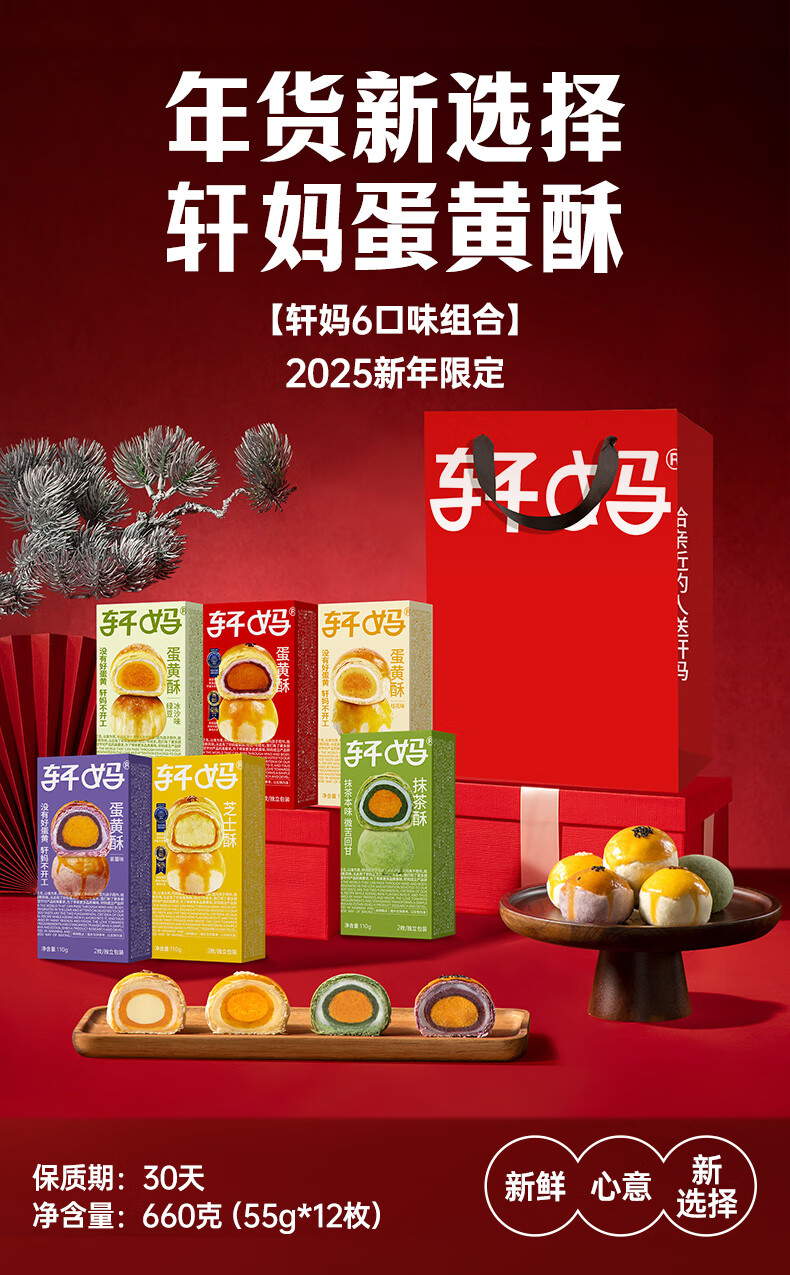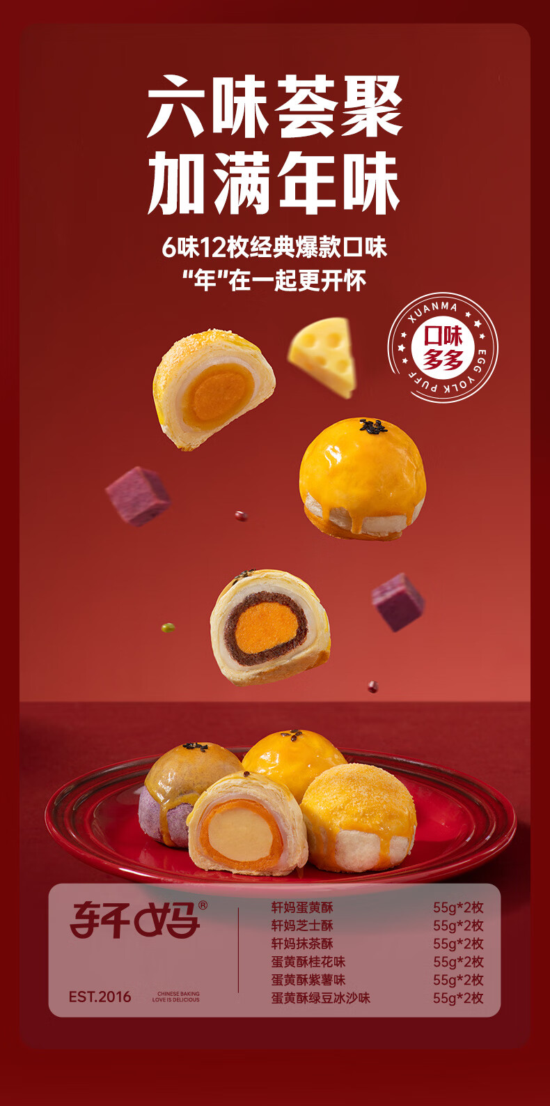 轩妈 家短保蛋黄酥早餐多口味混合组合装儿童早餐糕点美早餐零食 【送礼袋】五口味16枚组合