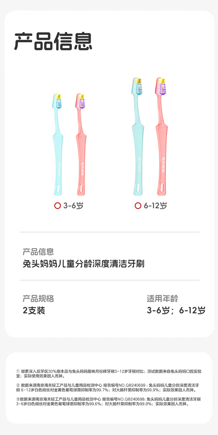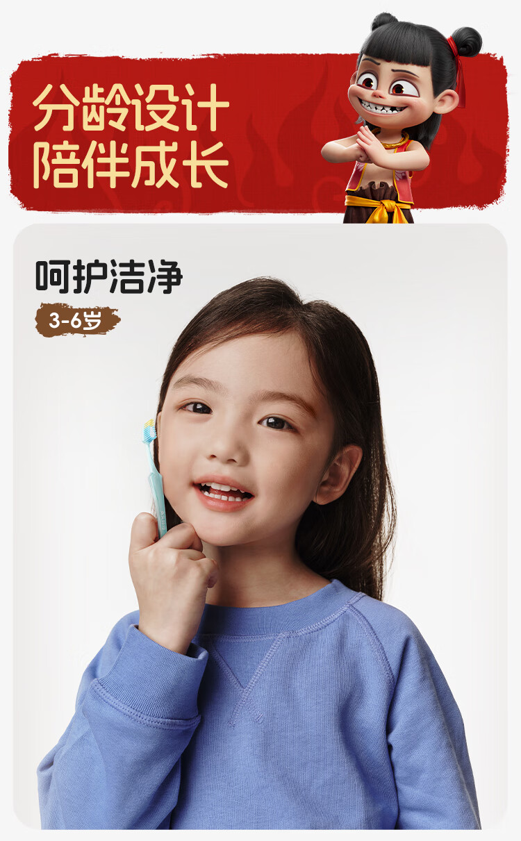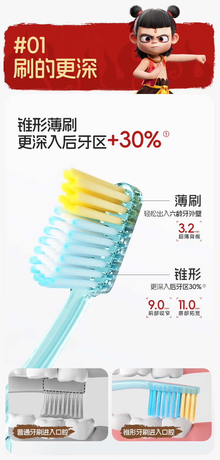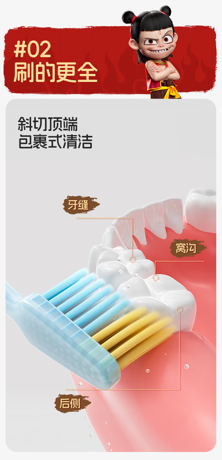 兔头妈妈哪吒联名 儿童牙刷锥形深刷守护六龄牙 深度清洁牙刷2支装6-12岁