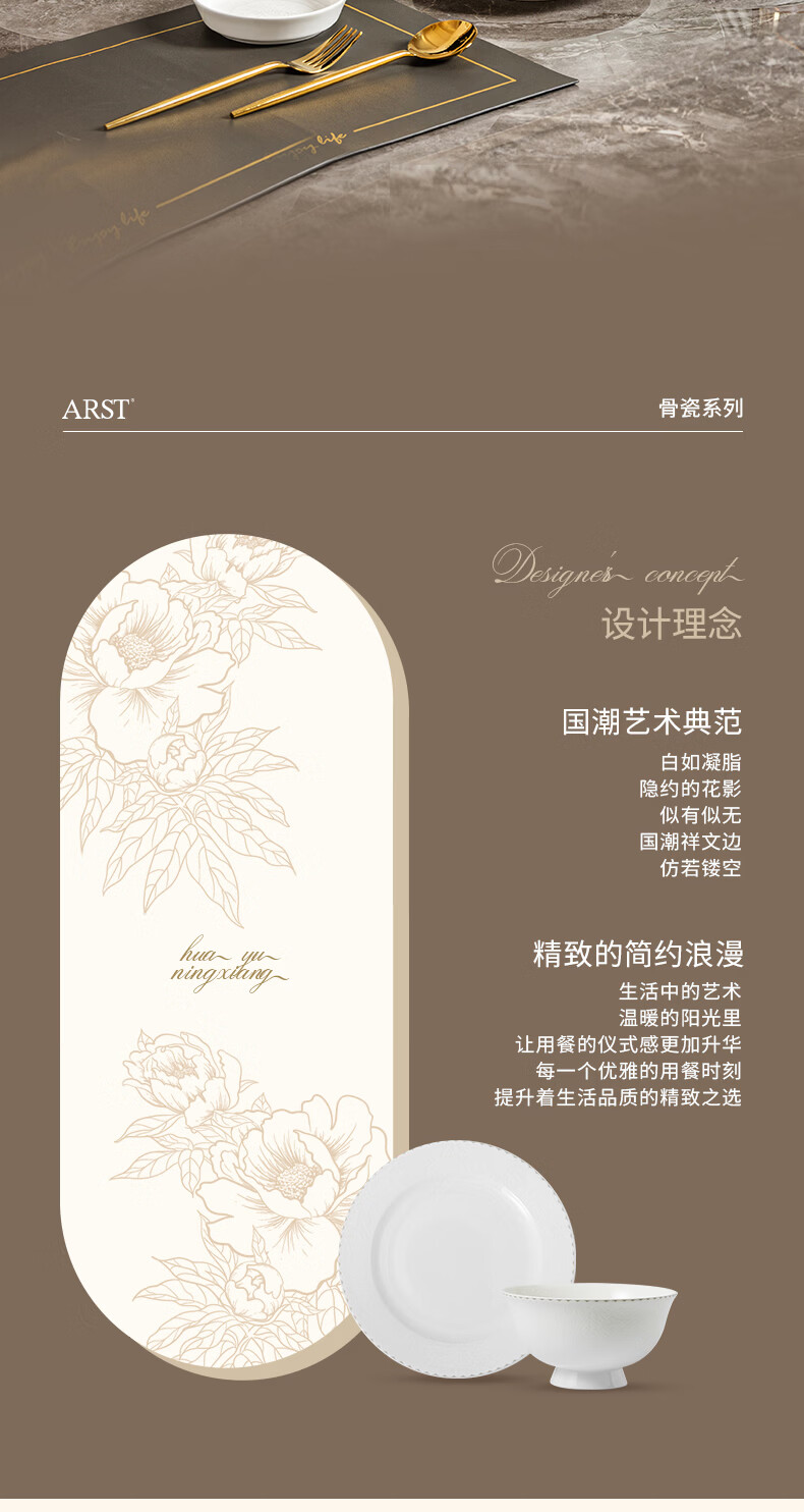 ARST雅誠德高档骨瓷餐具套装家用高脚碗碟盘高颜值 碗盘筷子乔迁送礼高级感 二人食10件套【高档骨瓷】 10件套