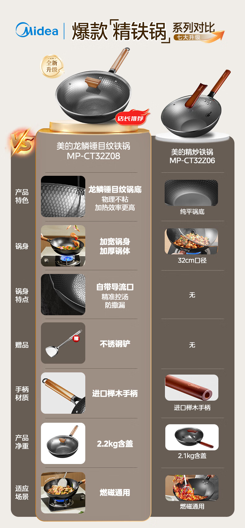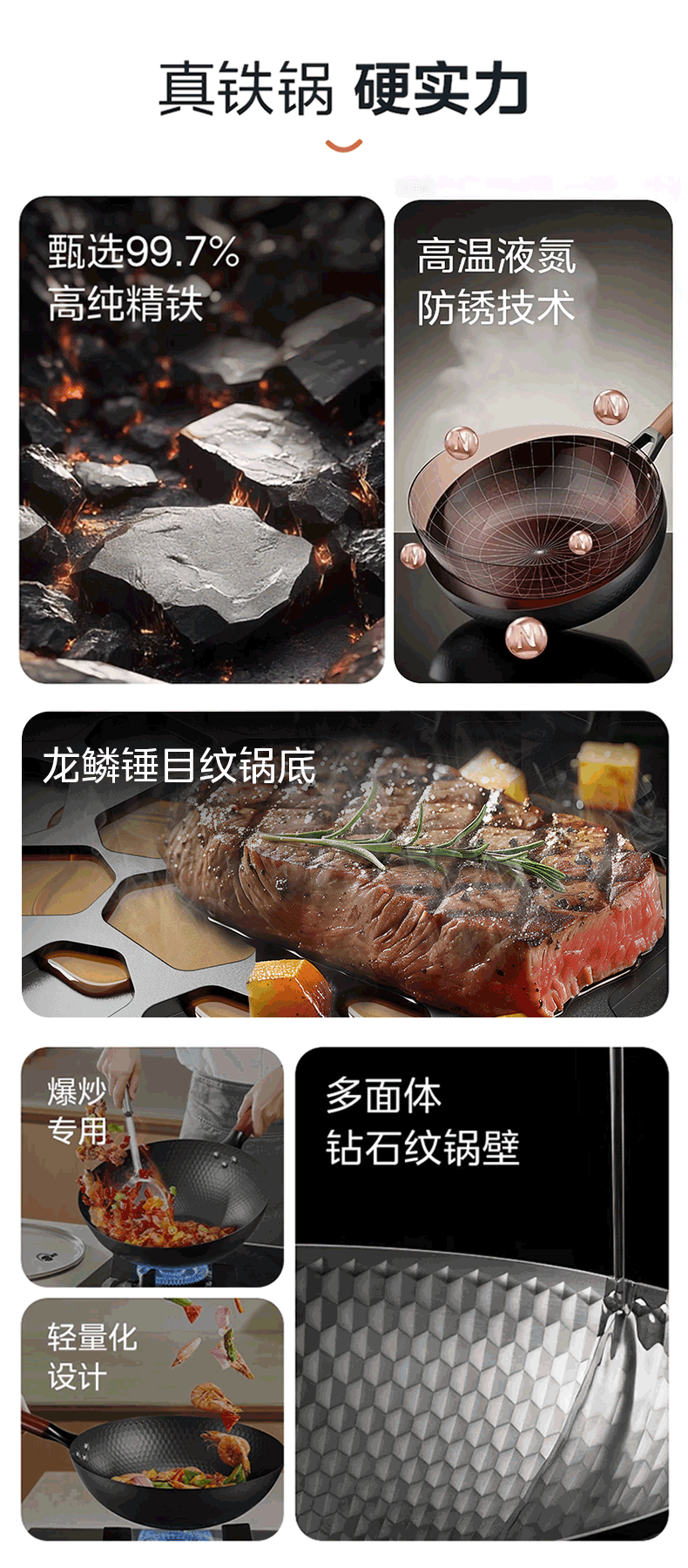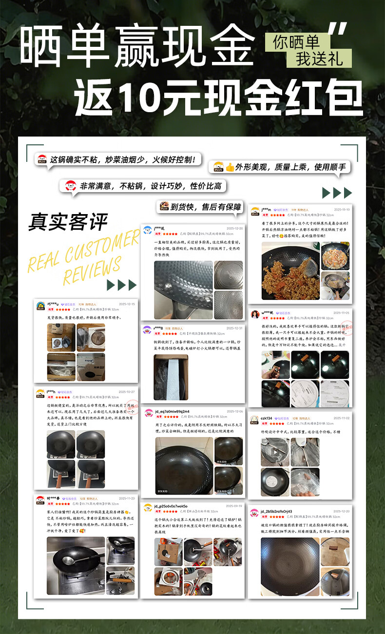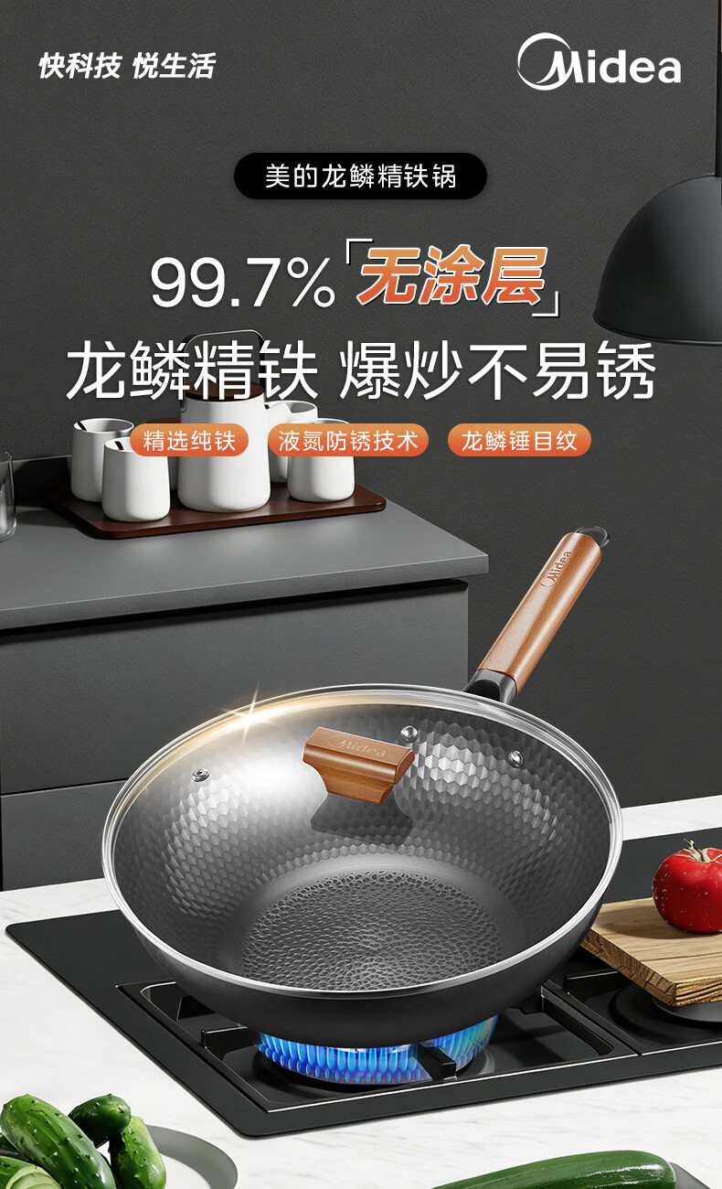 美的(Midea)炒锅铁锅不粘锅无涂层不生锈轻量防锈耐磨家用炒菜锅燃磁通用铁锅 【无锅盖】99.7%高纯精铁锅 32cm