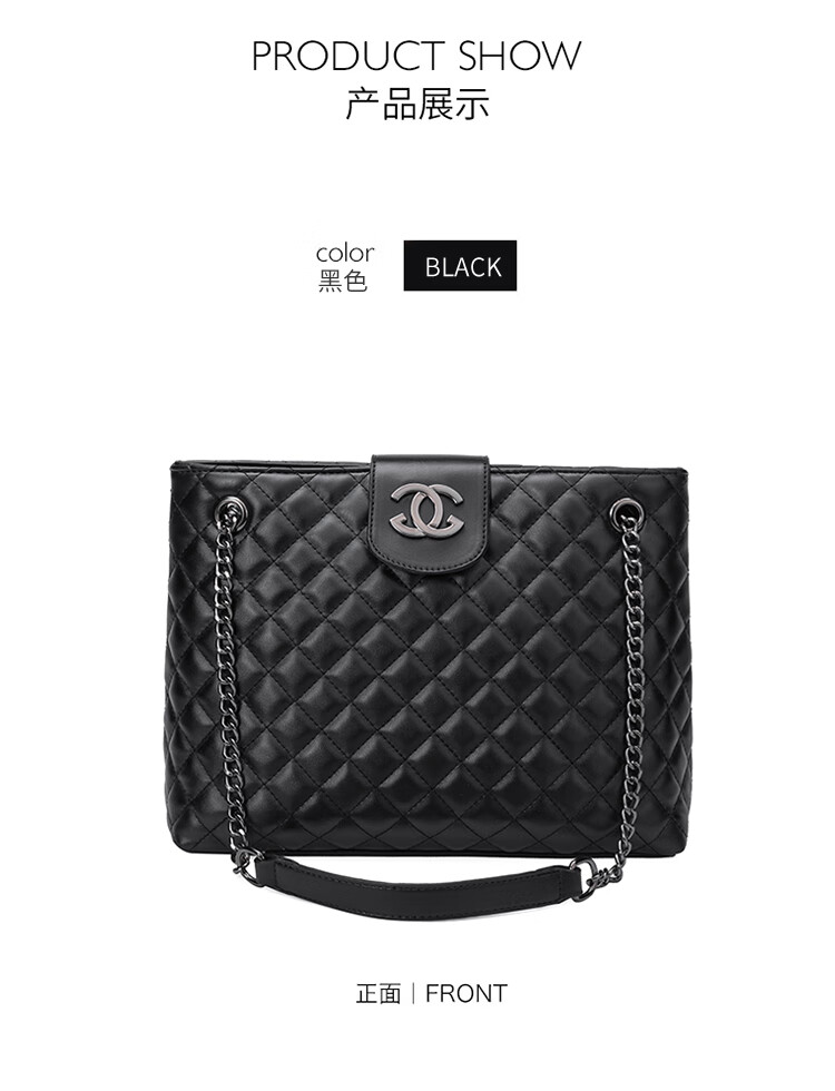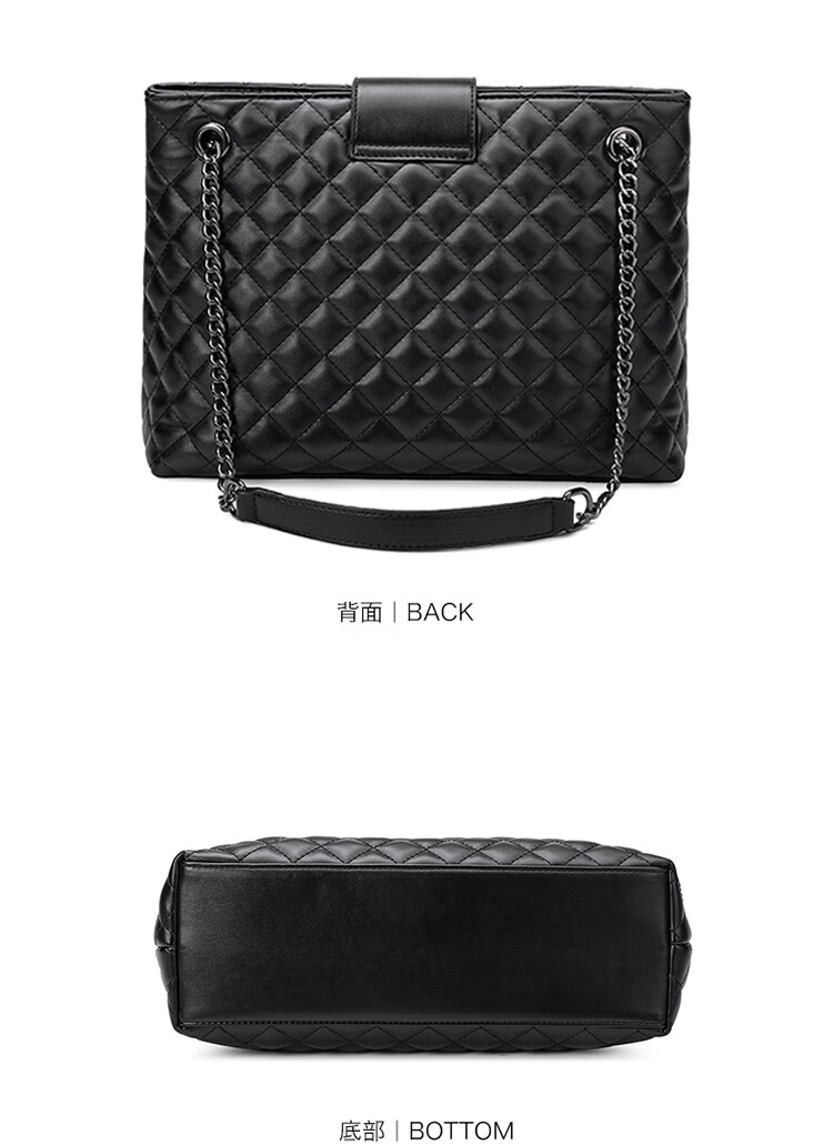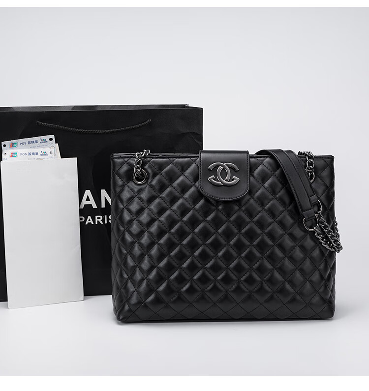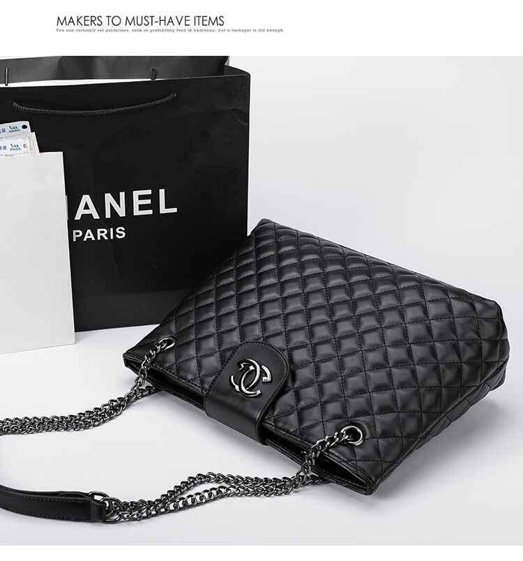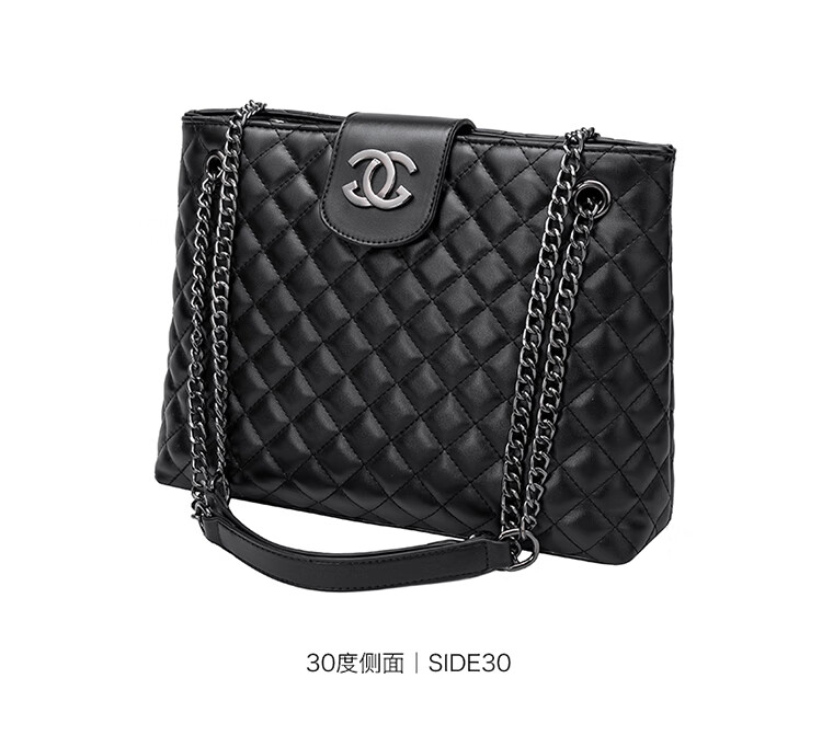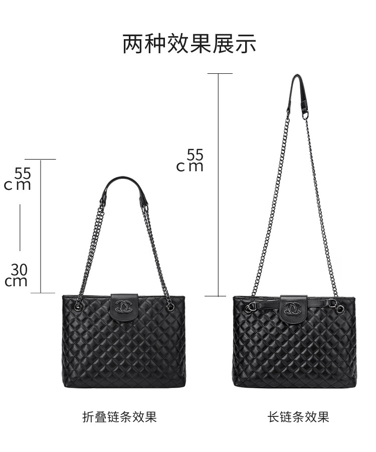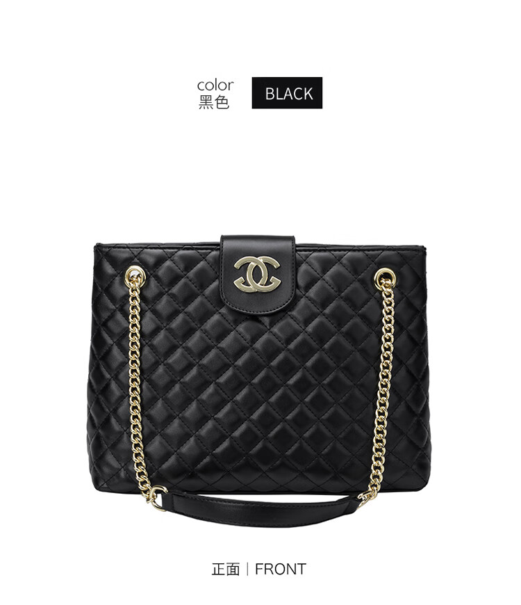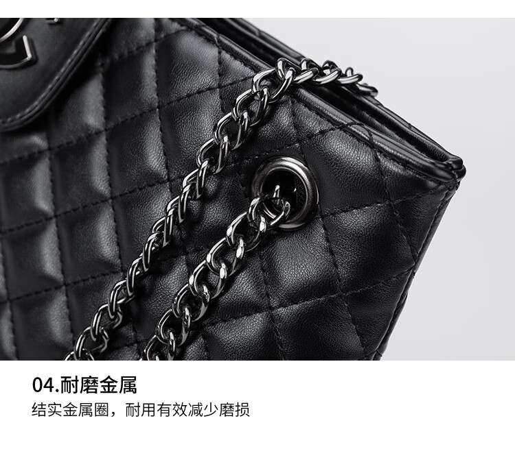 小香风包包女包香奈新款小香儿大容量真皮女包菱格链条单肩斜挎包 黑色+钨钢链条