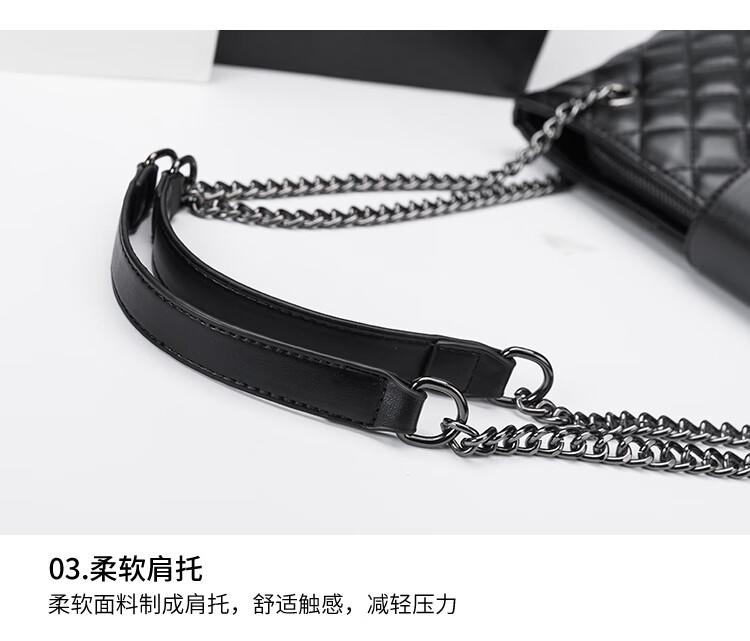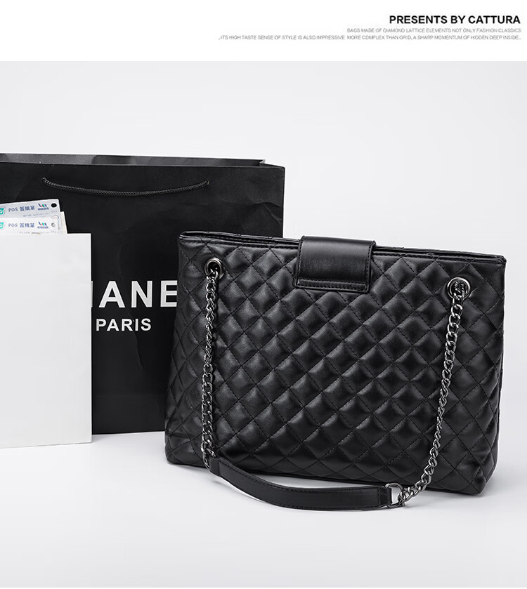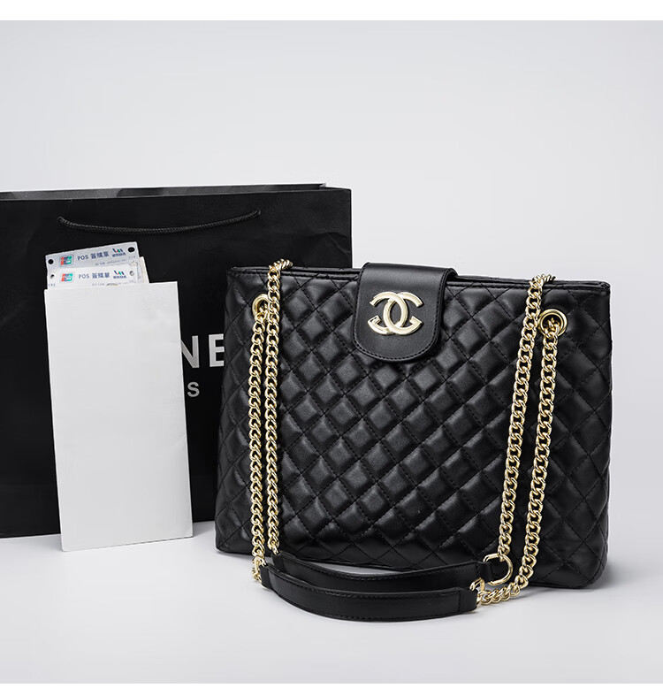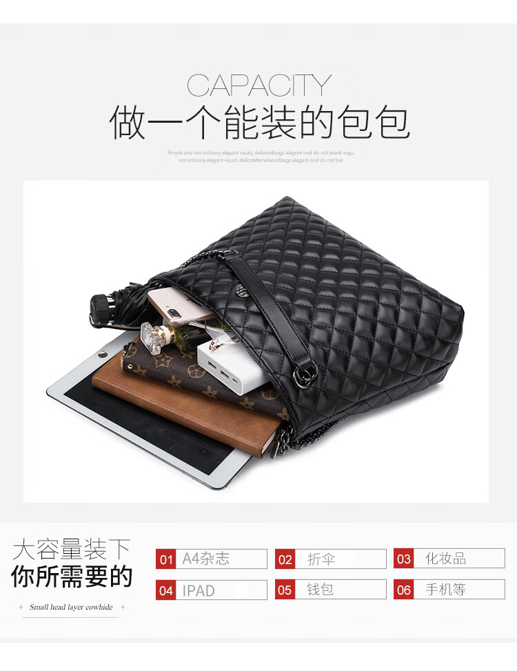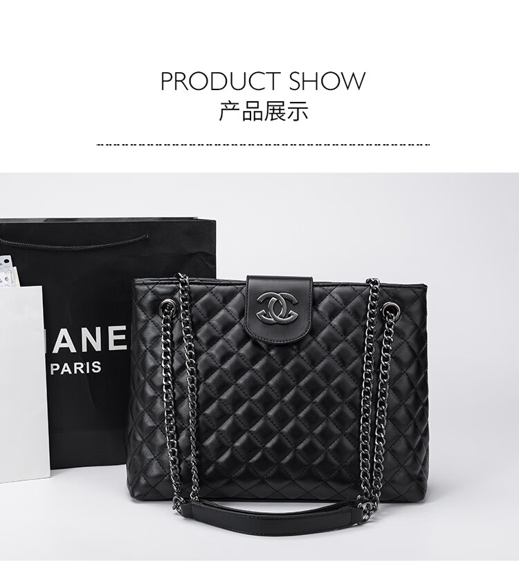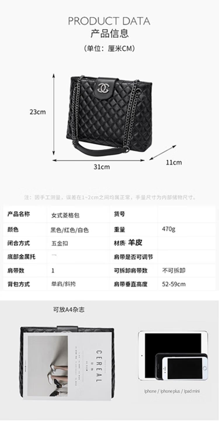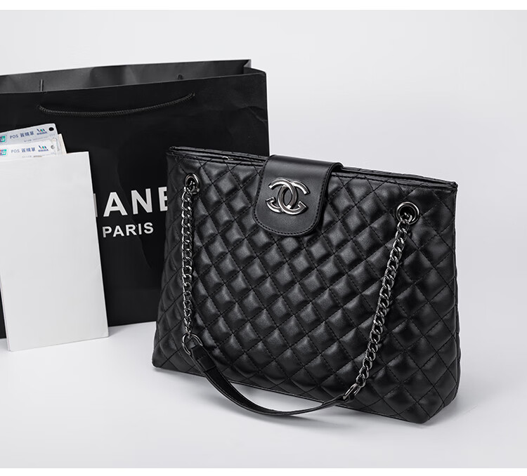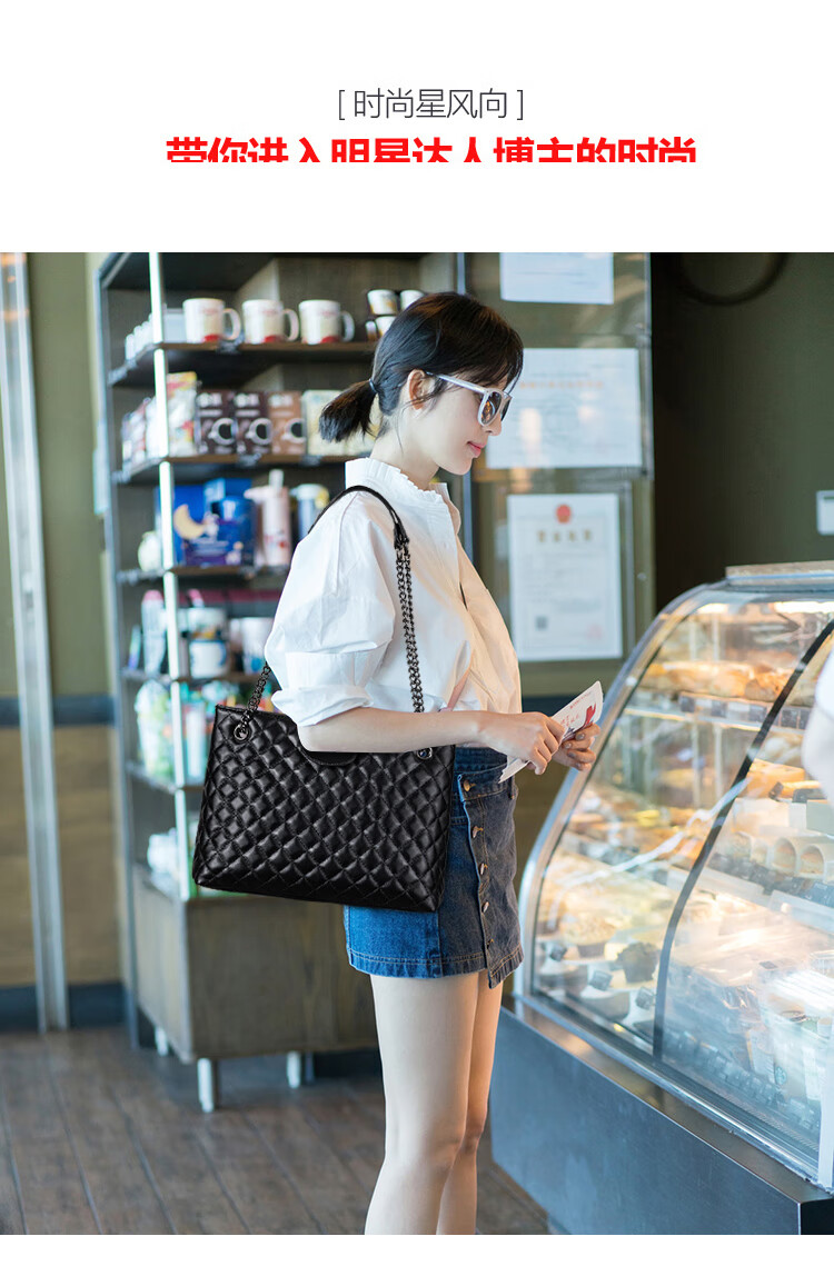 小香风包包女包香奈新款小香儿大容量真皮女包菱格链条单肩斜挎包 黑色+钨钢链条