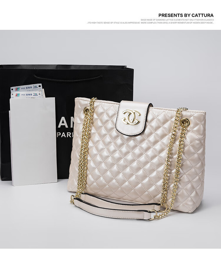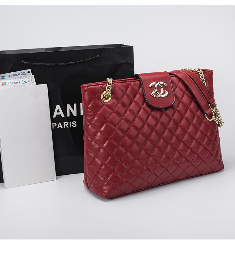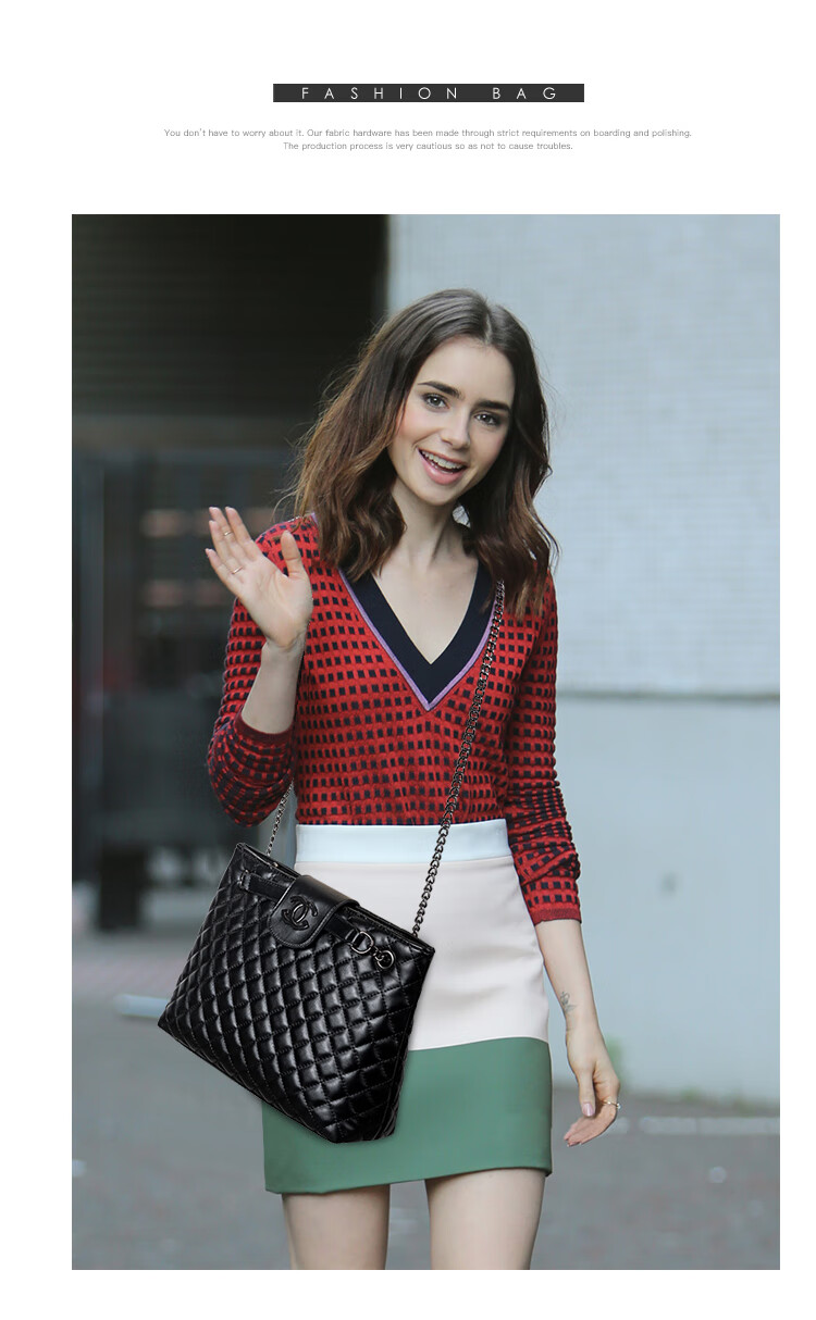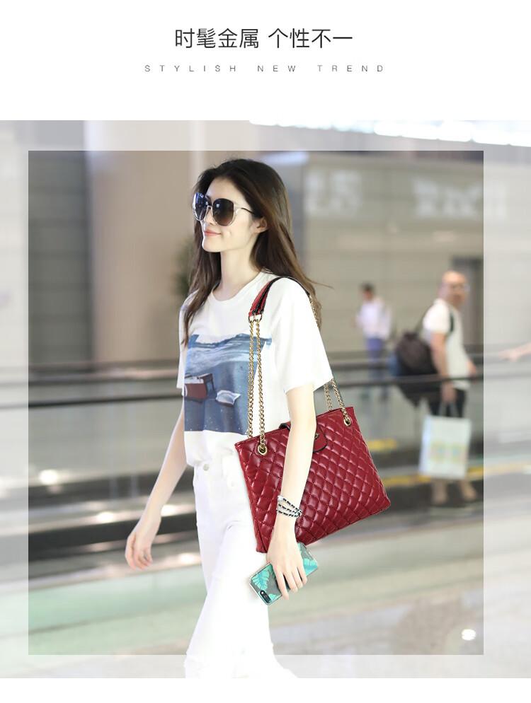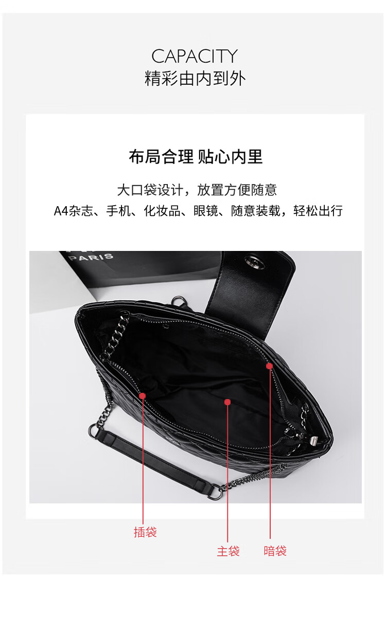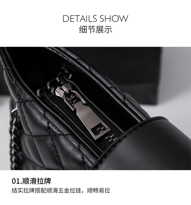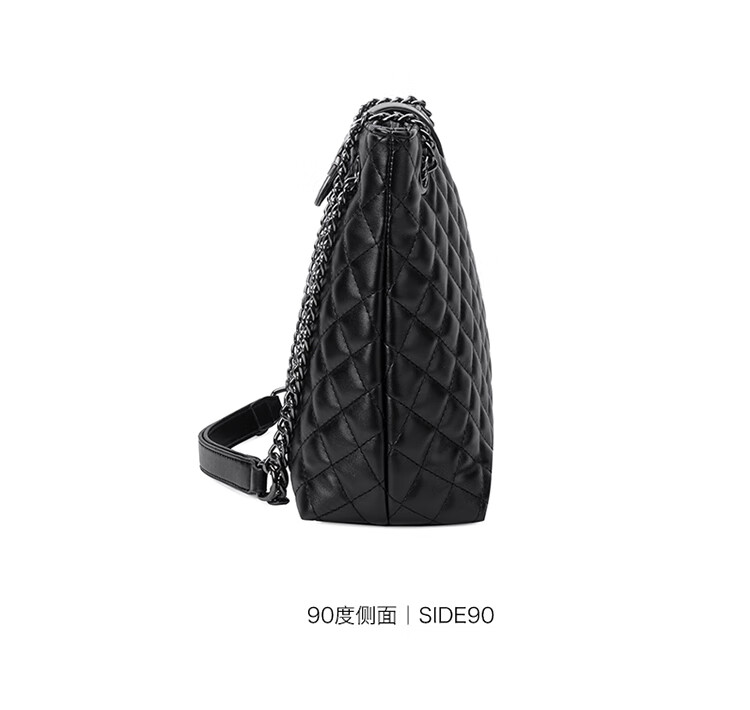 小香风包包女包香奈新款小香儿大容量真皮女包菱格链条单肩斜挎包 黑色+钨钢链条