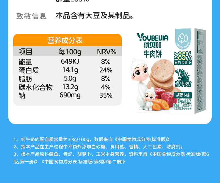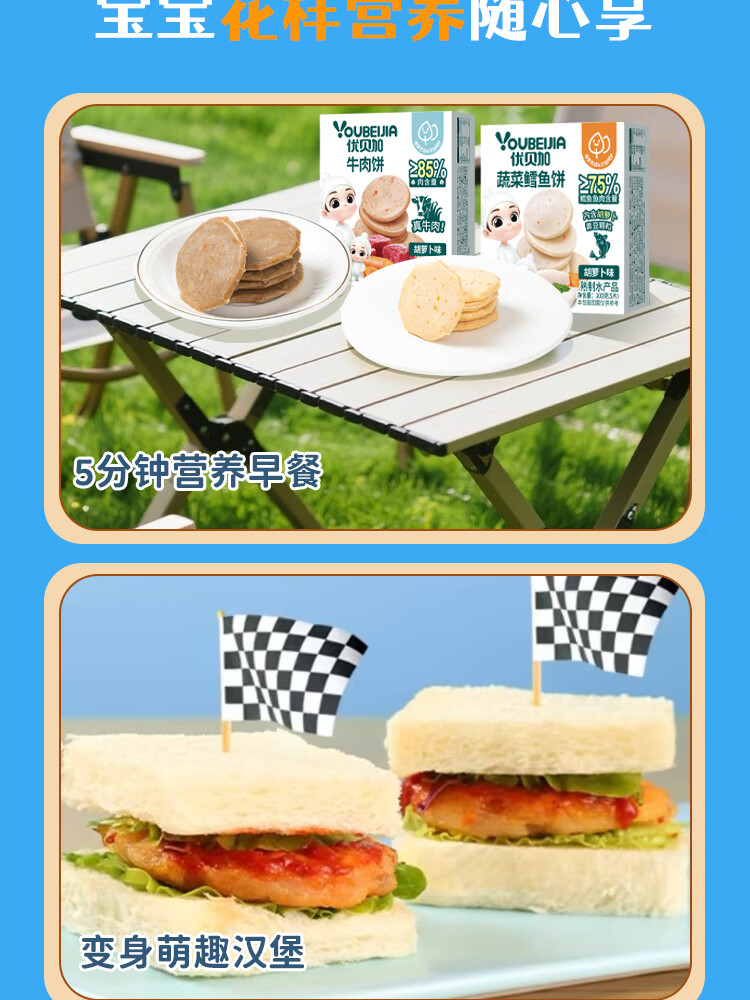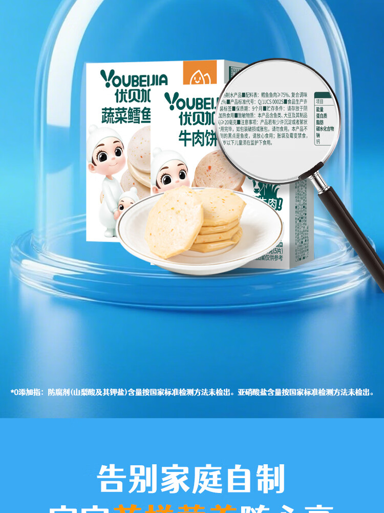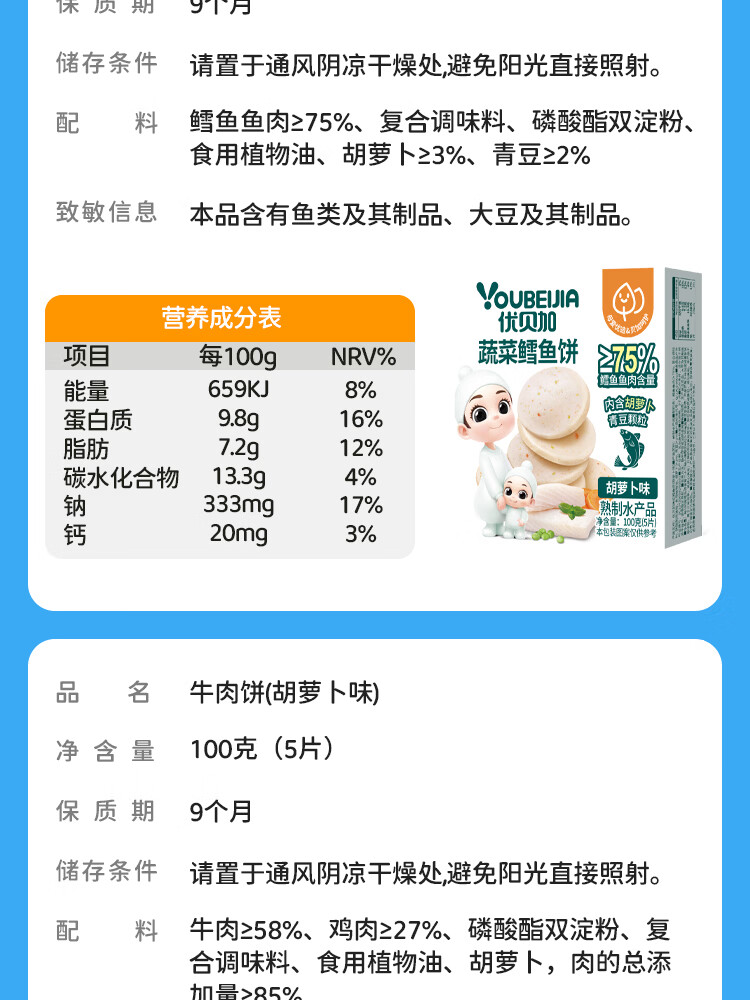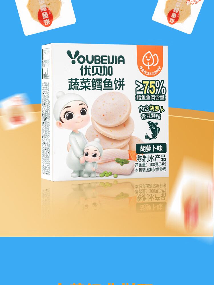 优贝加蔬菜鳕鱼饼高钙蛋白儿童营养零食早餐胡萝卜牛肉饼干100g*3盒装 蔬菜鳕鱼饼【5盒装】