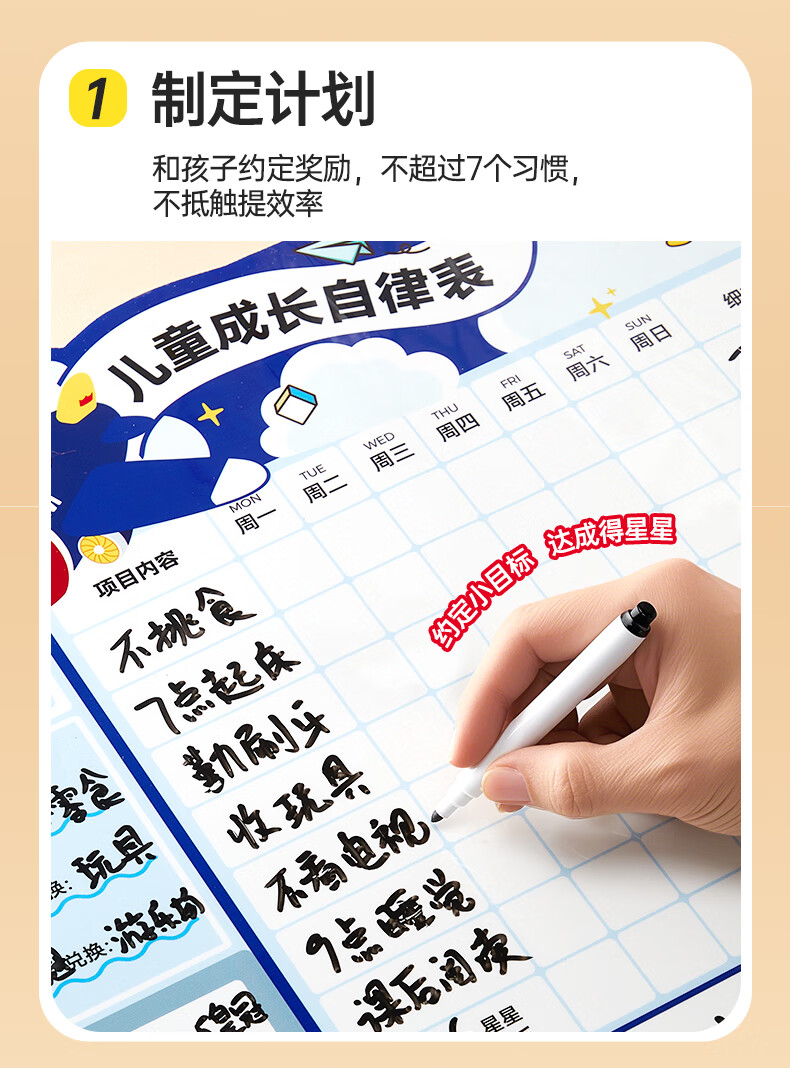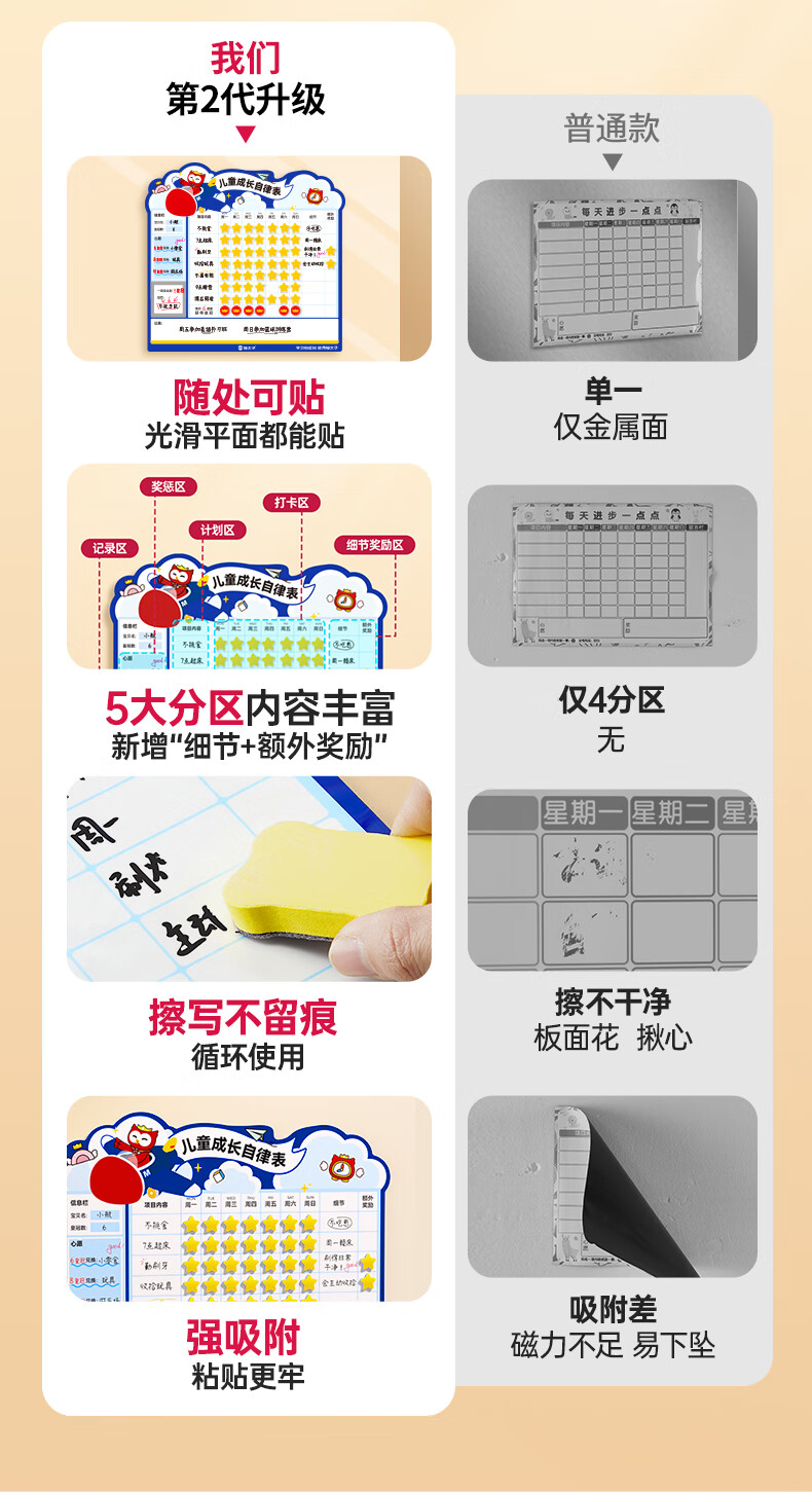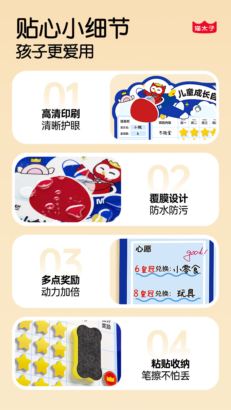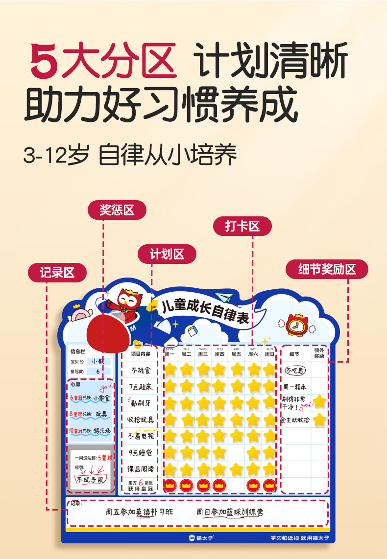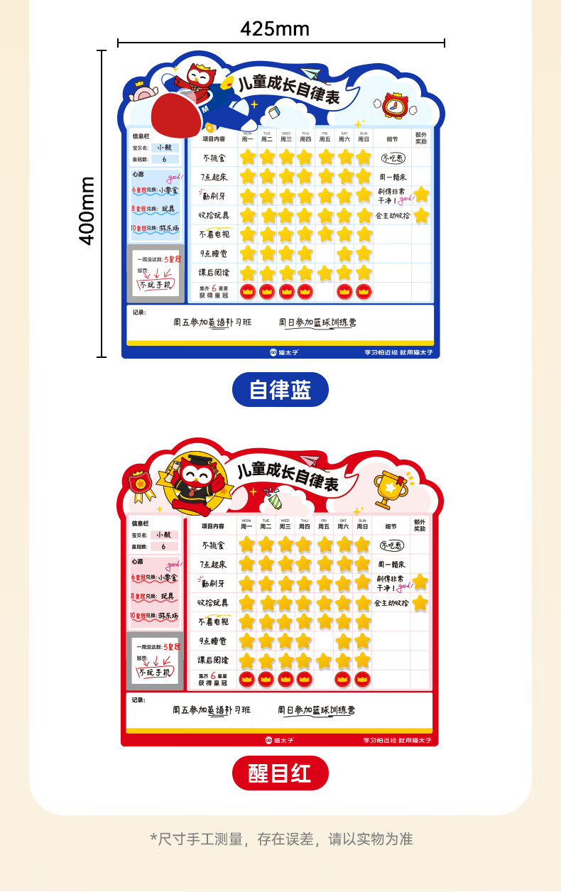 猫太子儿童成长自律表奖励打卡记录表学习计划表墙贴孩子的积分奖励贴纸家庭版提示牌鼓励小学生好习惯 中国红-升级款(56颗星星+8颗皇冠)