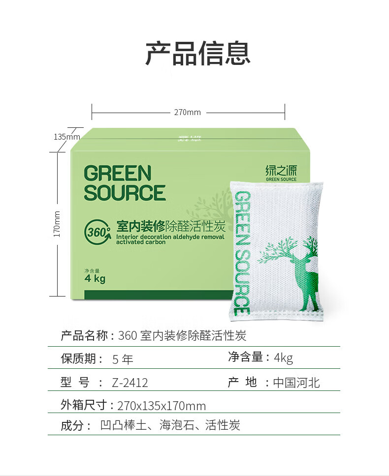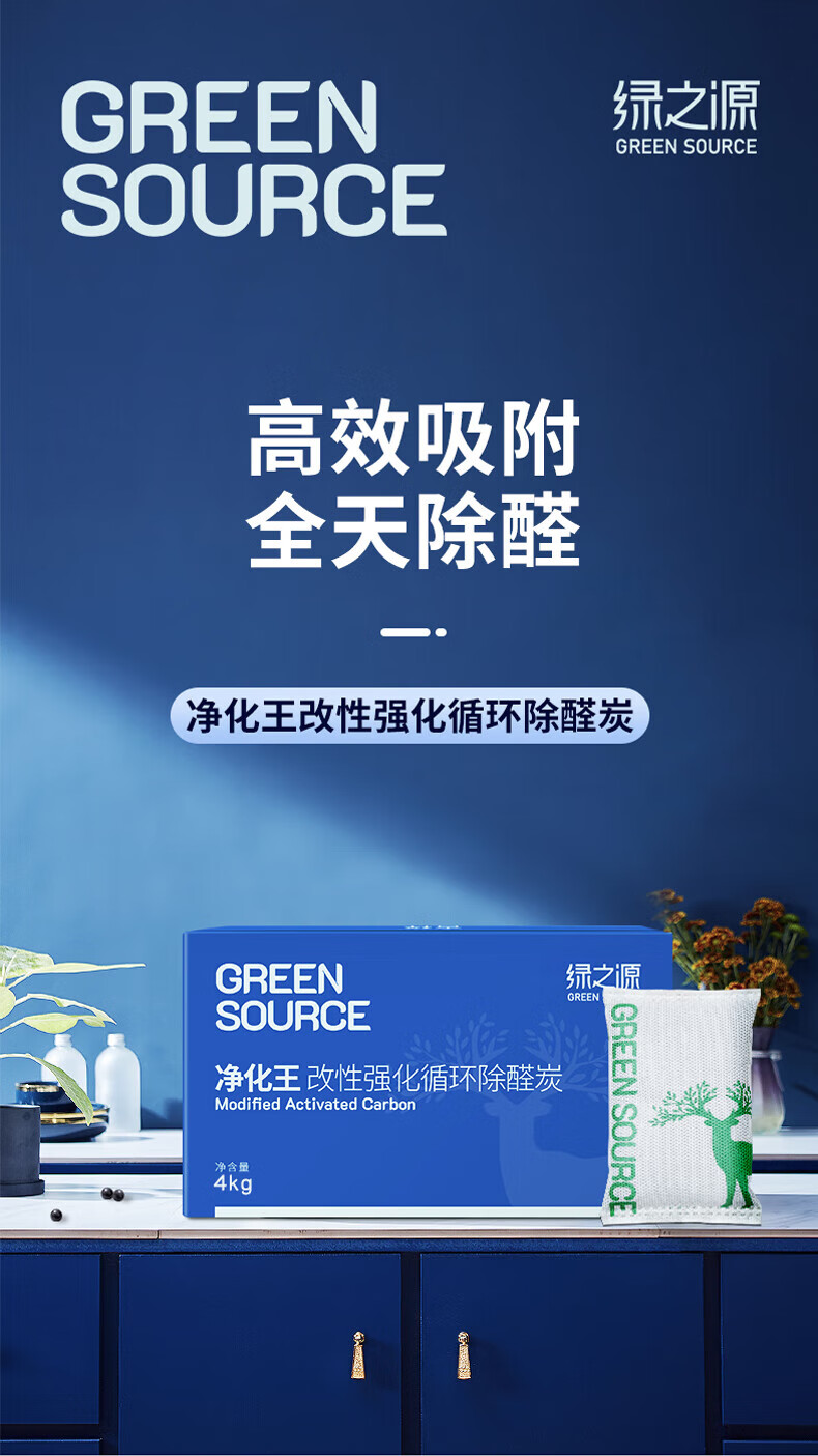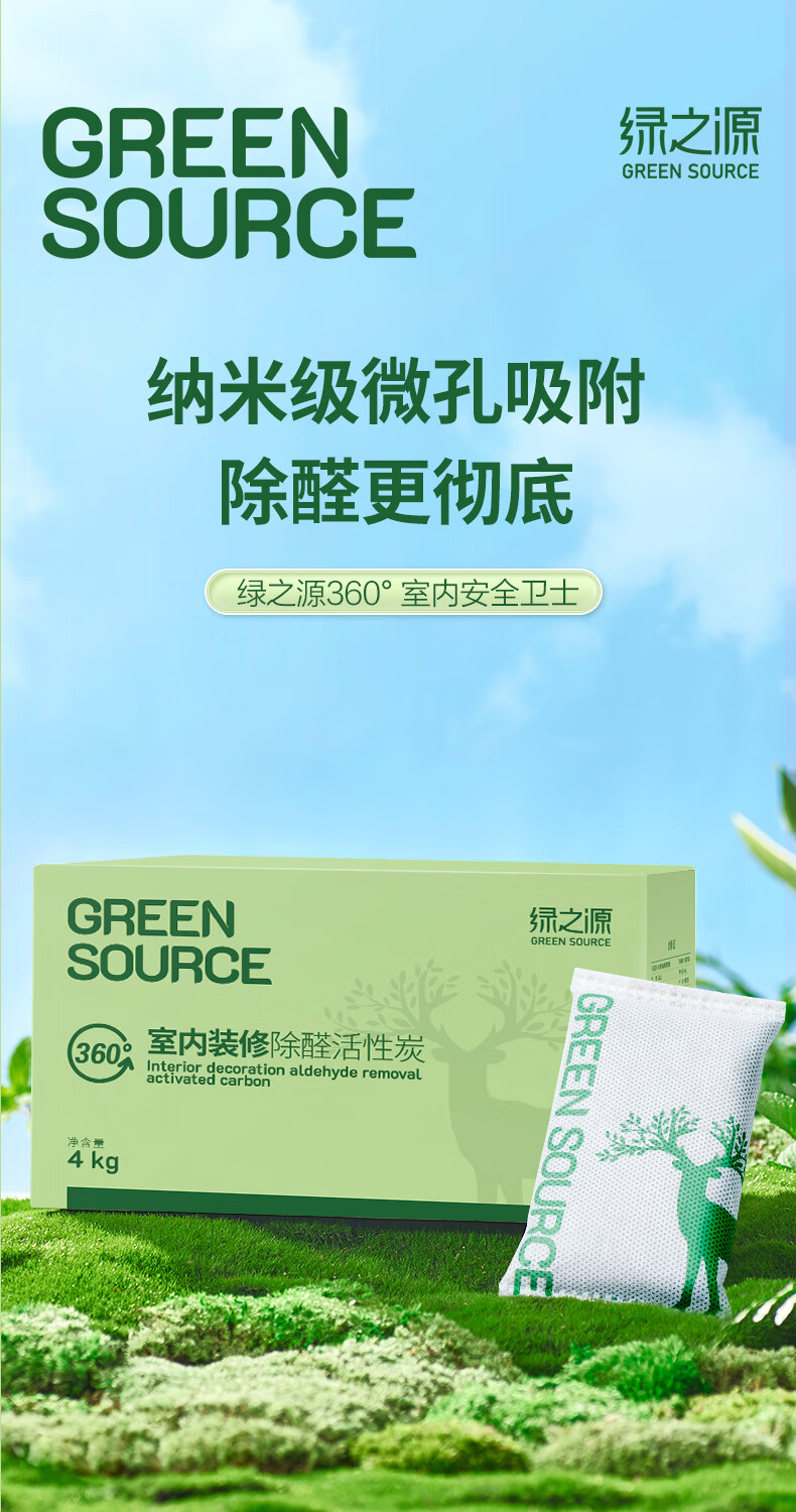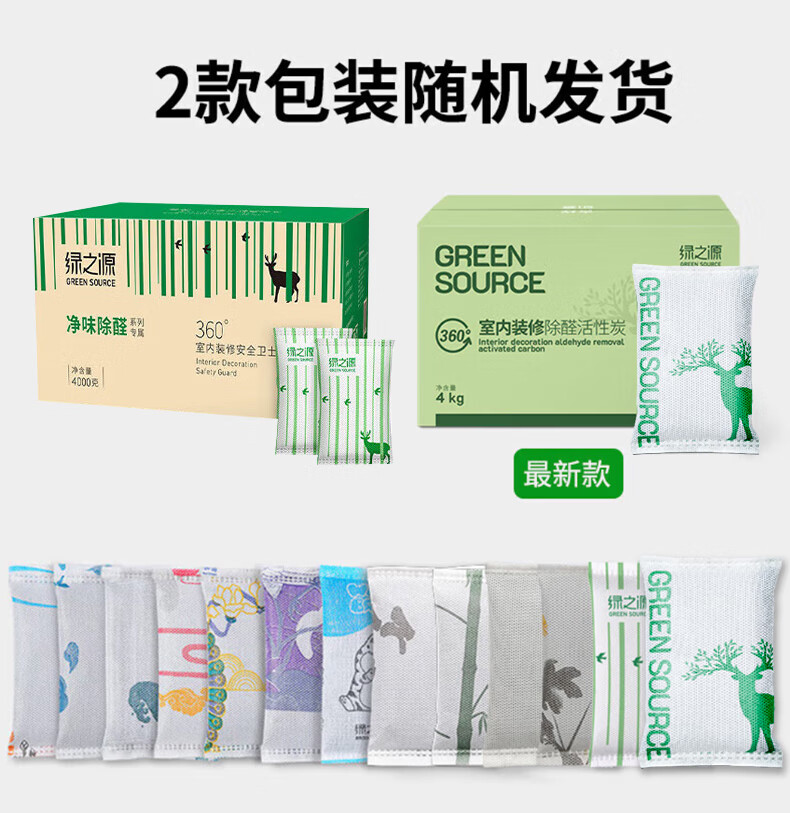 绿之源活性炭除甲醛碳包室内装修新房车家用吸去除甲醛清除剂异味 【可循环使用】梅兰竹菊500g*4包