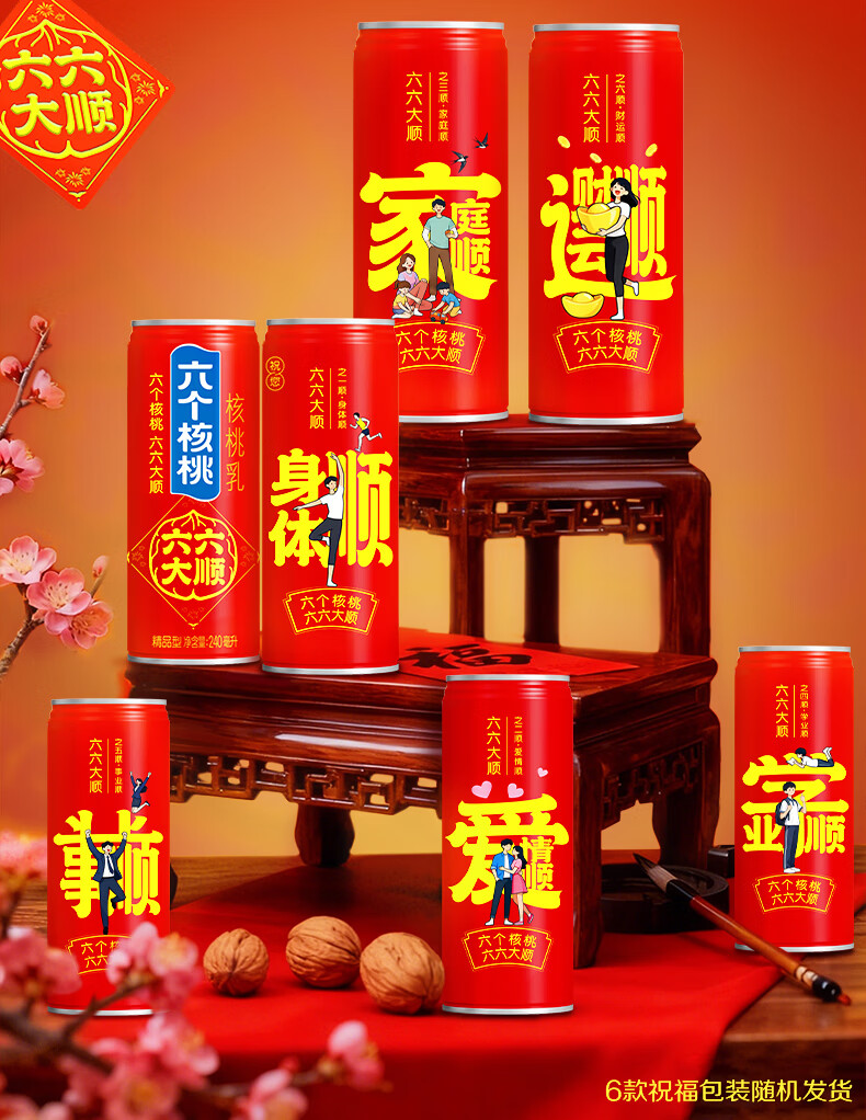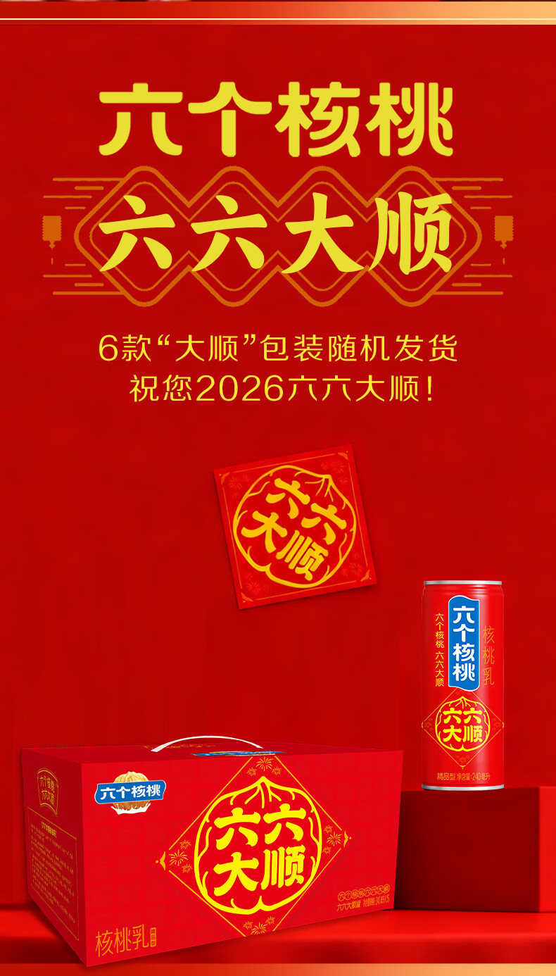 六个核桃智汇健无糖核桃乳240ml*12罐*2箱植物蛋白饮料【年货好礼】