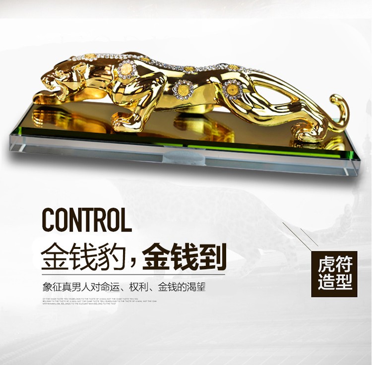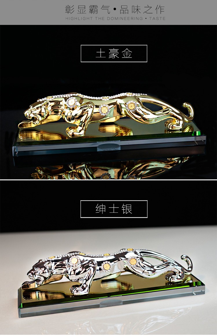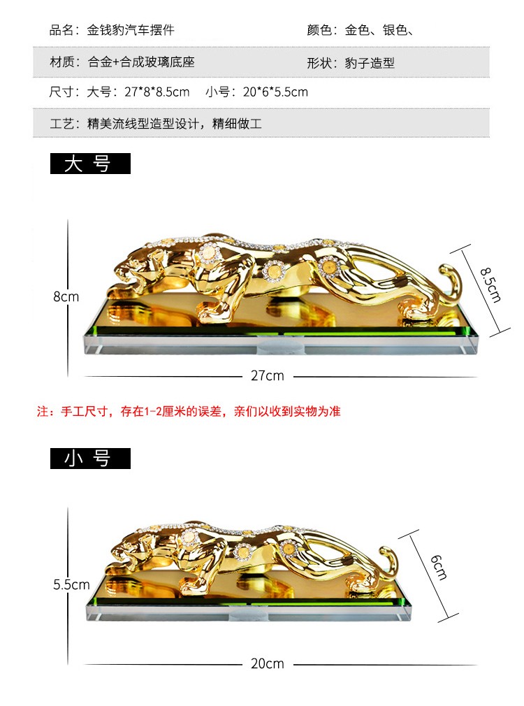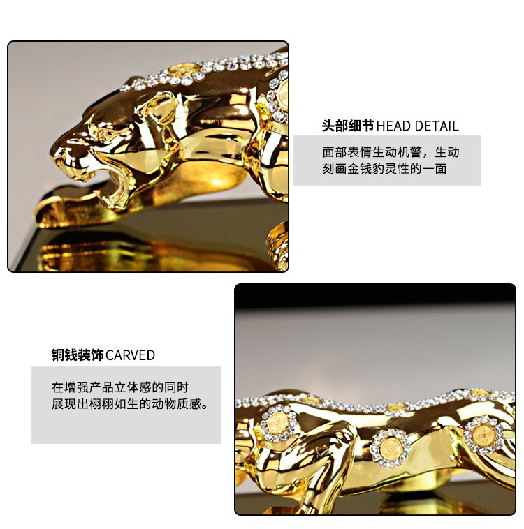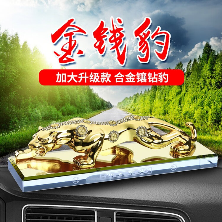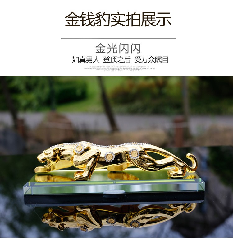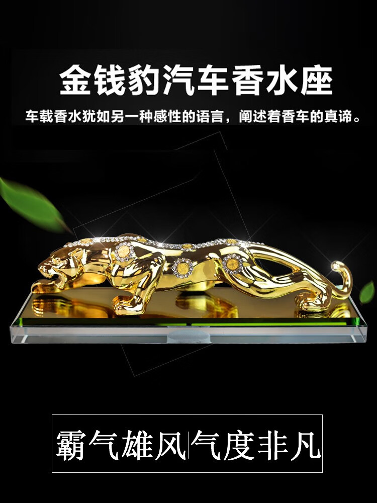 宝佩 高档汽车香水摆件金钱豹合金镶钻汽车用品车饰礼品礼物 镶钻土豪金大号
