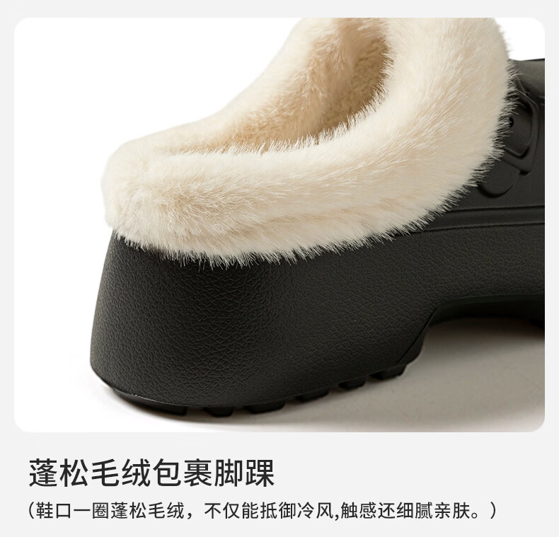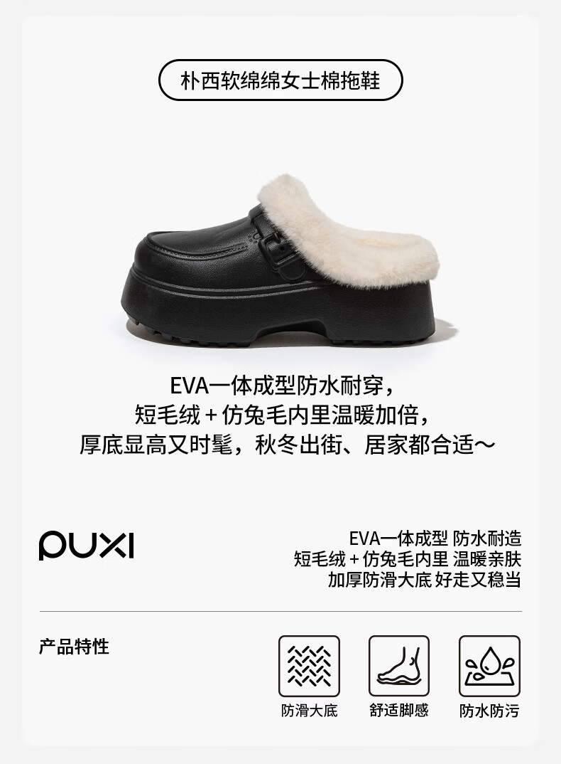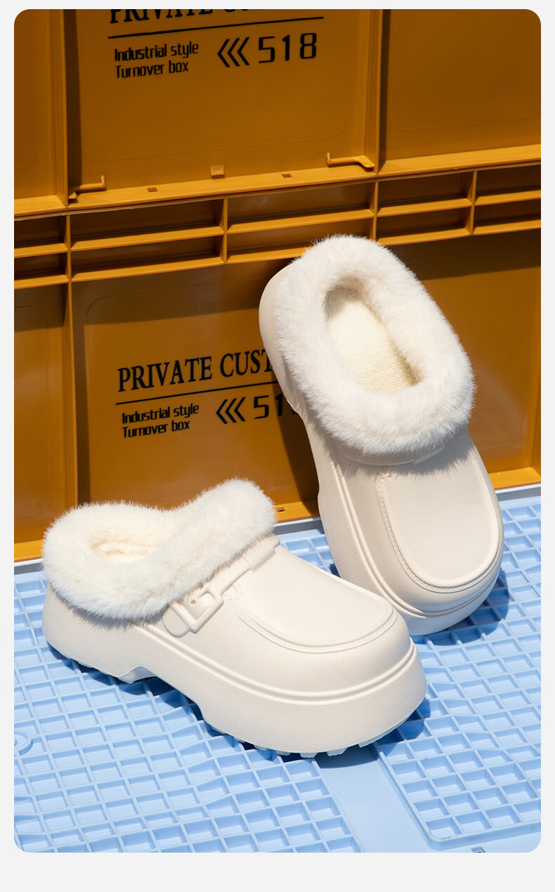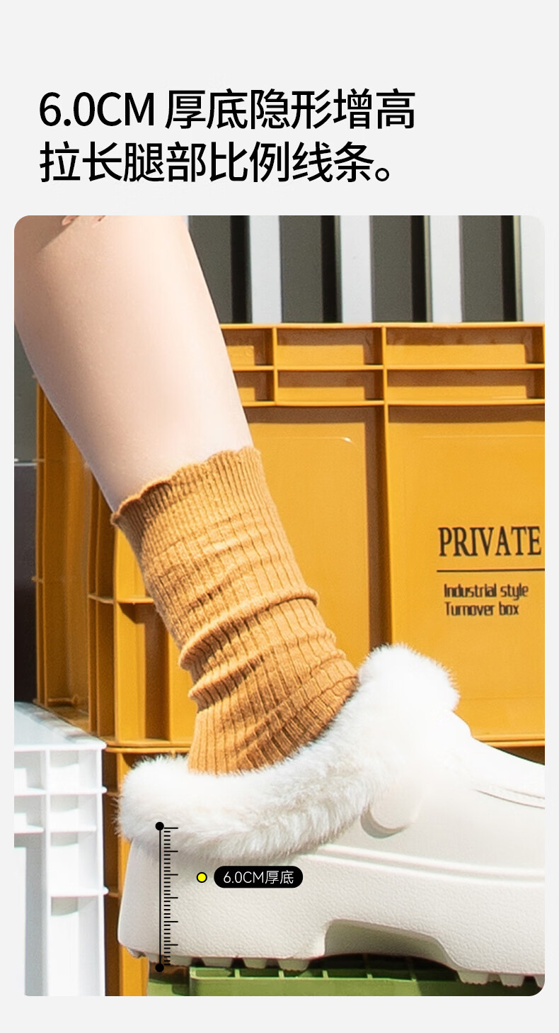 朴西厚底勃肯棉拖鞋女款秋冬季防水防滑踩屎感休闲可户外穿毛毛绒棉鞋 米白色 【断底一年质保】 39-40 (适合38-39脚)
