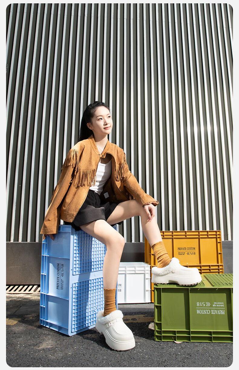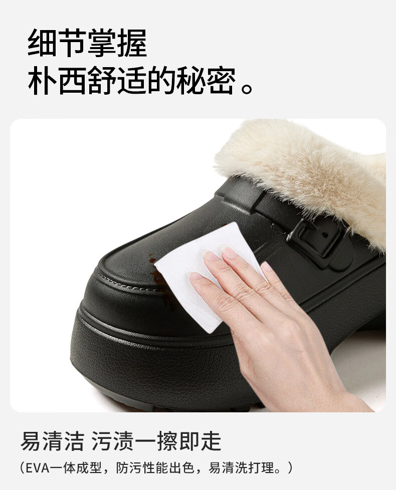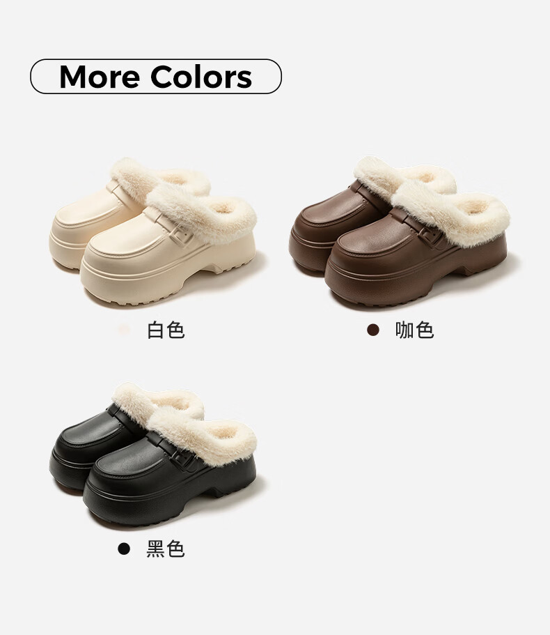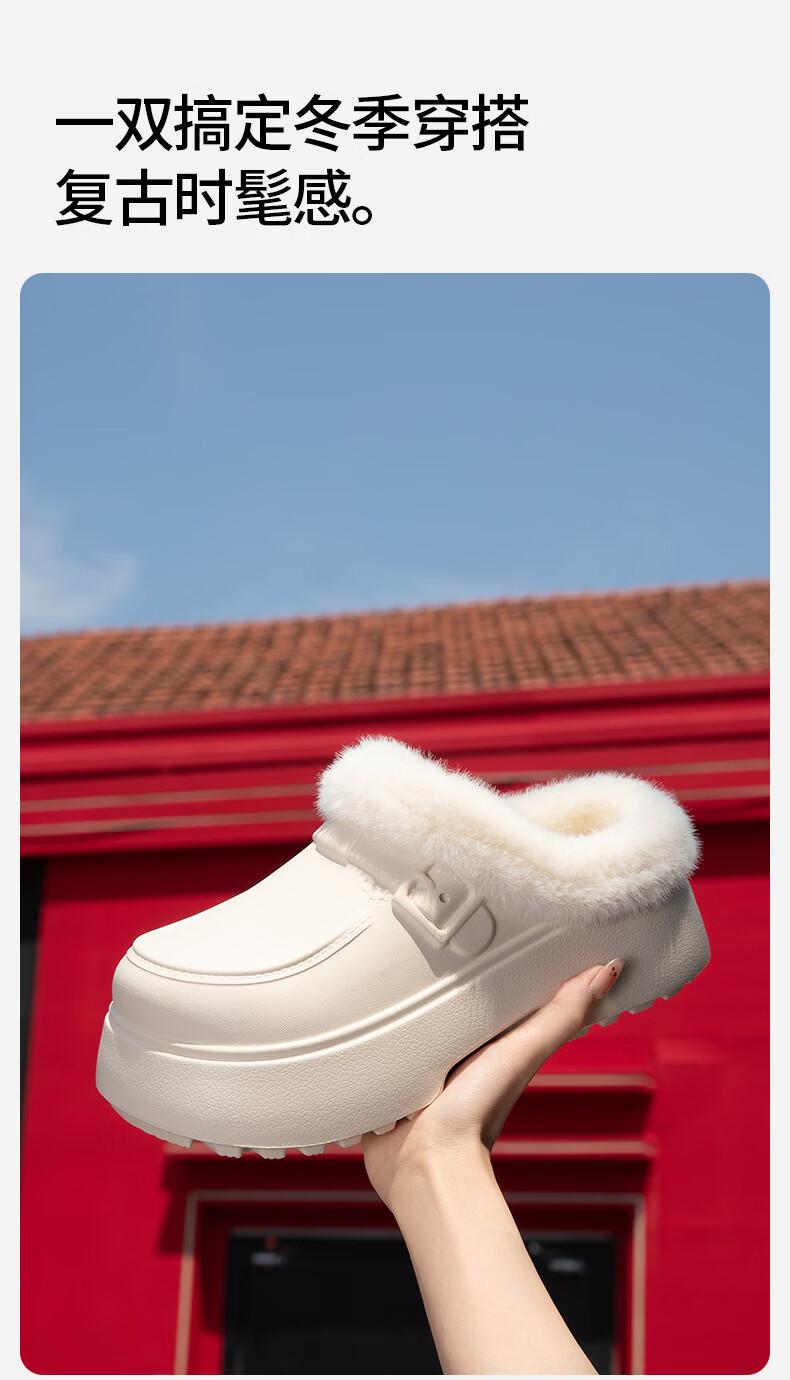 朴西厚底勃肯棉拖鞋女款秋冬季防水防滑踩屎感休闲可户外穿毛毛绒棉鞋 米白色 【断底一年质保】 39-40 (适合38-39脚)