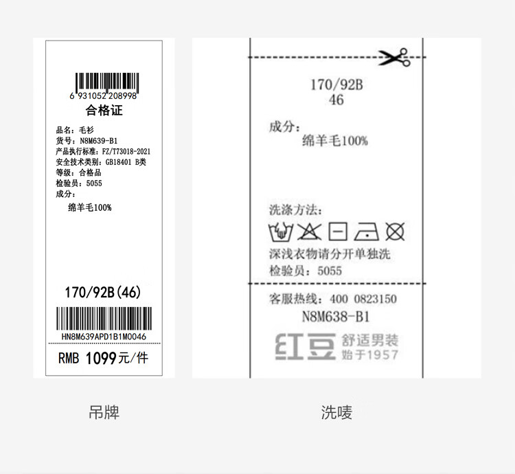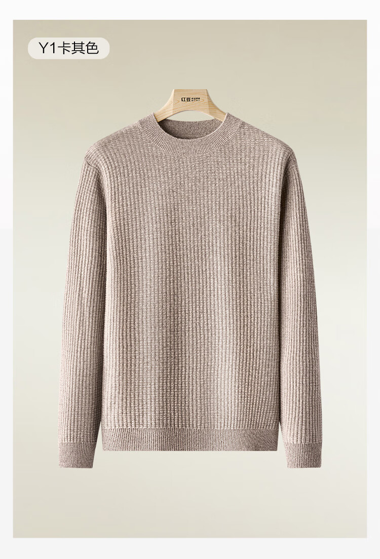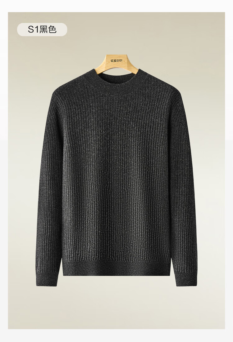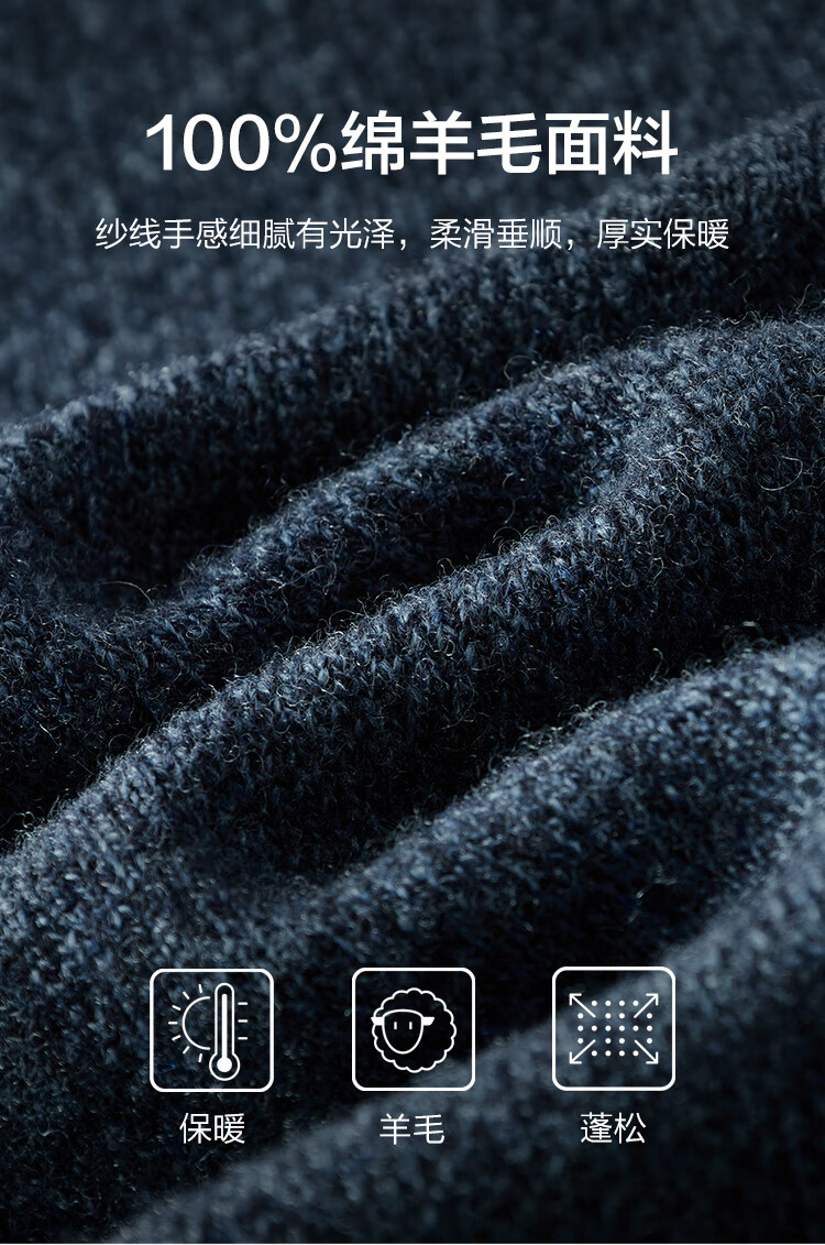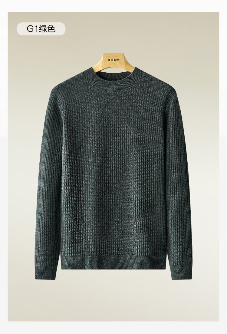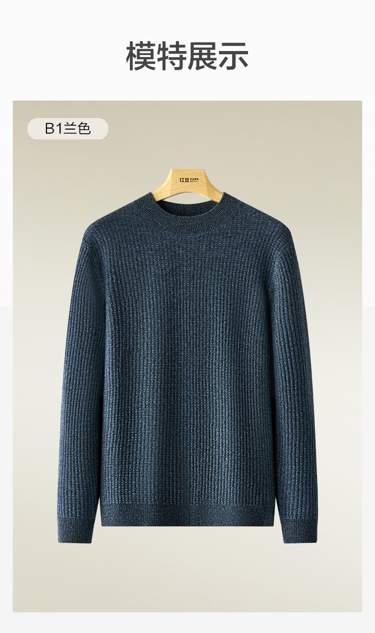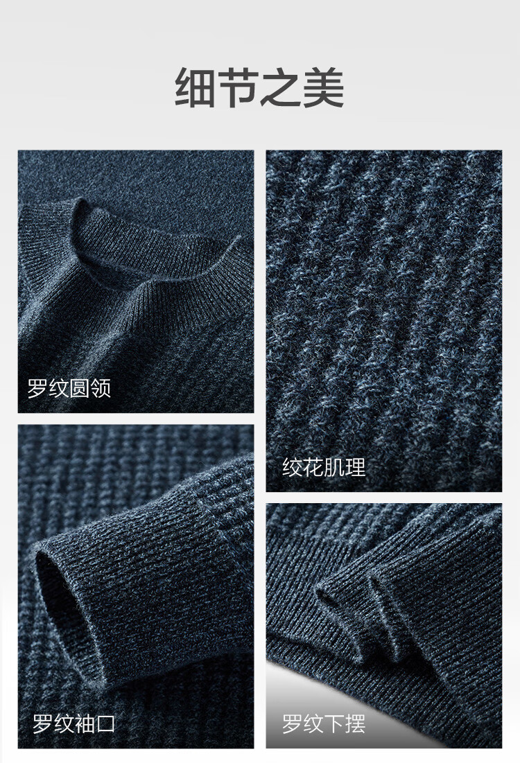 红豆羊毛衫男【厚款100%绵羊毛】华夫格肌理秋季男士毛衣套头 B1兰色 L 175/96B